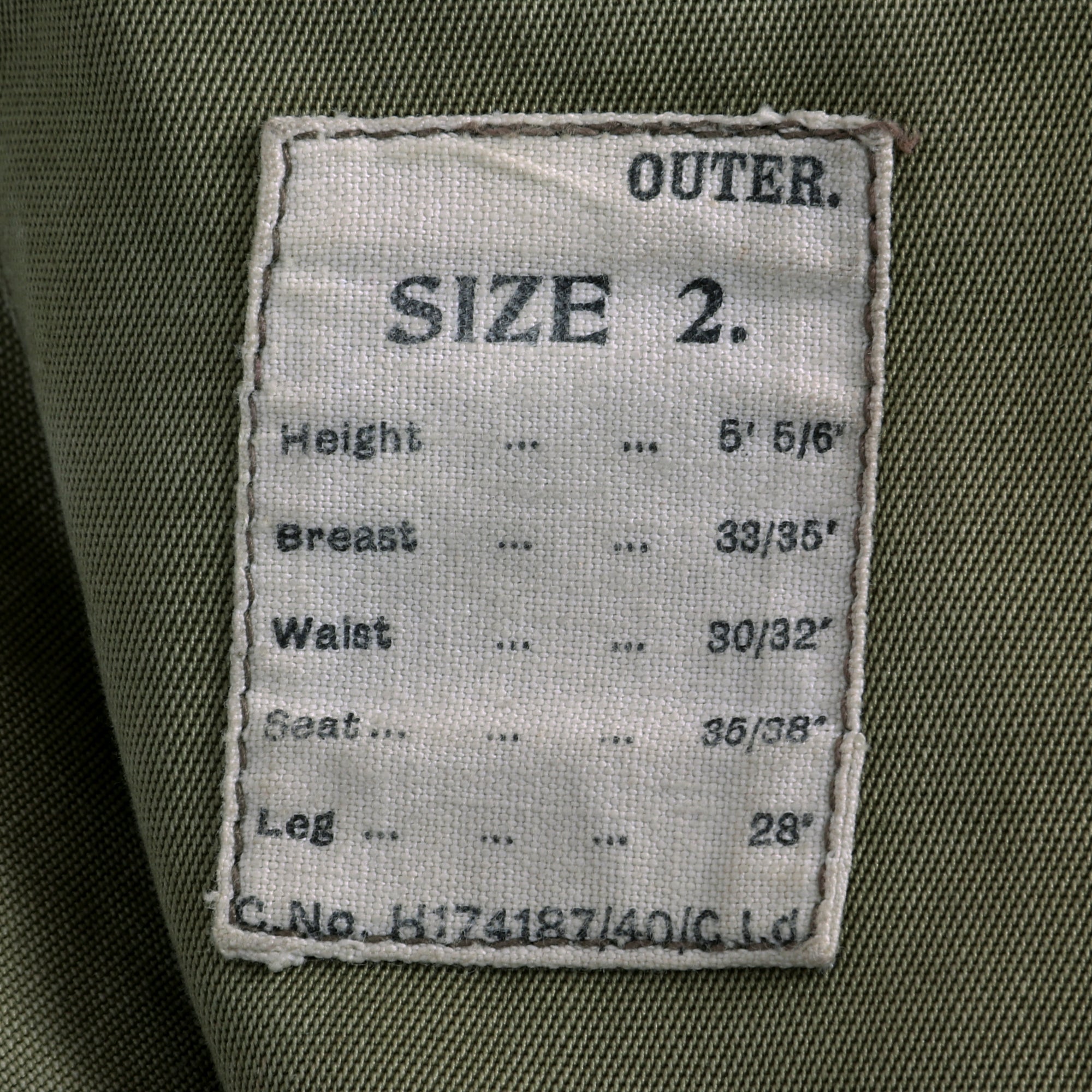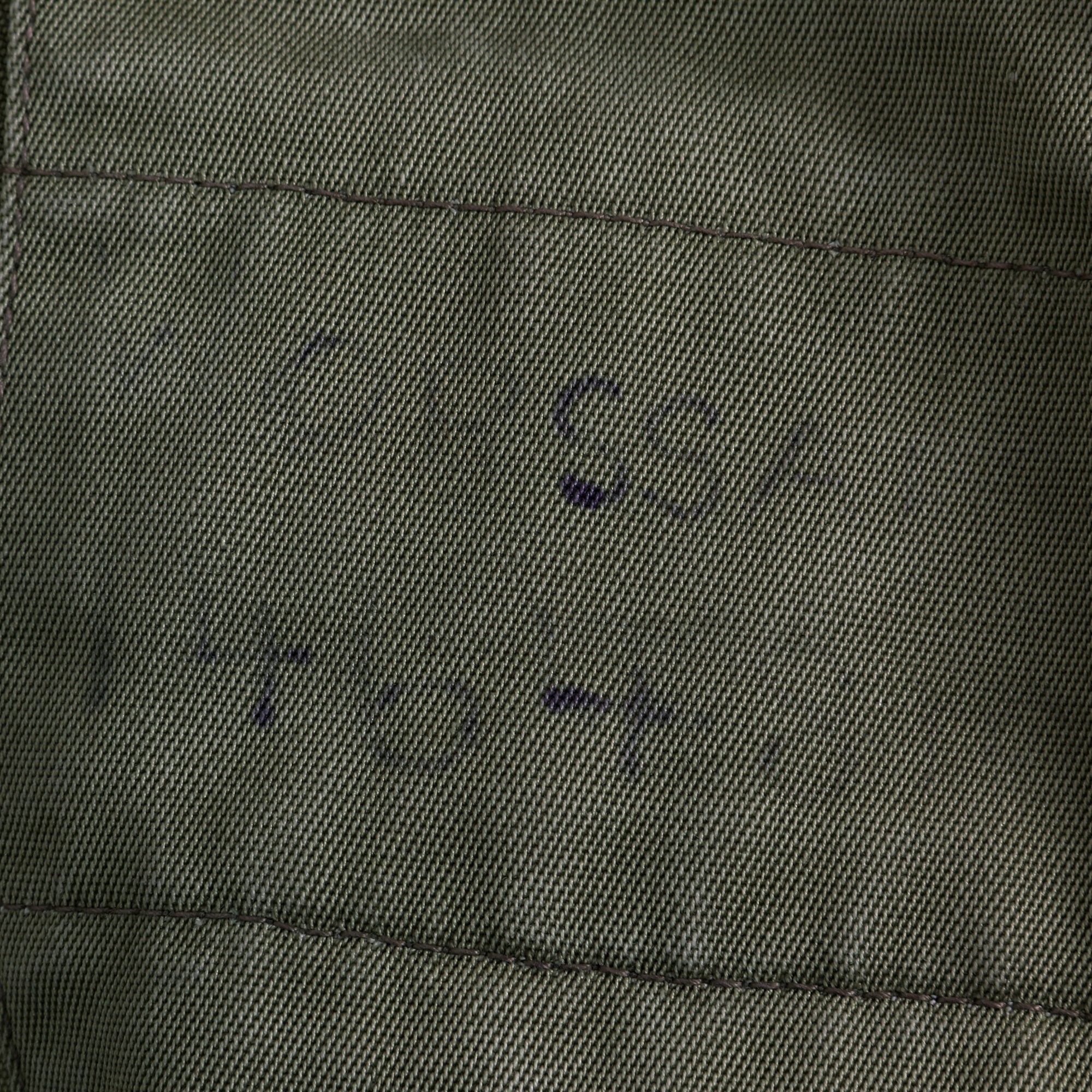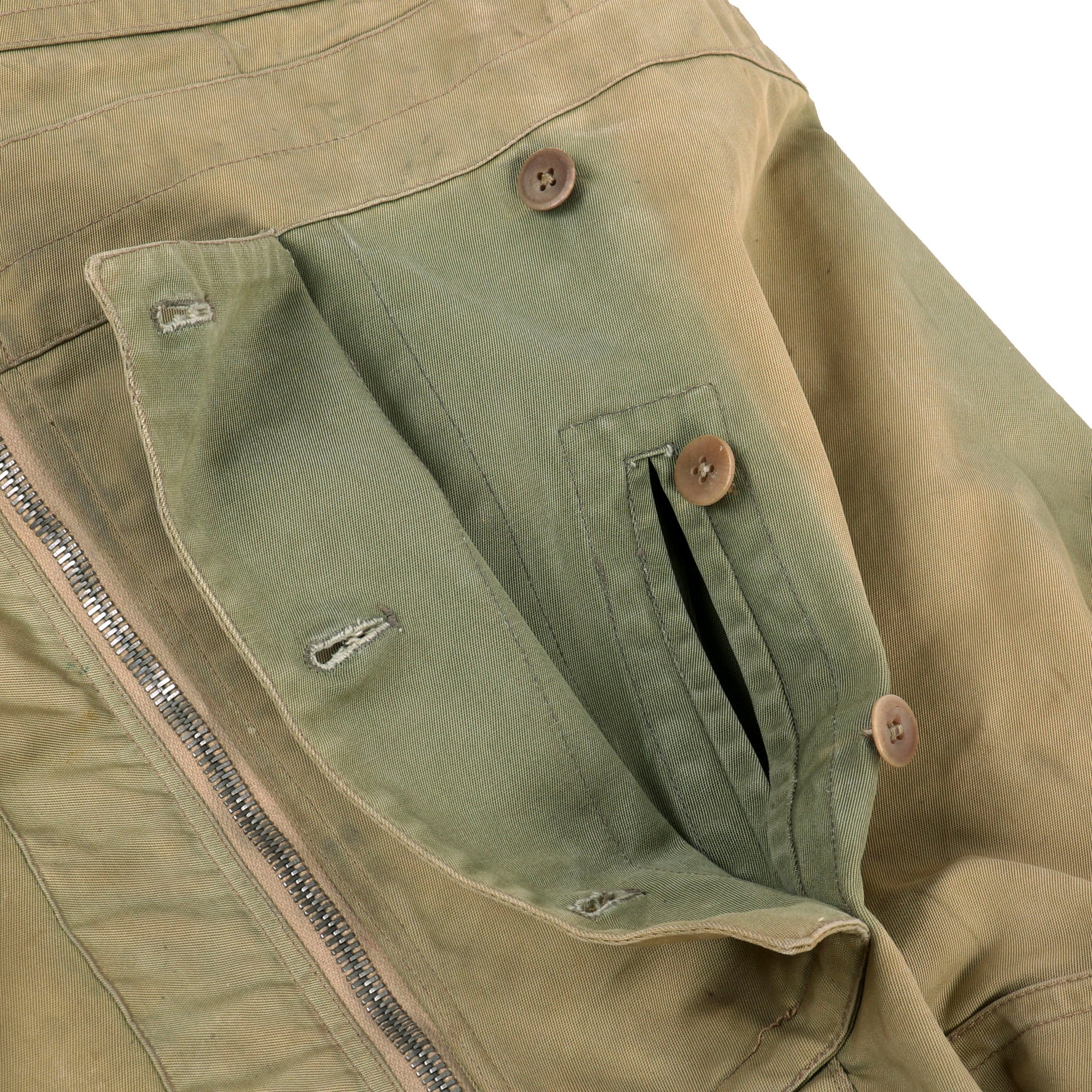 ● An Australian Air Force Flight Suit made in England. There is a tailor’s tag with the sizes of the suit Outer Size 2. Height 5’⅚”. Breast 33/35”. Waist 30/32”. Seat 35/38”. Leg 28”. The flight suit is in great shape with all its zippers retained, reading DOT MADE IN ENGLAND. The fur collar retains about 80% of its fur. The belt is fully retained.