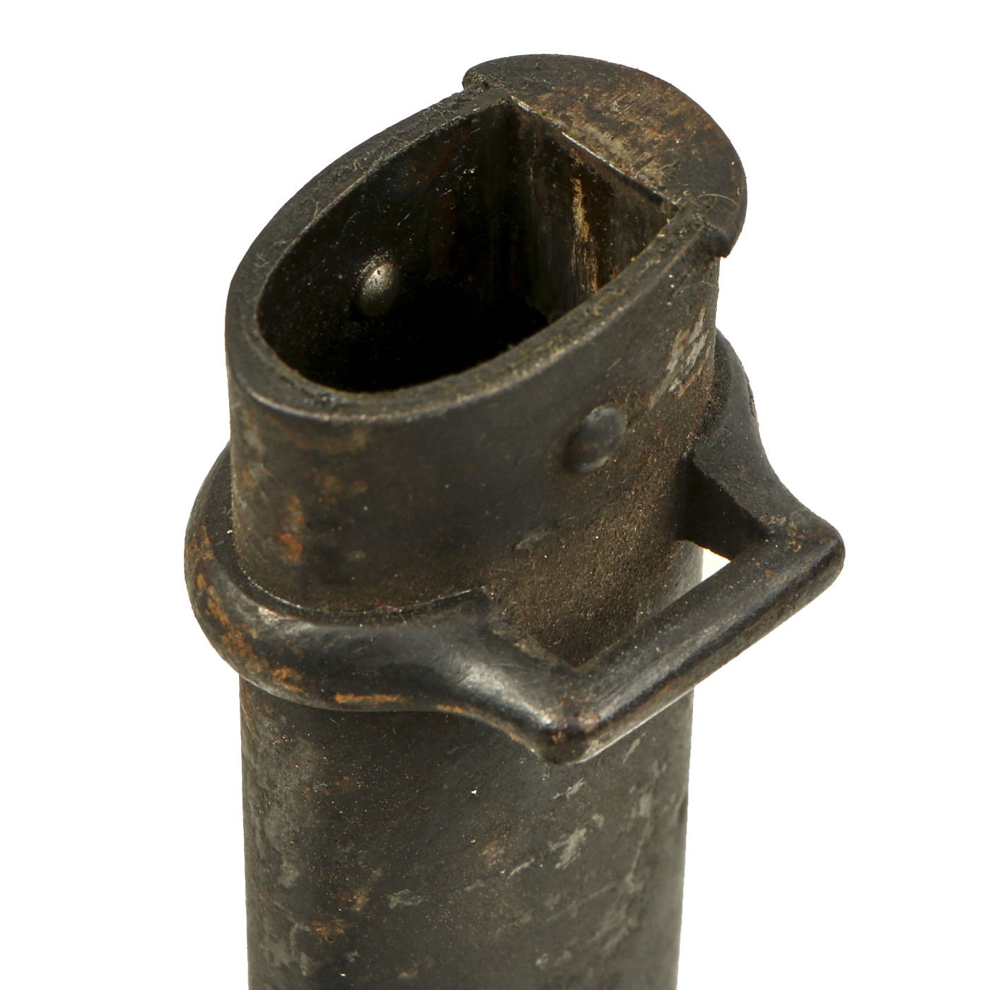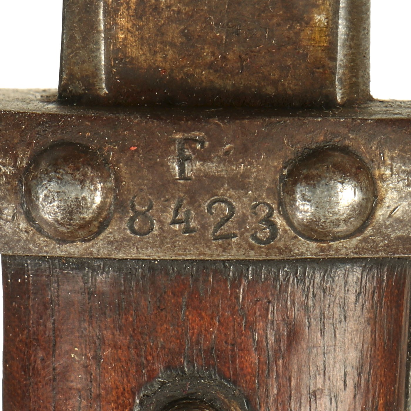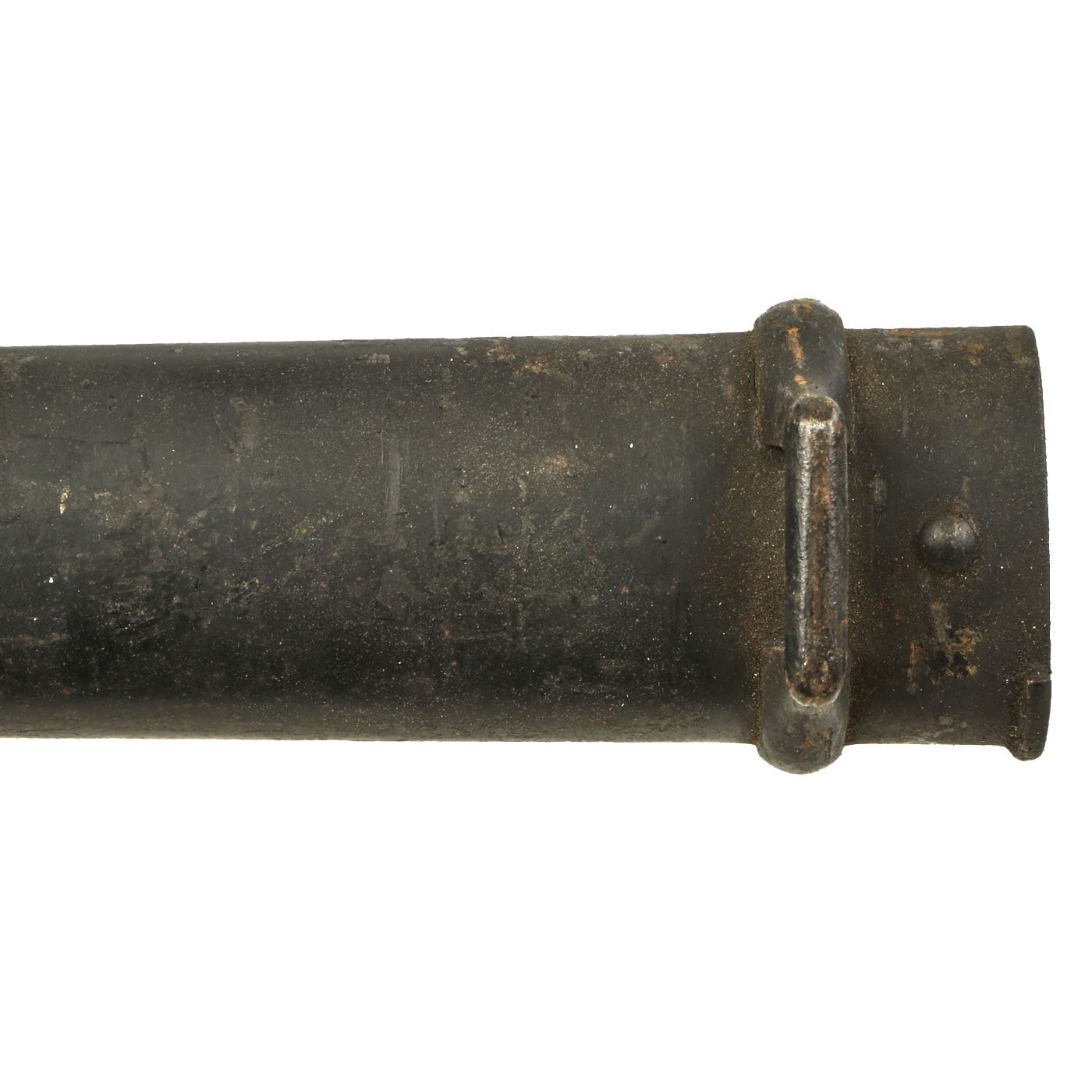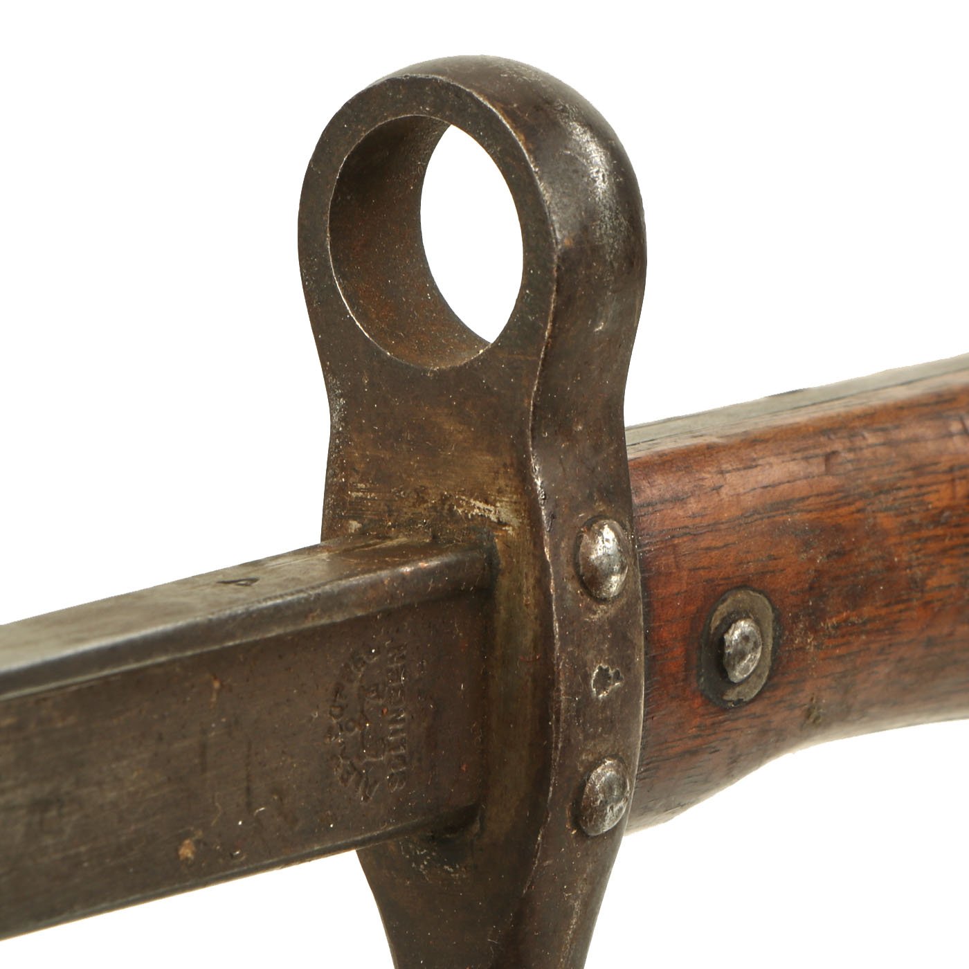 Original Item. Only one Available. These are extremely scarce and hard to find! This rare bayonet has a 20 1/2" T-Backed blade, with an overall length of 26 1/4”. Overall it is very much in the style of the French 1874 Gras bayonet, except that it features a long 5" STRAIGHT back grip, instead of the offset design. The bayonet comes complete with its original steel scabbard.