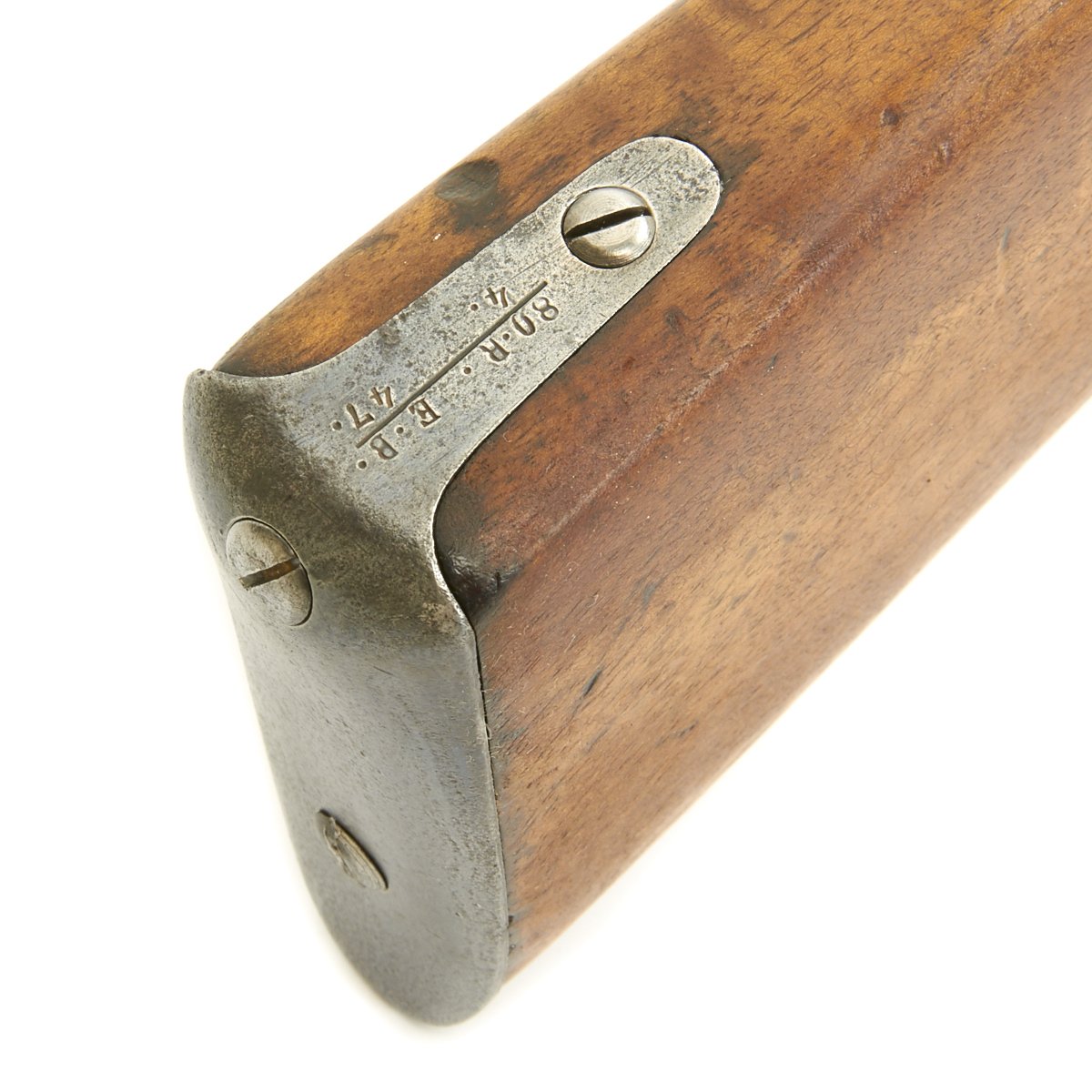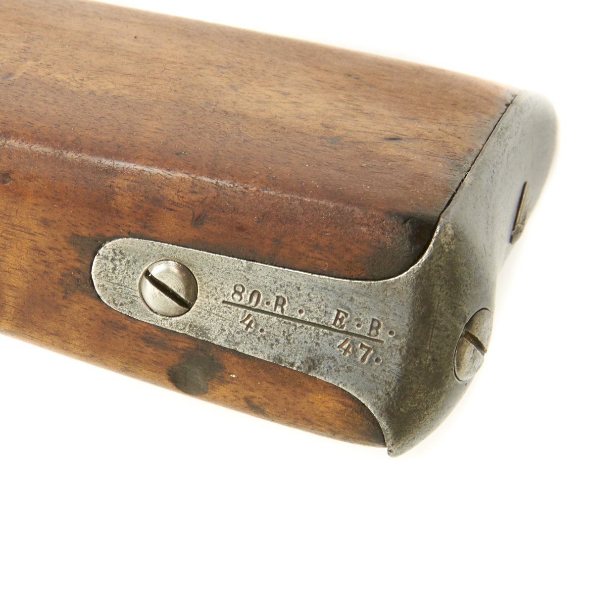 This wonderful example is fully functional, expertly cleaned, and even still has regimental markings on the steel butt plate. It is nicely dated 1870 (870) on the lock below the lock maker, L. WURZINGER, who worked under contract to ŒWG. The bore is in good shape, with clear lands and grooves, though there is some light corrosion on parts, mixed in with a bright finish. Metal condition is good, and the stock is in great shape for its age, with a wonderful patina.