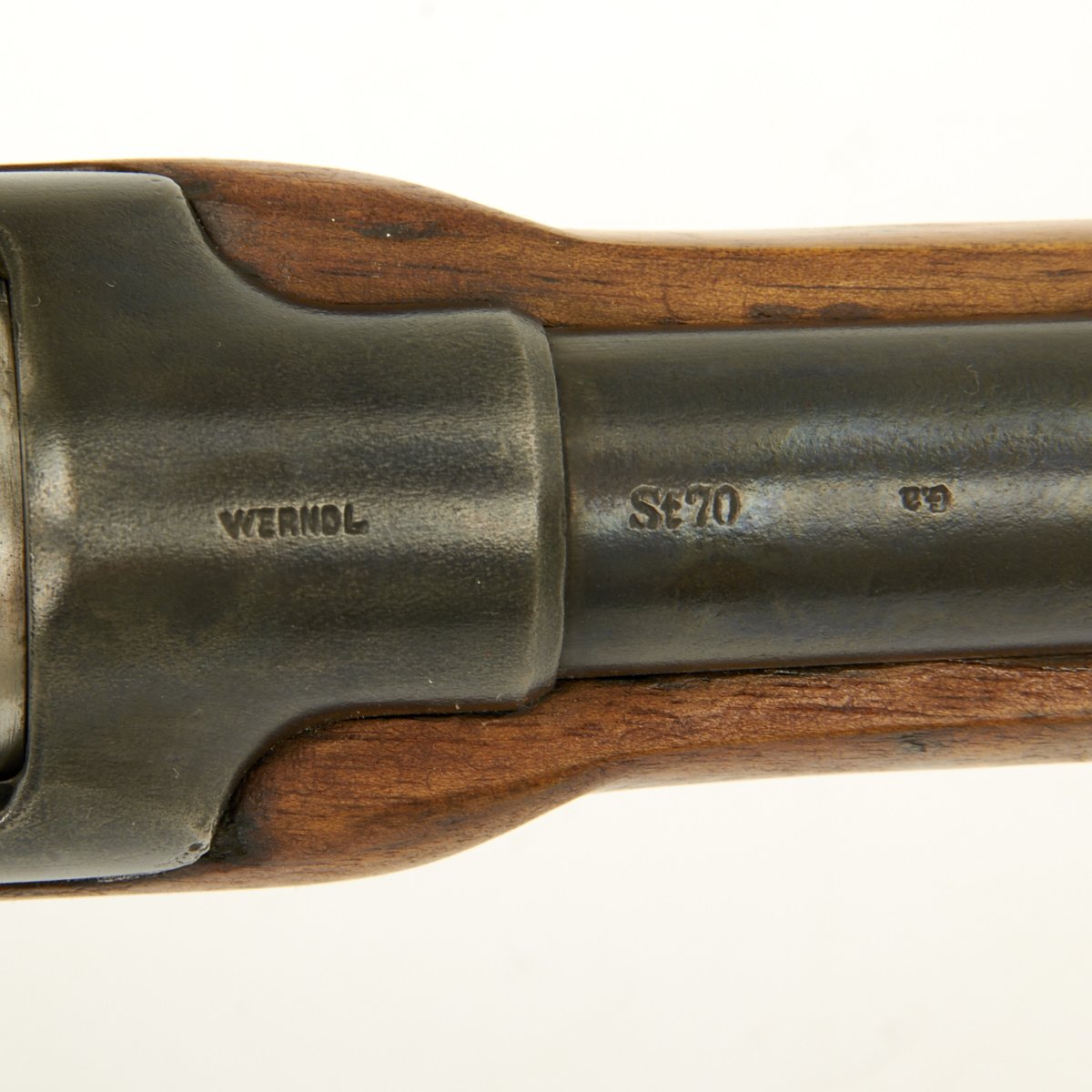 ŒWG (Österreichische Waffenfabriksgesellschaft) produced the Werndl and chambered it for the 11mm scharfe Patrone M.67 (11.15×42R) cartridge. In 1877 the military rechambered the Werndl for the bottleneck 11mm scharfe Patrone M.77 (11.15×58mmR) cartridge. Some were marked with the ŒWG logo on the receiver, while others such as this are marked WERNDL. It is also marked St.70 on the barrel.