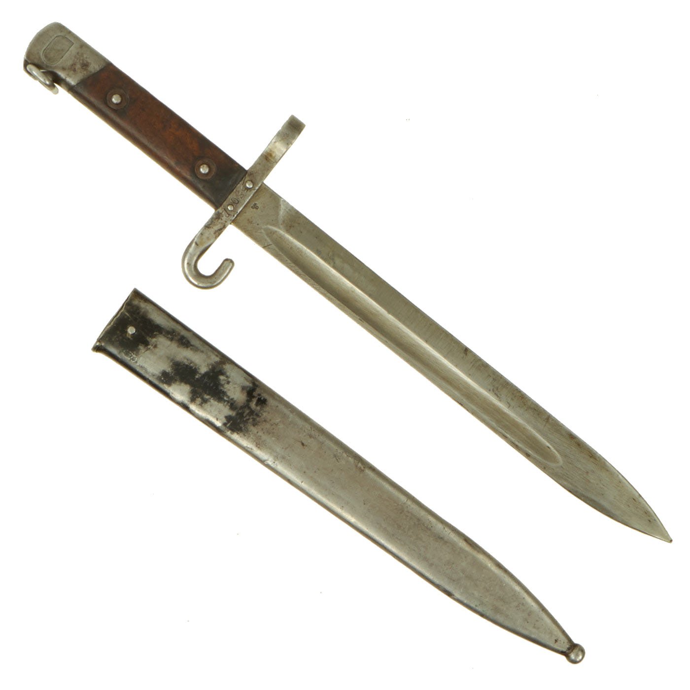Original Item: Only One Available. This is a very nice Austrian-made NCO bayonet for the Mannlicher Model 1895 straight pull bolt action Rifle, which was the principal Rifle of the FIRST WORLD WAR for the Austrian Empire. The M1895 bayonet was the first knife bayonet to feature an inverted blade profile, where cutting edge faces upward when fixed.