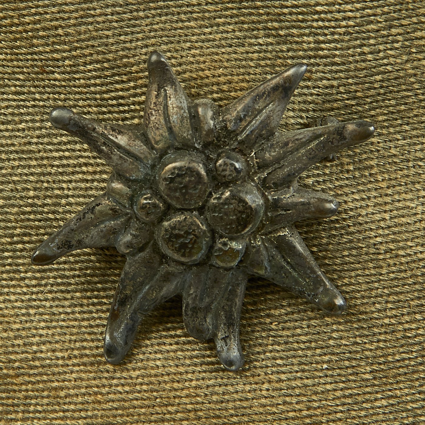 Original Item: Only One Available. The mountain infantry of Austria have their roots in the three Landesschützen regiments of the Austro-Hungarian Empire. The mountain infantry of modern Germany carry on certain traditions of the German Alpenkorps (Alpine corps) of World War I. Both countries' mountain infantry share the Edelweiß insignia, established in 1907 as a symbol of the Austro-Hungarian Landesschützen regiments by Emperor Franz Joseph I. These troops wore the edelweiss on the uniform collar. When the Alpenkorps served alongside the Landesschützen on Austria's southern frontier against Italian forces from May 1915, the Landesschützen honored the men of the Alpenkorps by awarding them their own insignia: the edelweiss.