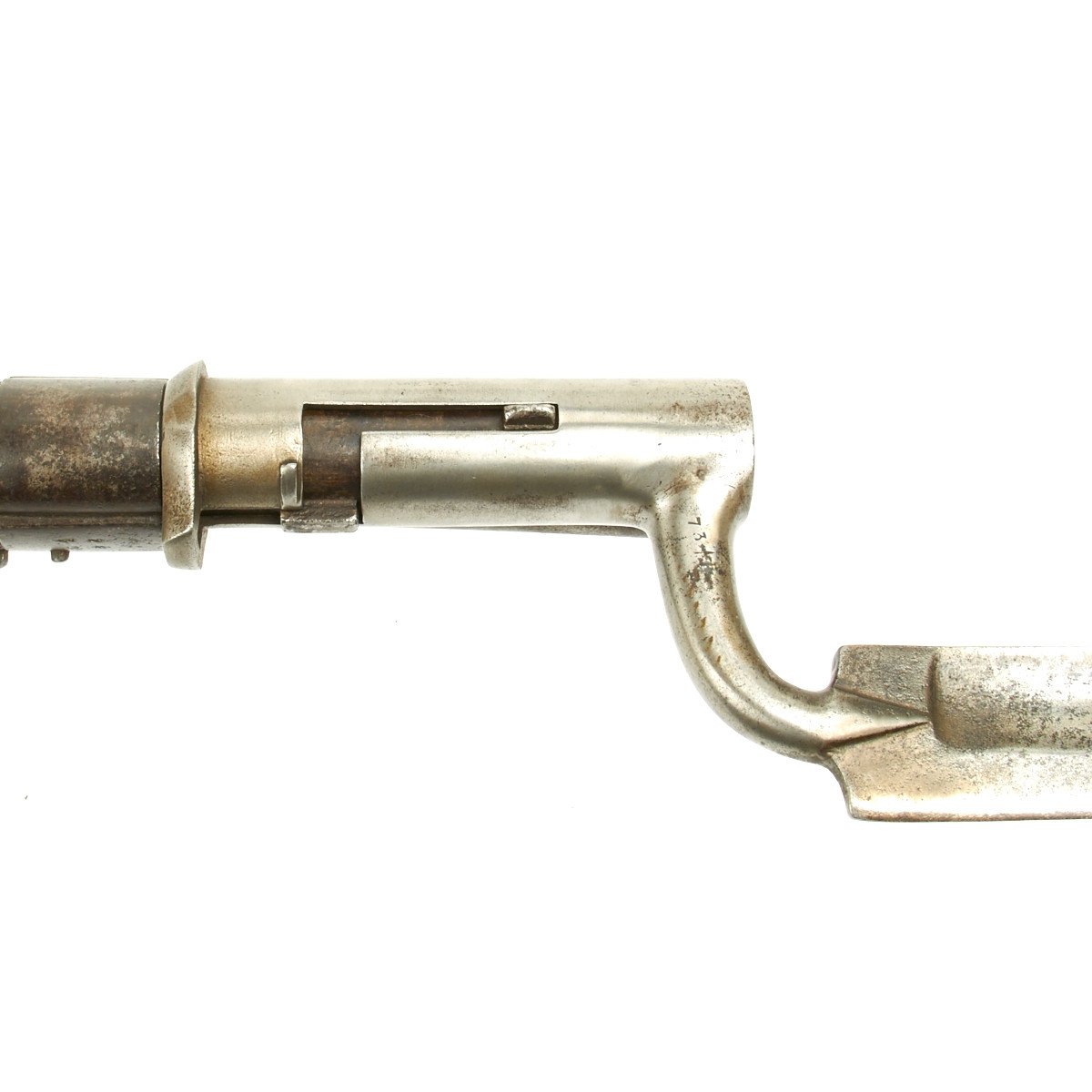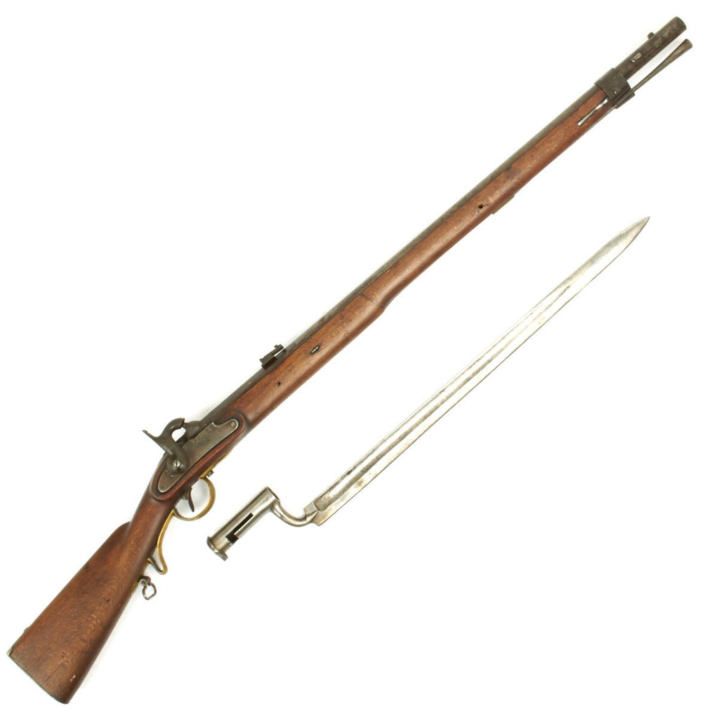 This example is completely original featuring a massive .80 bore was first introduced in 1842 and updated in 1849 to be issued with this huge 23.35" bladed sword socket bayonet which featured a rotating locking ring at the rear of the socket.