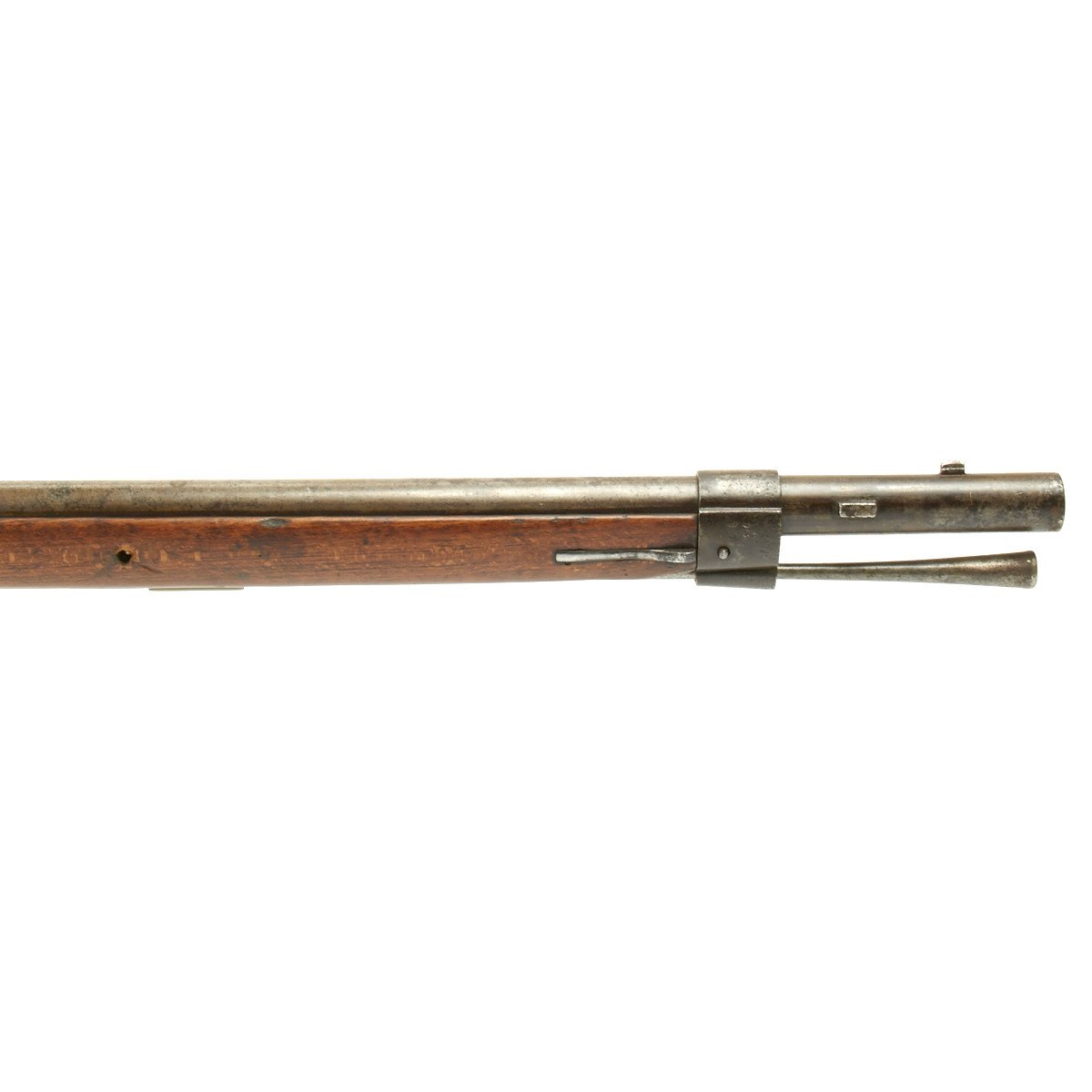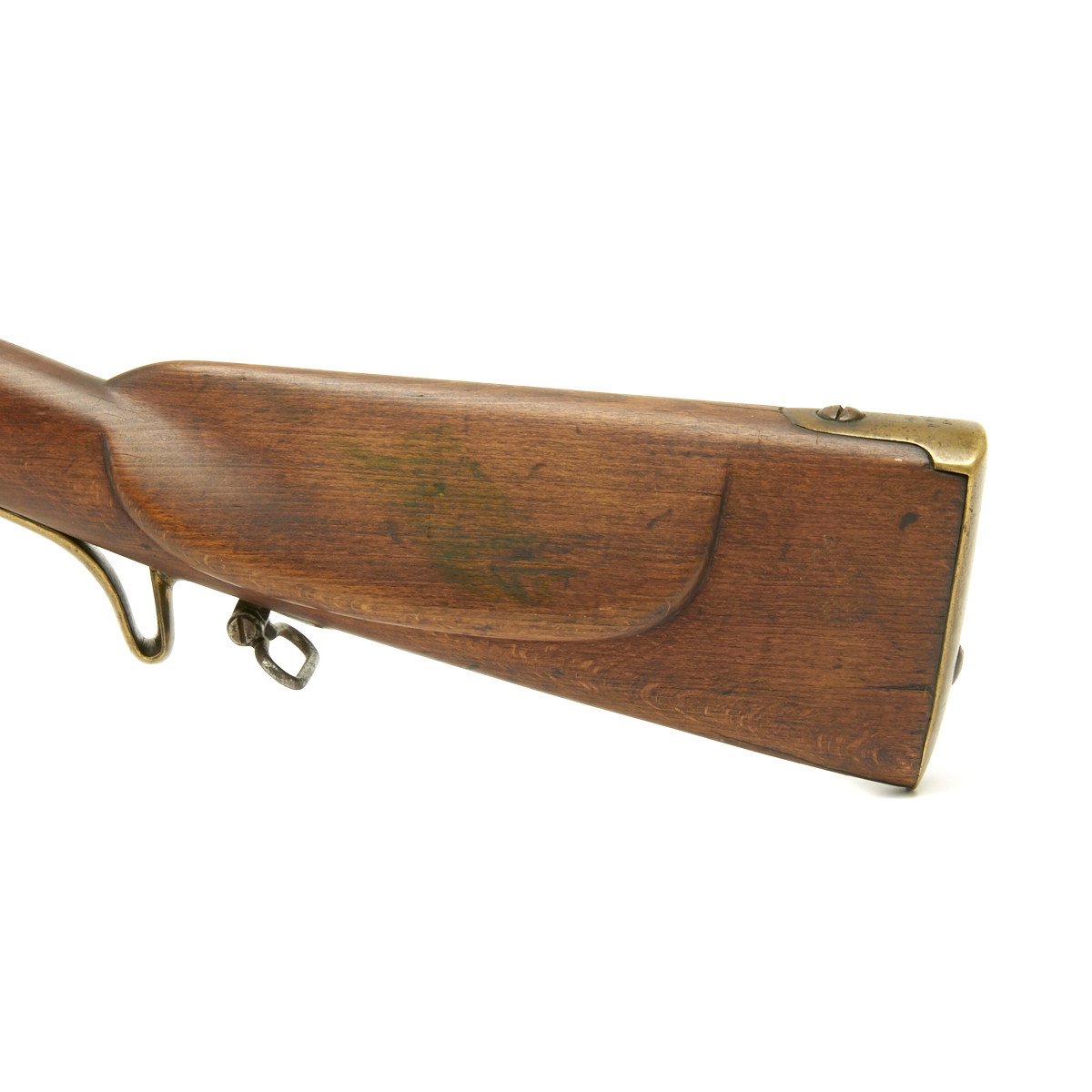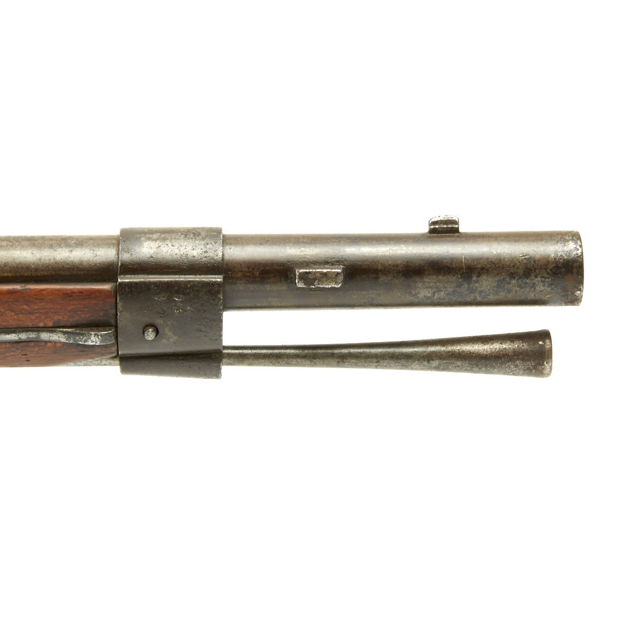 Original item: Only One Available. The rifle is a Muster 1849 Austro-Hungarian Army (k.k. Army) Kammerbuchse (chamber rifle), original produced using the somewhat bizarre System Augustin "Tube Lock". This utilized a semi-enclosed flash pan and "tube" for a more reliable ignition system. It was however short lived, and in 1854 the Lorenz rifle was developed using the much less complex percussion lock system. After this large quantities of the Kammerbuchse rifles were converted to caplock in Liège, Belgium, prior to shipment to America (probably for Federal use) during the Civil War.