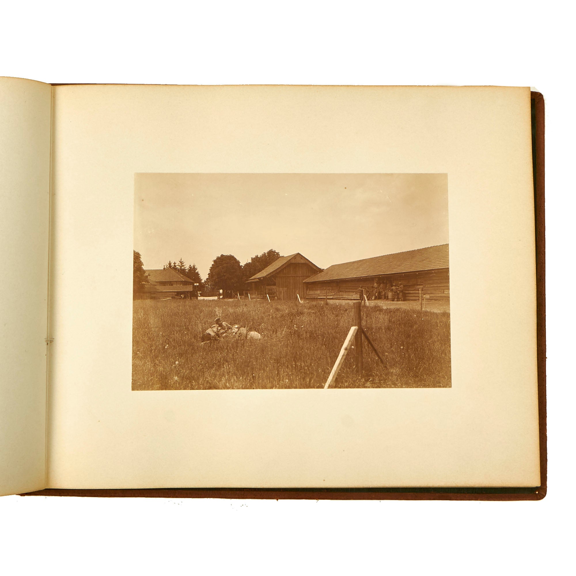 This is a wonderful 11” x 8 ½” photo album. The album appears to be an almost “commercial” type photo album with beautifully centered photos on the 11 pages that contain 1 photo each. The first page has what appears to be a name as well as a date of 1916.