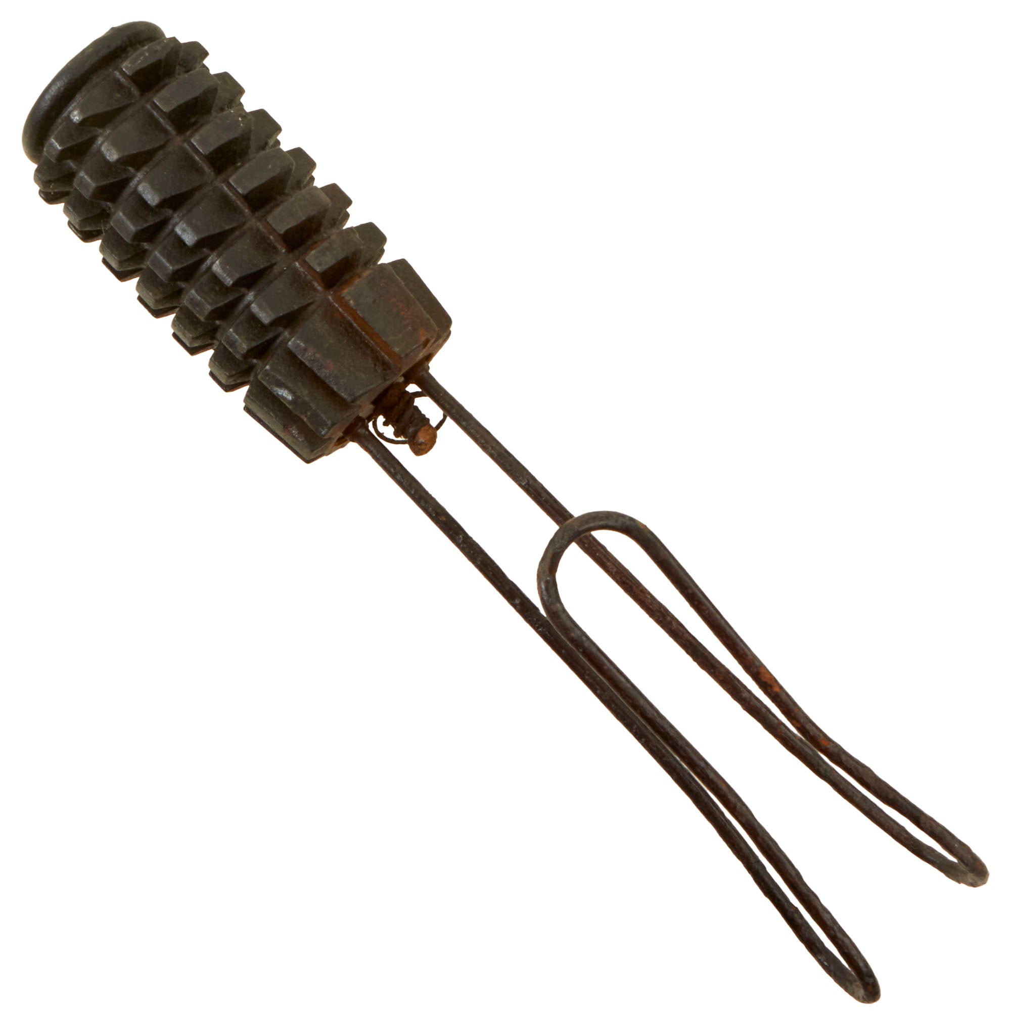 The first variant of this grenade is heavily segmented, both inside and out, one of the most dramatic grenades in this regard. A comparison of the Zeitzünder rifle rod grenade can be made with its hand grenade counterpart, the Rohrhandgranate. The body style is identical, threaded at both ends, allowing different fore and aft pieces to be substituted so the center casting could be configured to be either a rifle or hand grenade.