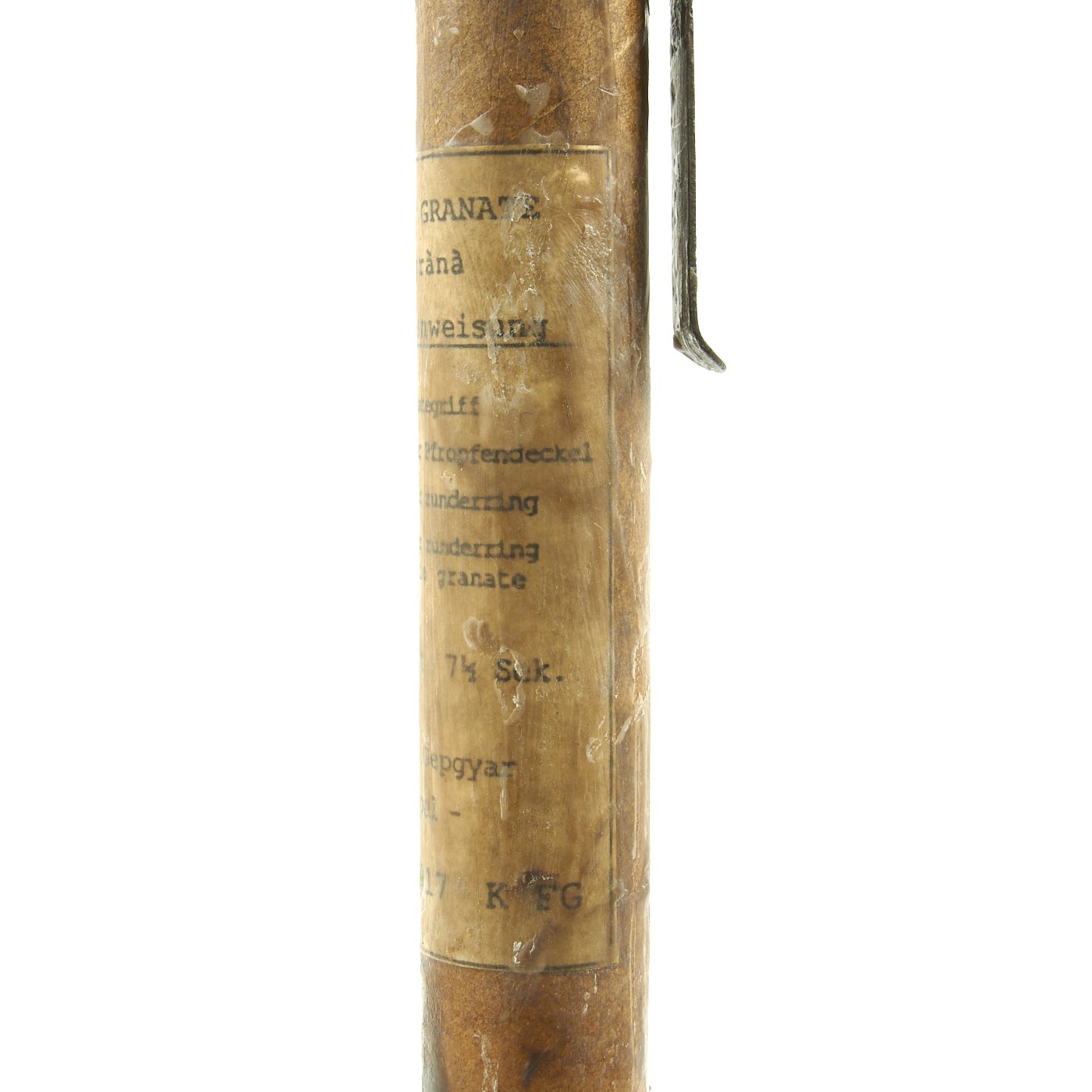 This first version of the Rohrhandgranate was designed very early in the war, with a round cast-iron body filled with steel balls, making it fairly heavy and unwieldy. The inside was filled with explosives as well, and was generally attached to a cardboard tube/pipe handle, again as opposed to the German Stielhandgranate with its wooden stick. We say generally because some photos we have seen appear to be Rohr grenades with wooden sticks, so we wouldn’t rule that out completely. Nonetheless, because the handles were generally made of cardboard, you simply don’t find many around today.