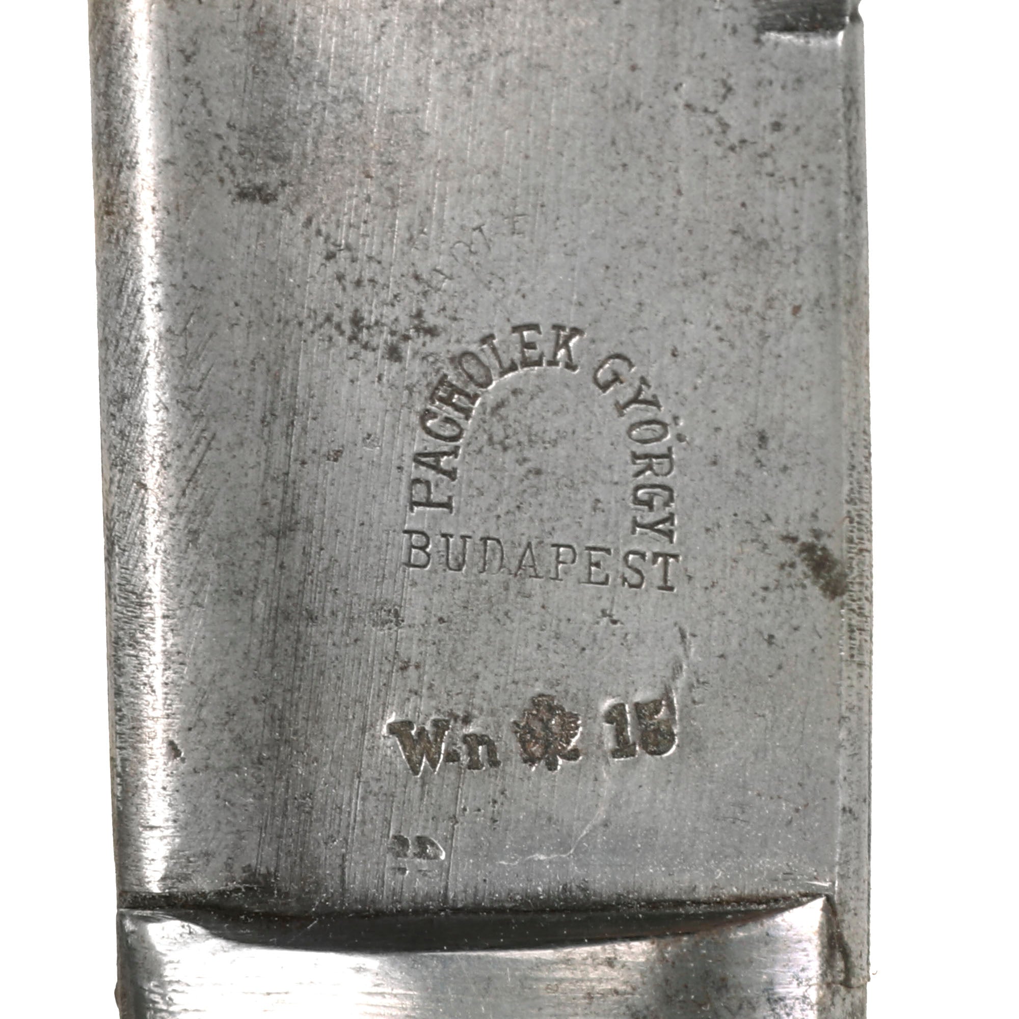 This indicates manufacture by Pacholek Gyorgy of Budapest, and we believe the proof marking below that to indicate manufacture in 1915.