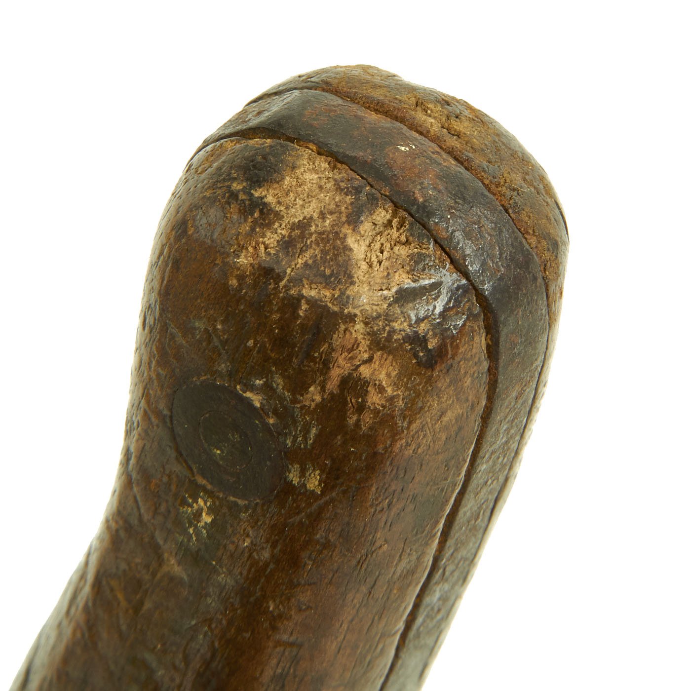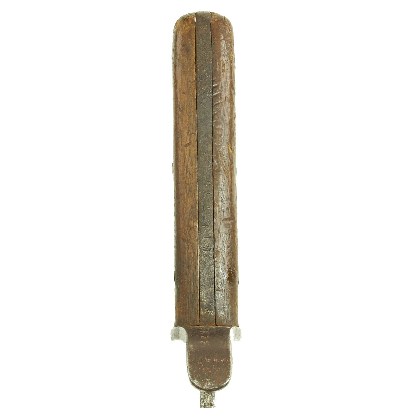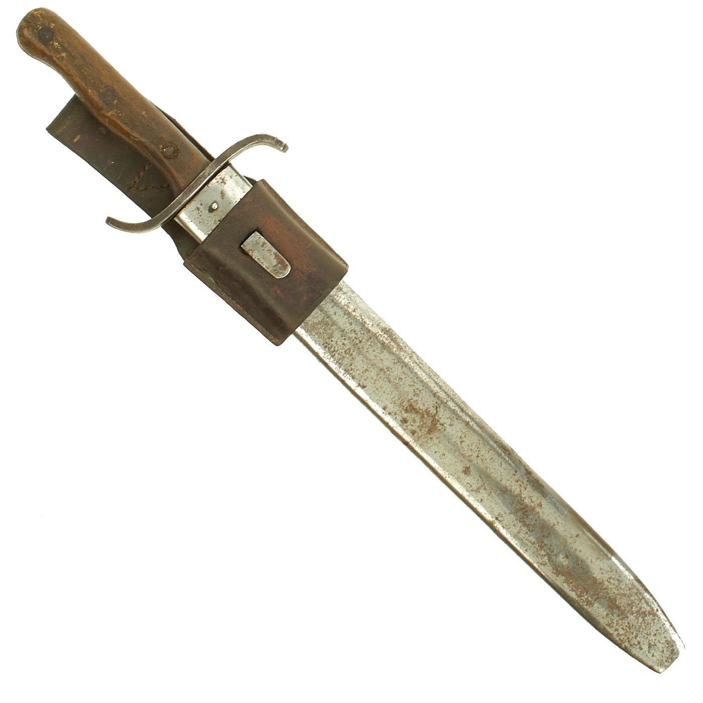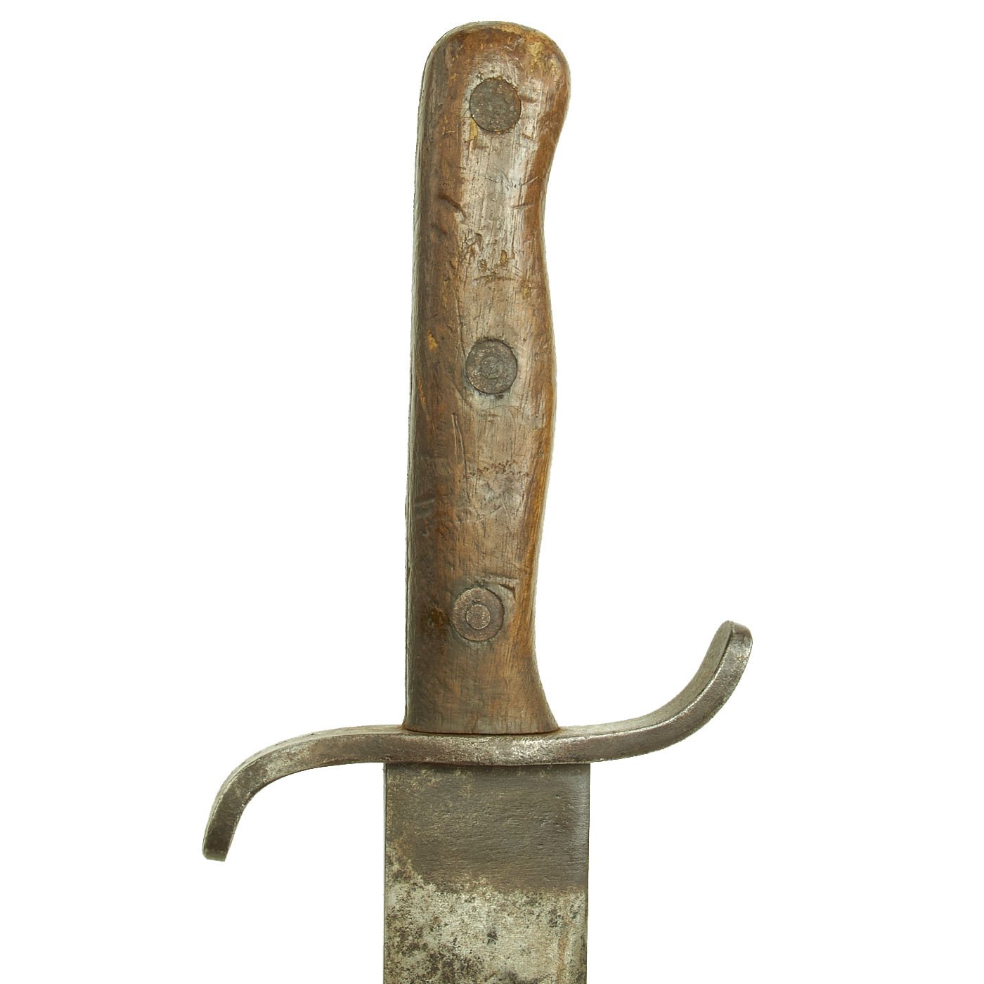 This example is in very nice condition, with some light staining and past pitting on the heavy 15 3/8 inch long blade. With an overall length of 21 1/4 inches, these were ideal for their intended purpose of clearing brush and chopping through small branches. It features a distinctive "S" shaped crossguard, with a nice long wooden grip, for a secure hold.