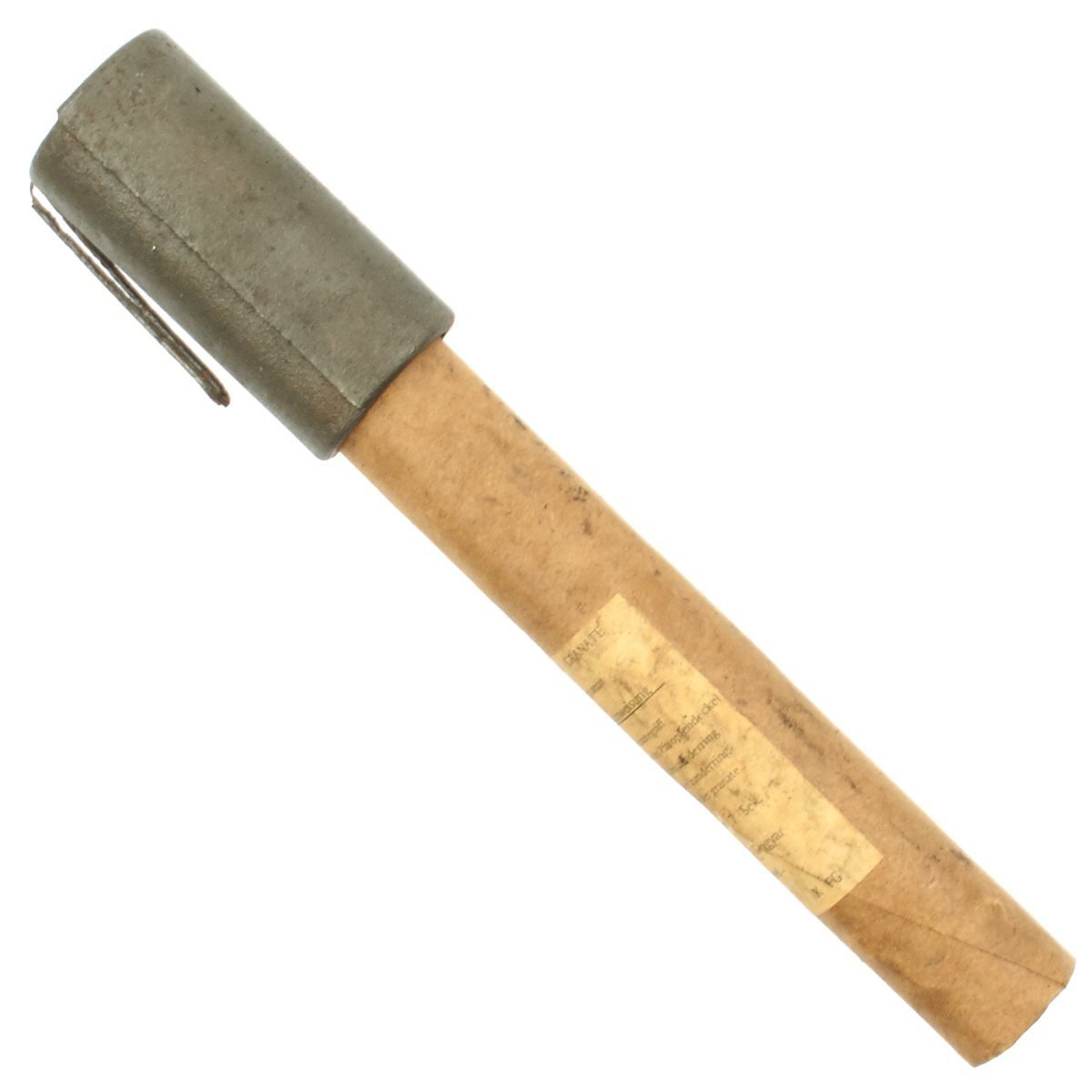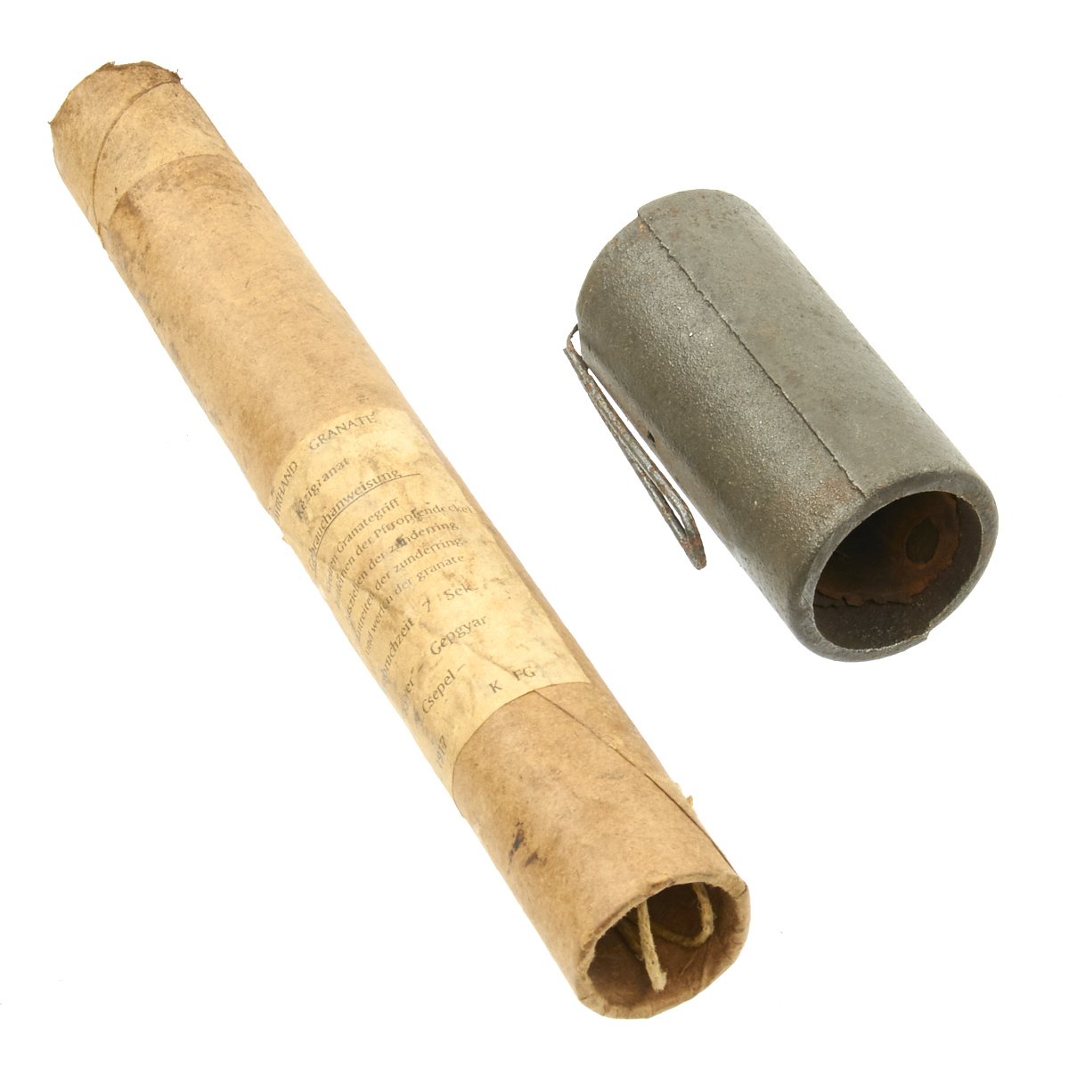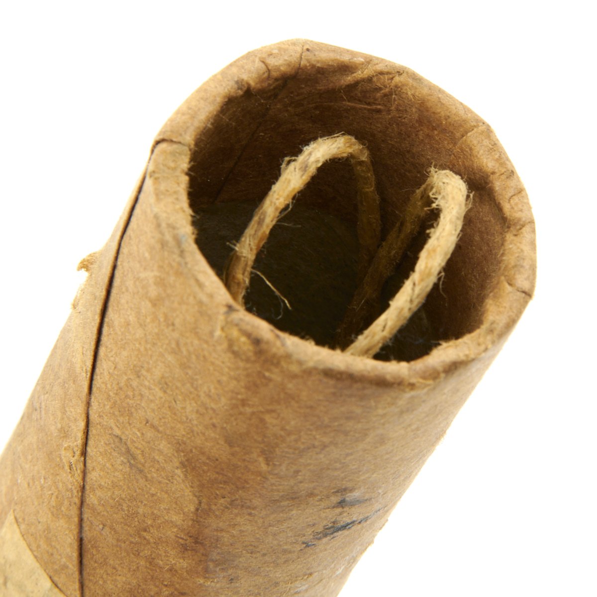The Rohr hand grenade was a cast-iron cylinder concussion grenade filled with explosive, and generally attached to a cardboard handle, again as opposed to the German Stielhandgranate with its wooden stick. We say generally because some photos we have seen appear to be Rohr grenades with wooden sticks, so we wouldn’t rule that out completely. Nonetheless, because the handles were generally made of cardboard, you simply don’t find many (any?) around today.