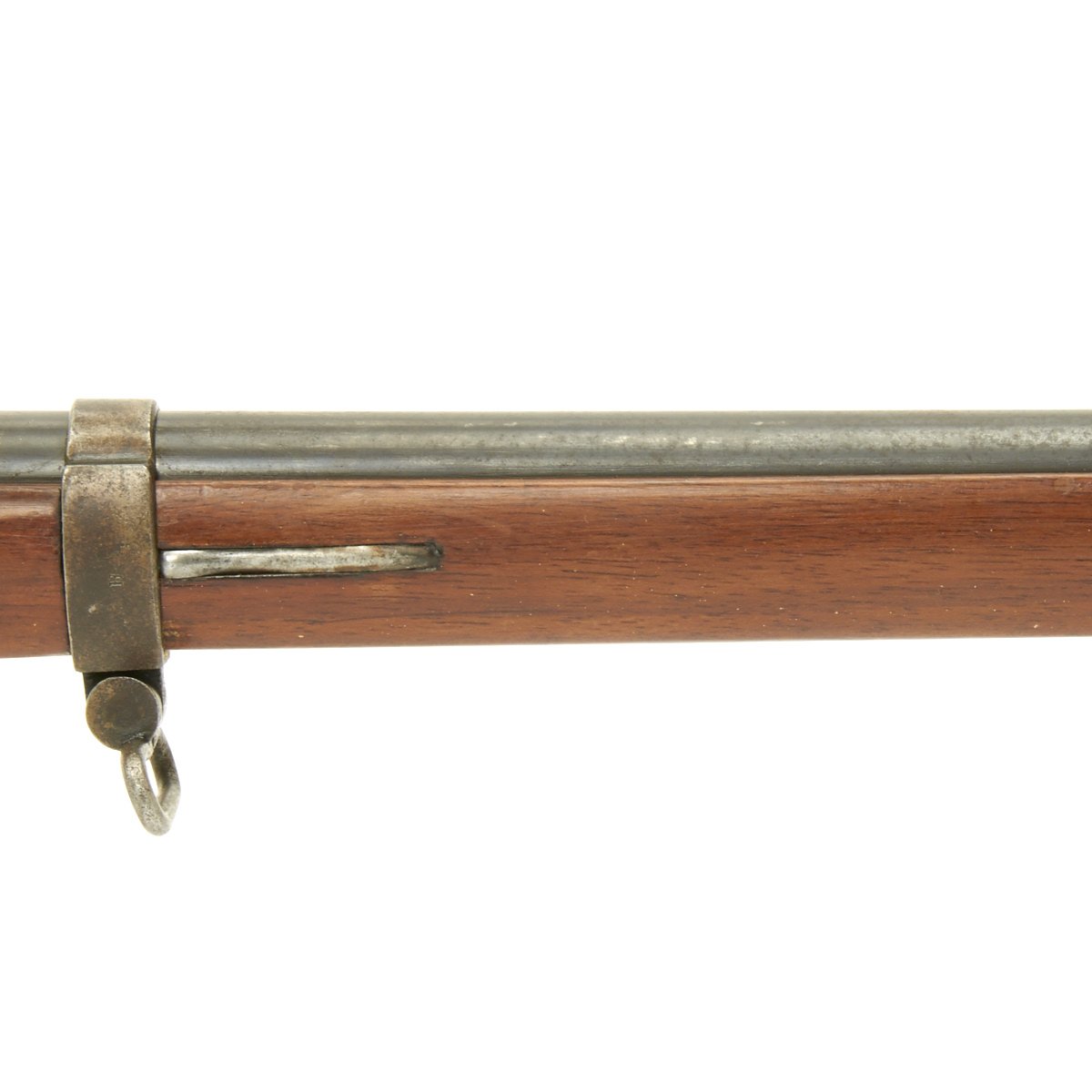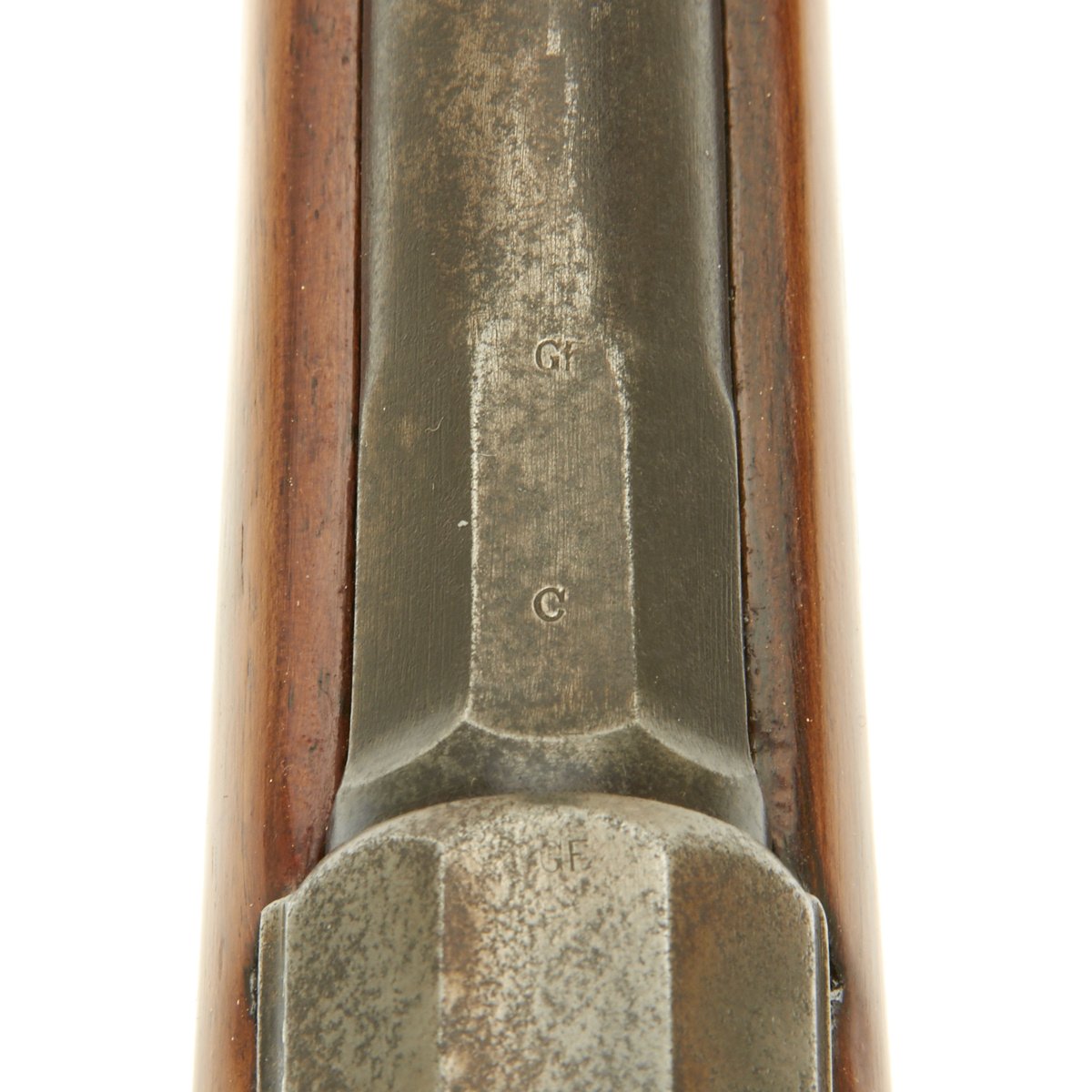 This simple re-chambering did not prove successful as the rifle/action/stock combination was not strong enough to handle the extra power of the M71 cartridge resulting in numerous cracked stocks. This example however survived, and was not converted to the later M-1869 n.M, which replaced the entire barrel with one originally chambered for the M71 cartridge. These are easily recognized by a barrel knoxform that extends all the way from the breech to the rear sight.