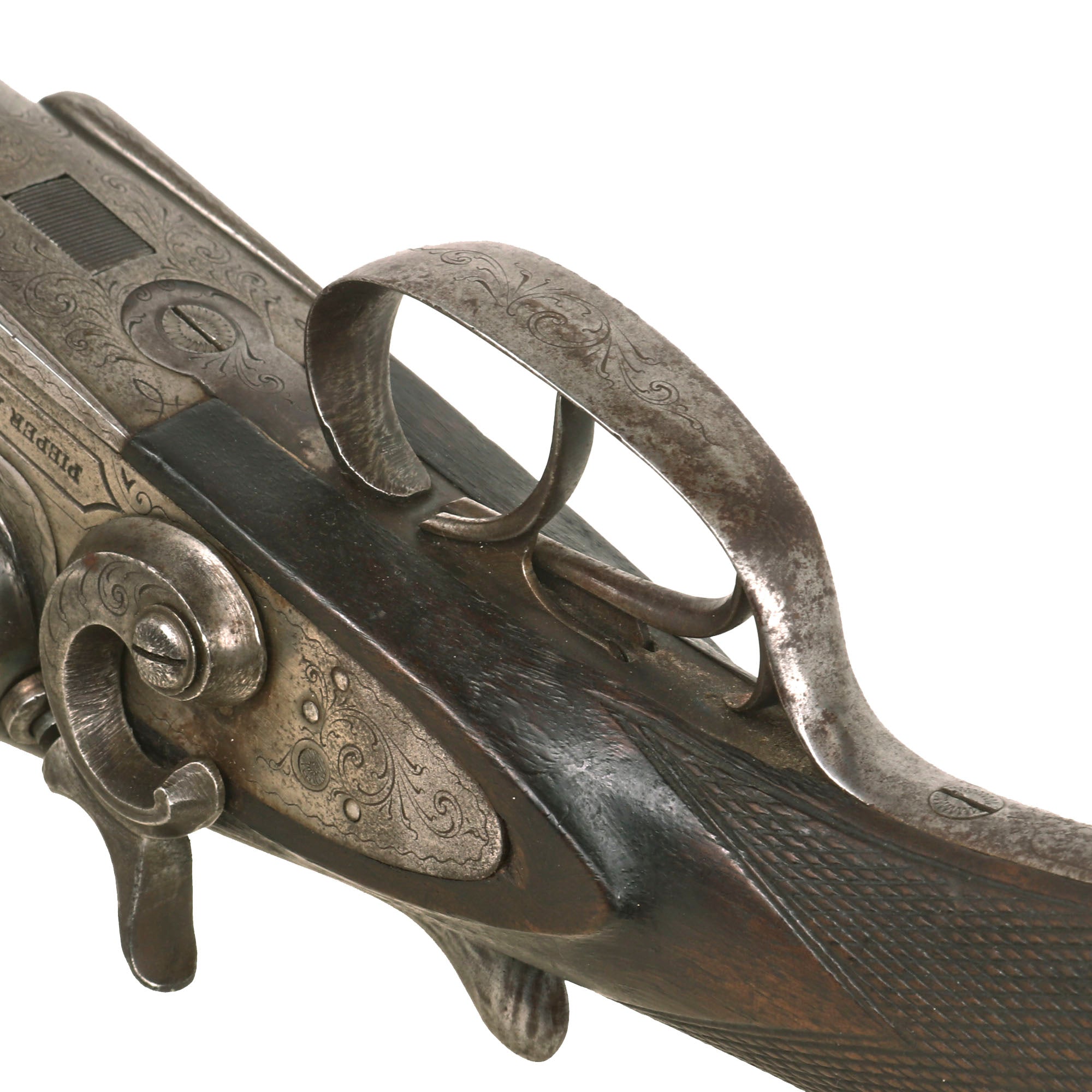 Original Item: Only One Available. This is definitely in fine condition for close to 140 of age! Produced in the Belgian city of Liège, one of Europe's leading Gun Manufacturing centers, this fine example was made by PIEPER ARMS Co, as marked on both locks. Henri Pieper was born in Soest, Westphalia, Germany during 1840, and would later train as a gunsmith in nearby Warstein. In 1859 Pieper emigrated to Liège, which offered much larger opportunities for advancement, and he was quite successful, founding Pieper Arms Co., a maker of many fine firearms. He was awarded multiple patents over his career, which unfortunately was cut a bit short when he died at the relatively young age of 57 on August 23, 1898, after which production ceased.
