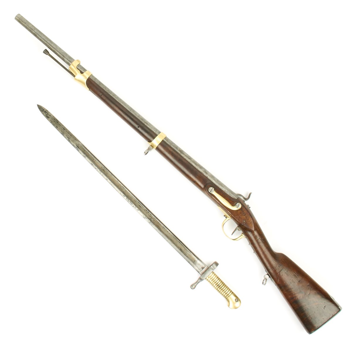 An extremely rare Belgian Artillery Short Musket complete with its very long Sword bayonet, ready to display.