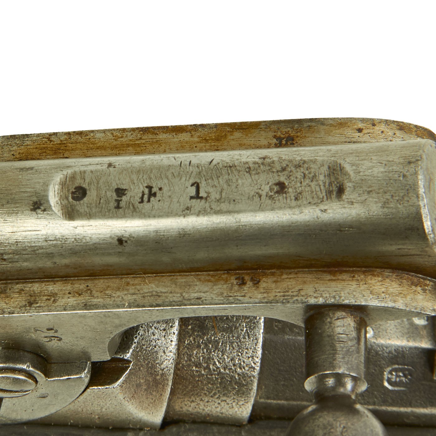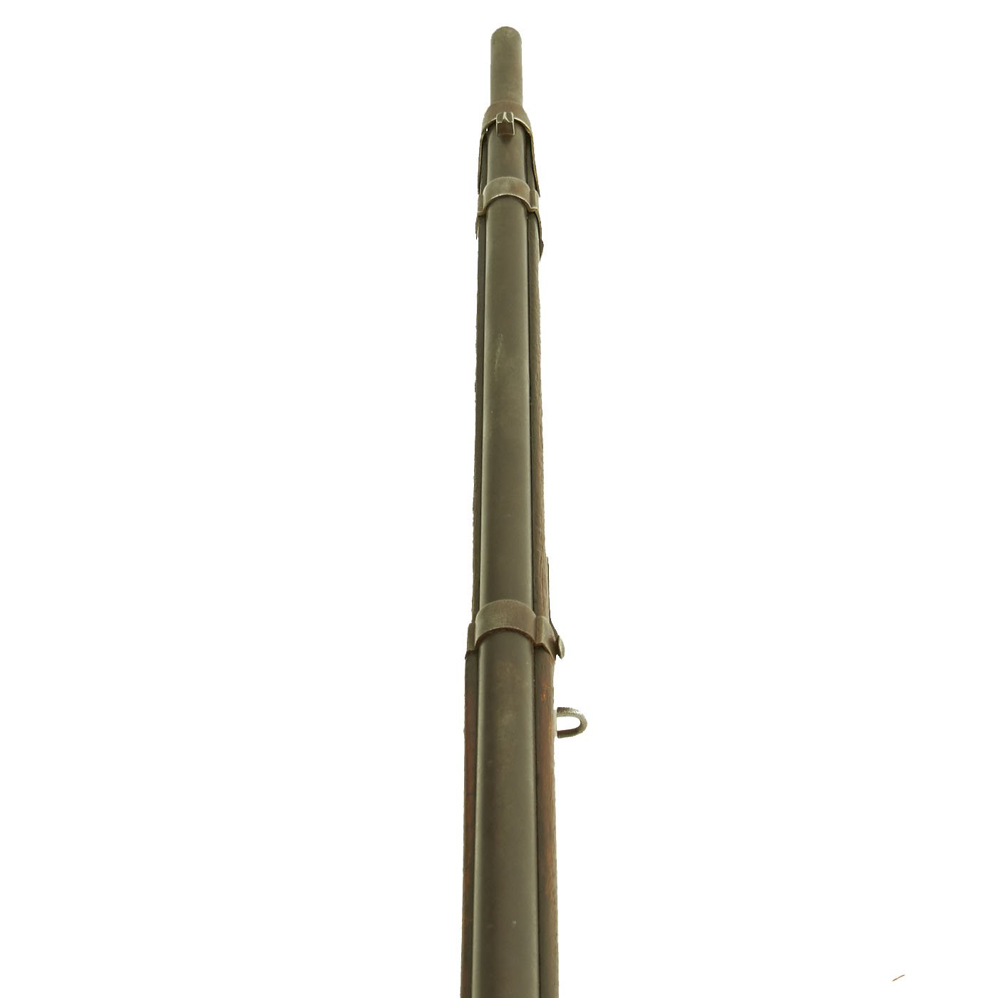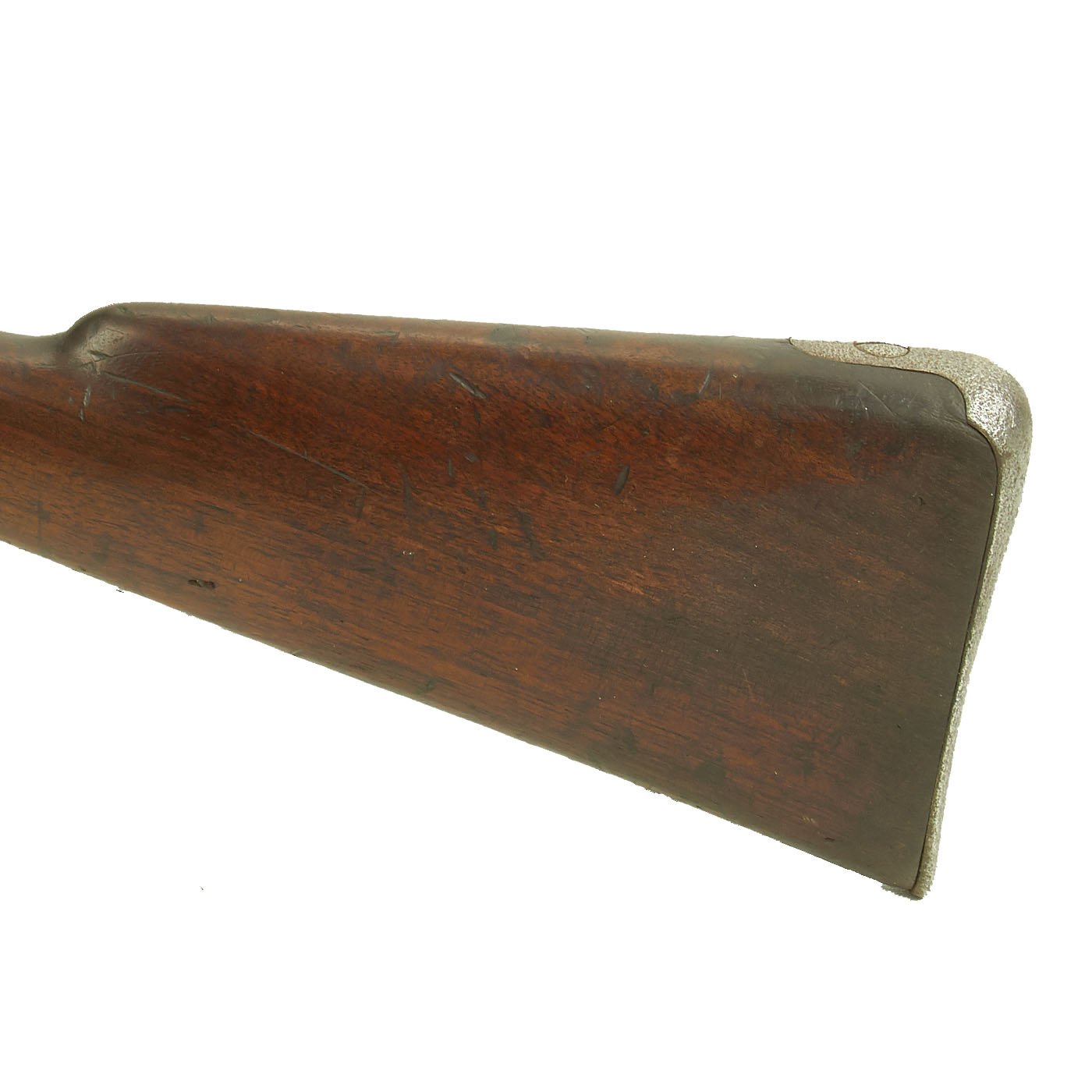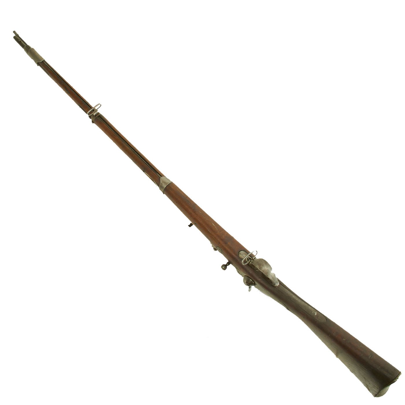 Our example is dated 1867 on the left side of the barrel nocks form, and has multiple proofs and inspection marks on the metal work. Serial number 790 is present on many of the components of the rifle, and the action functions correctly. The metal is in it's original steel color, the markings appear all to be present. The stock bears the usual scuffs and dents from military handling. The metalwork has an overall peppered patina, with light past pitting, which is a bit worse on the butt plate. The bore, on the other hand, is bright and shiny, with crisp lands and grooves. The rifle comes with its cleaning rod and is fully operational from what we can see.