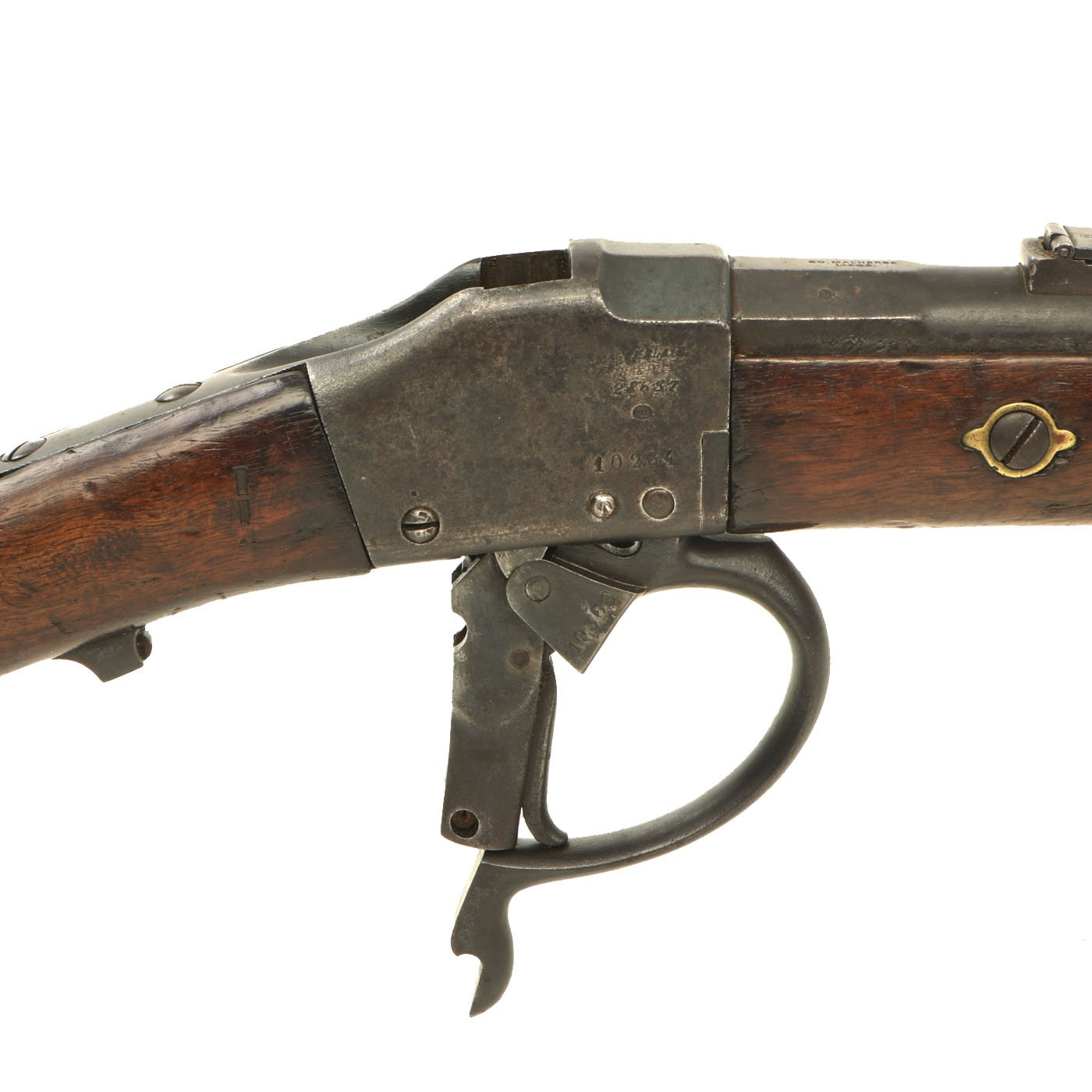 Original Item: One Only. Invented by Joseph-Hugo Comblain, a Belgian Gun designer from Liege, this is a single short falling block weapon of ingenious design. It was adopted by Belgium, Brazil and Chile, but was up against the British Martini Henry Rifle of even better design that dominated most of the 1870s. It is marked on the side of the receiver with: