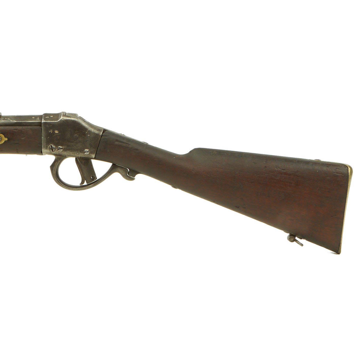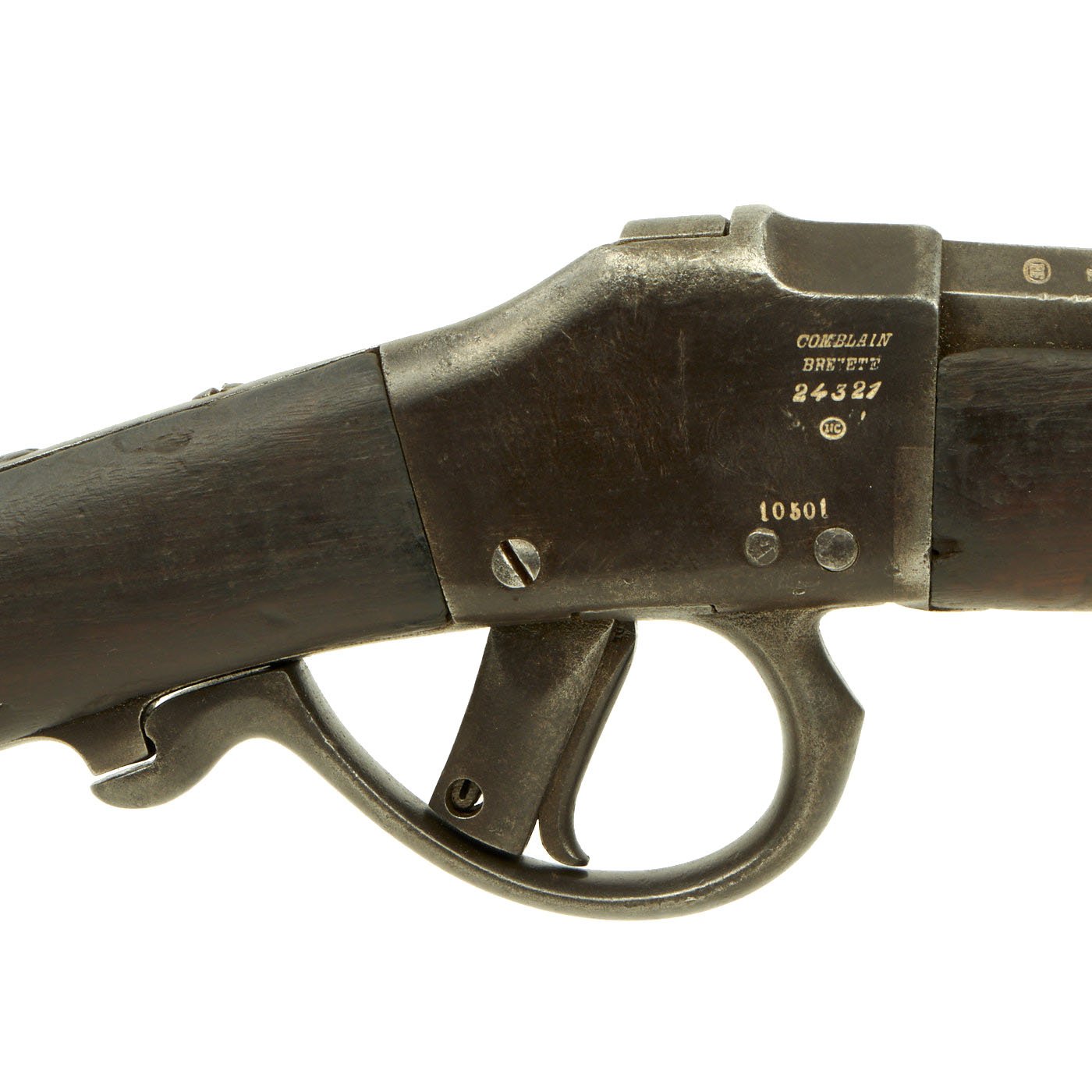 Original Item: One Only. Invented by Joseph-Hugo Comblain, a Belgian Gun designer from Liege, this is a single short falling block weapon of ingenious design. It was adopted by Belgium, Brazil and Chile, but was up against the British Martini Henry Rifle of even better design that dominated most of the 1870s. It is marked on the side of the receiver with: