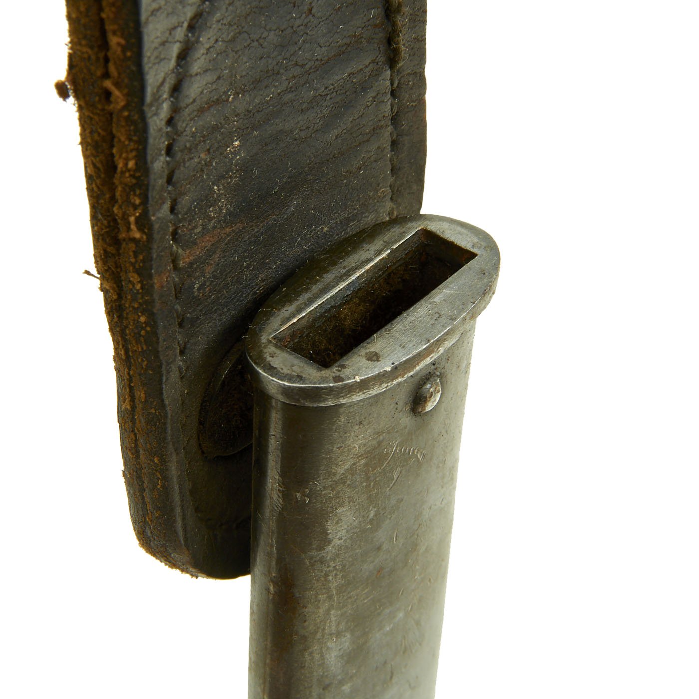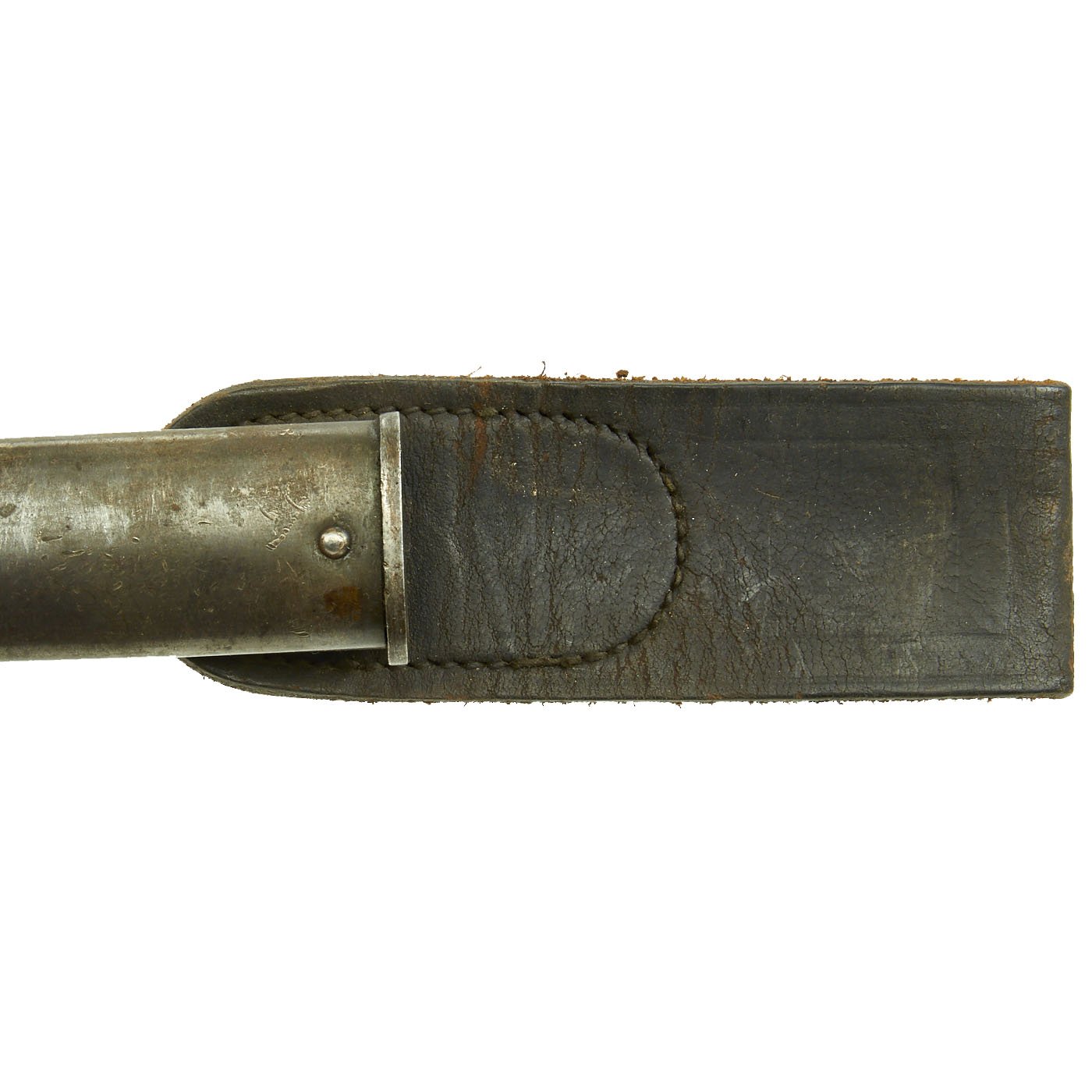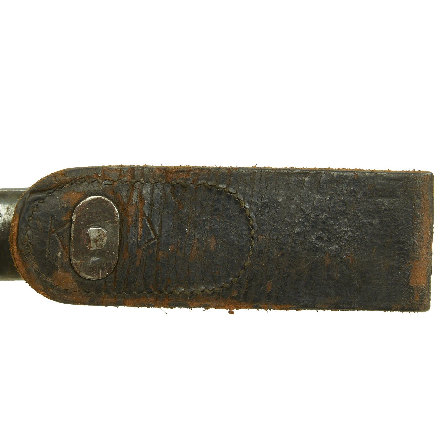 Original item: Only One Available. This is very rare, especially in the wonderful all original Condition. The steel is bright and the bayonet has almost a 16" blade, with an overall length of 20 1/2". The grips are wood secured by two rivets, ground smooth. It bears the Rifle's serial number 215066 and comes in its original blued steel scabbard complete with its original integral leather belt frog. The top of the crossguard is clearly marked WINCHESTER REPEATING ARMS CO.
