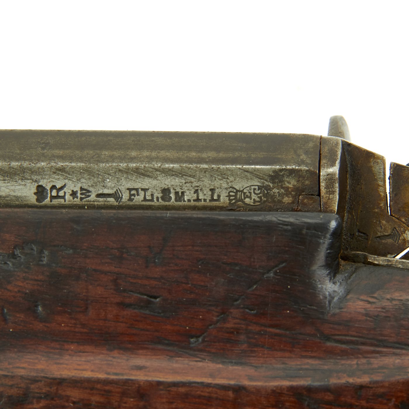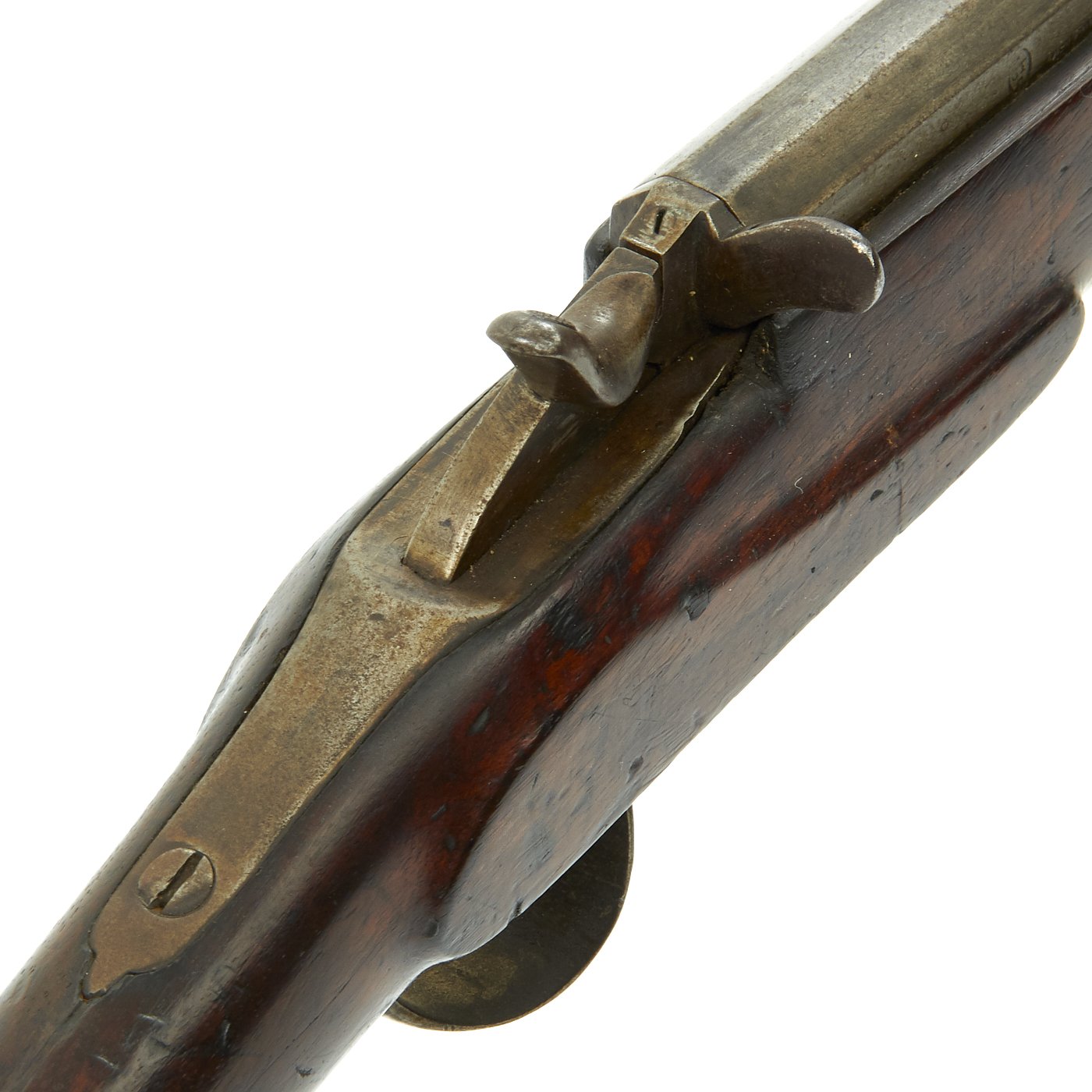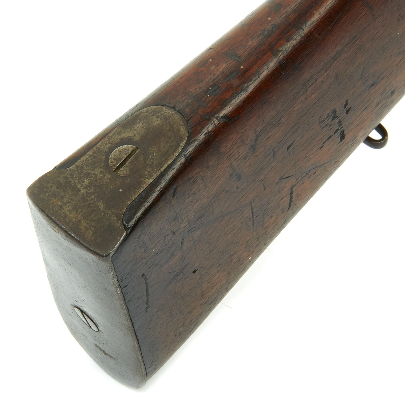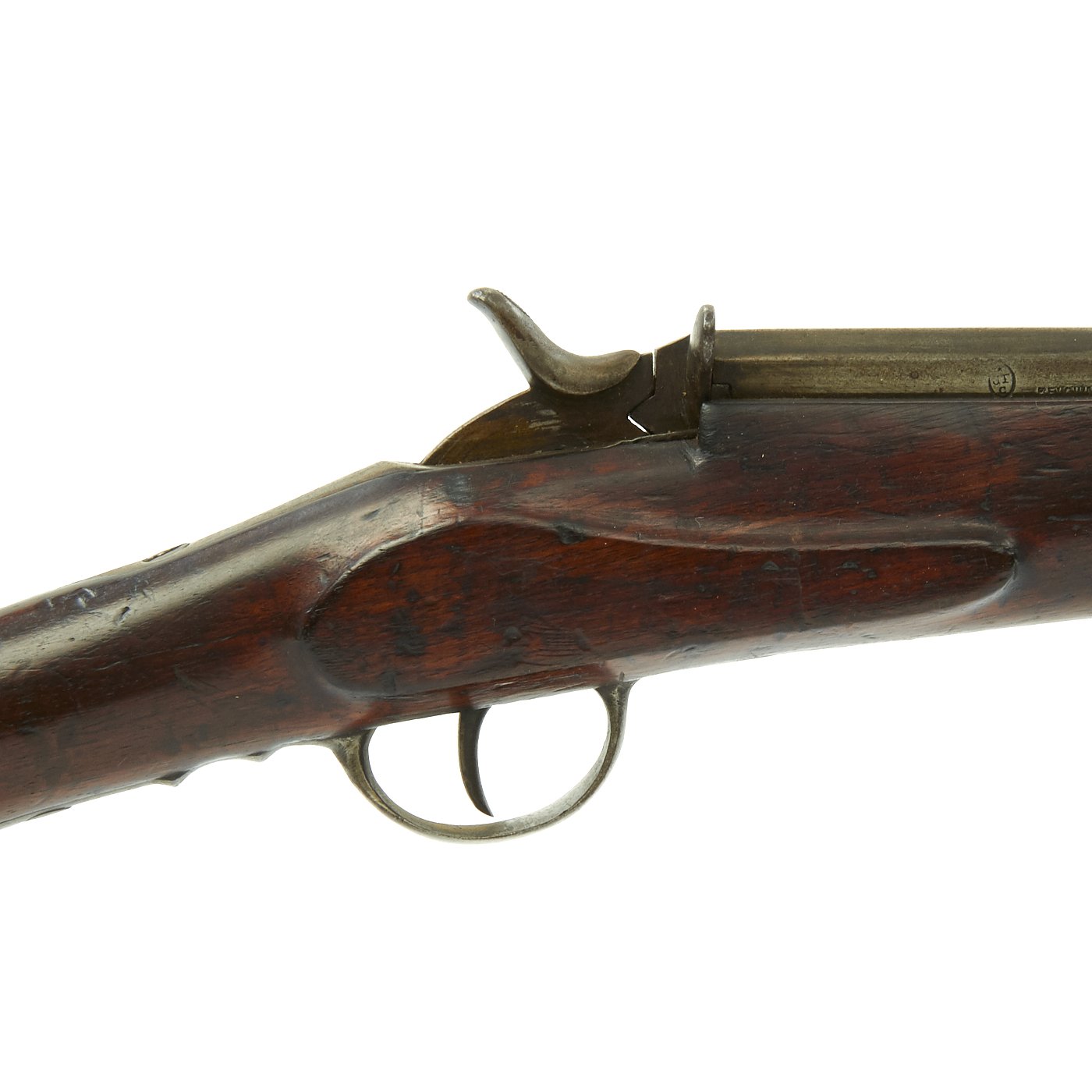 Original Item: Only One Available. This is a very interesting small Cadet Rifle, made using the rolling block system designed by Louis-Nicolas Flobert, the inventor of rimfire ammunition. In about a .30 Caliber rimfire the barrel is fully rifled. The walnut wood stock goes almost to the muzzle and has three iron barrel bands. The trigger guard and the Butt plate are also of iron.