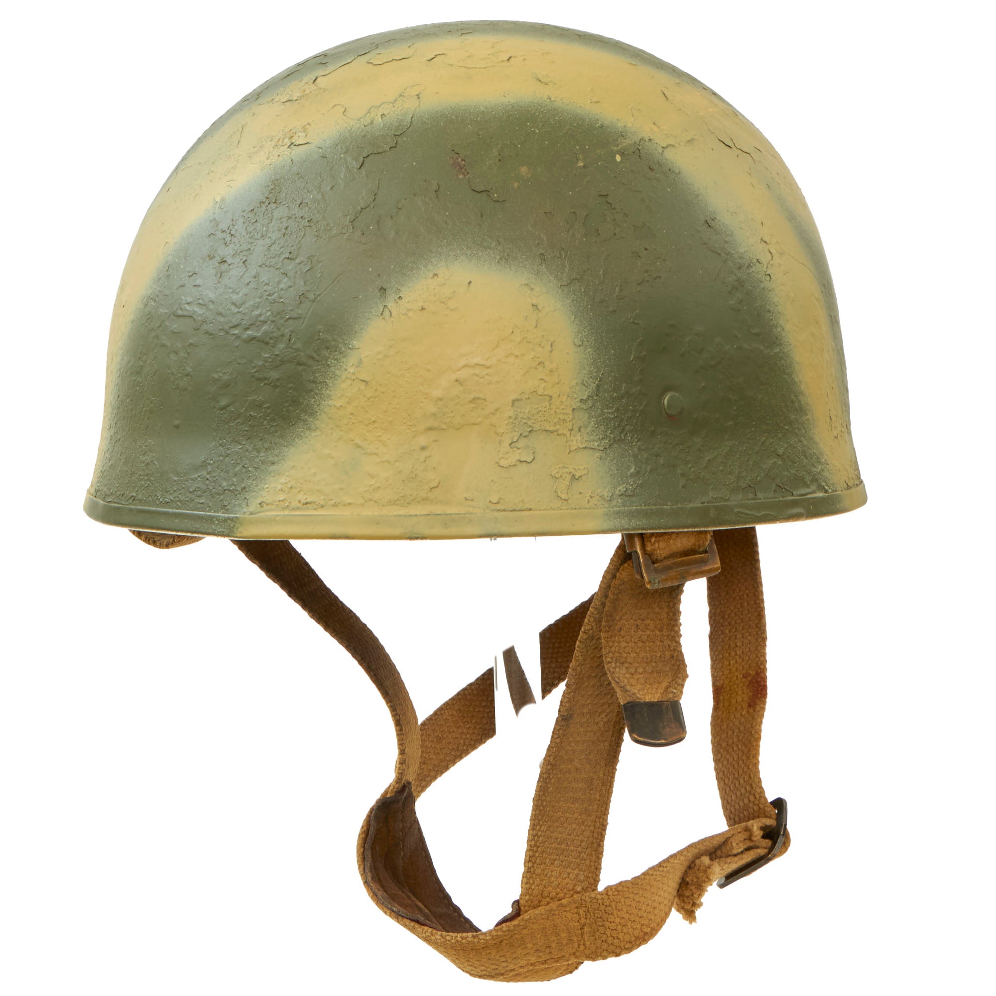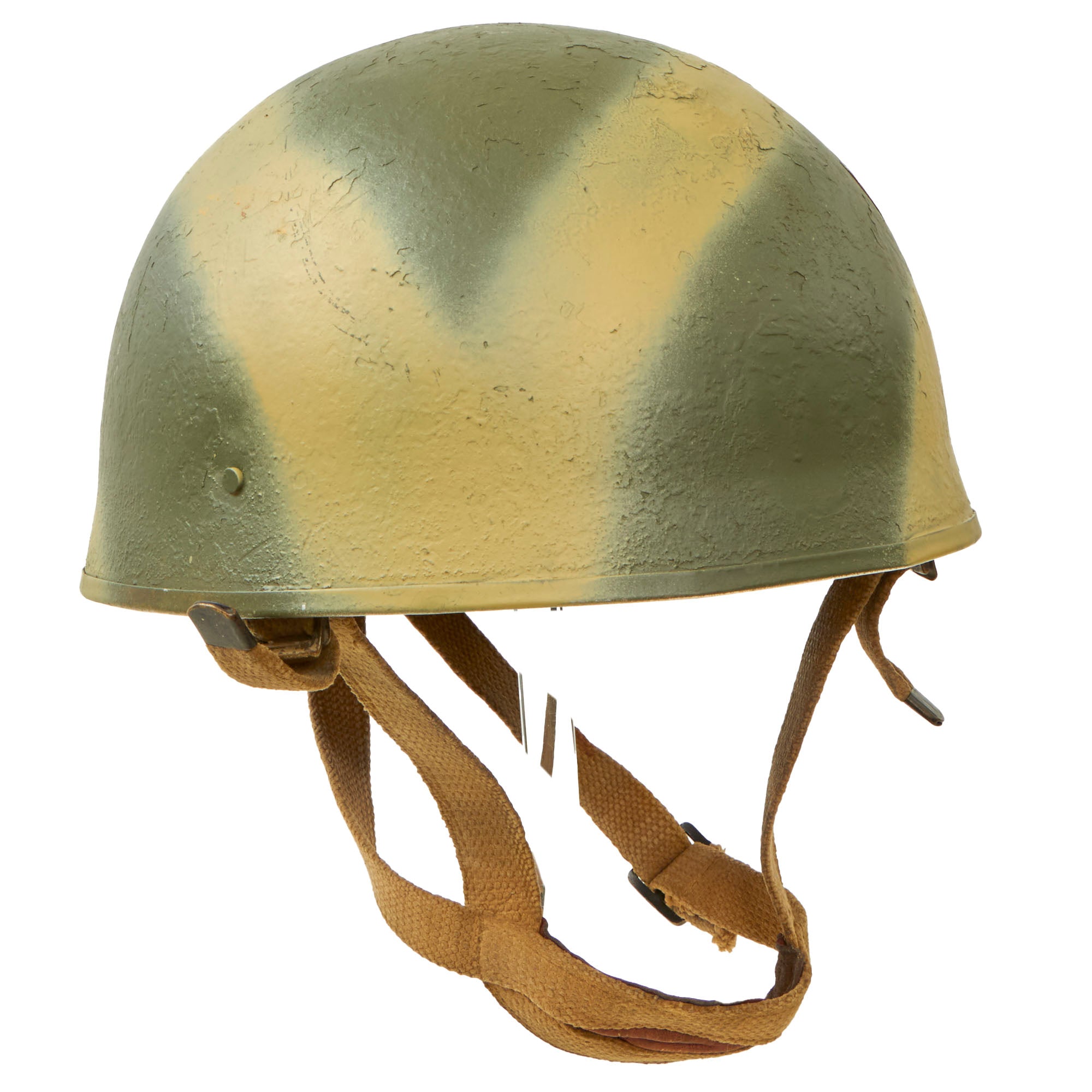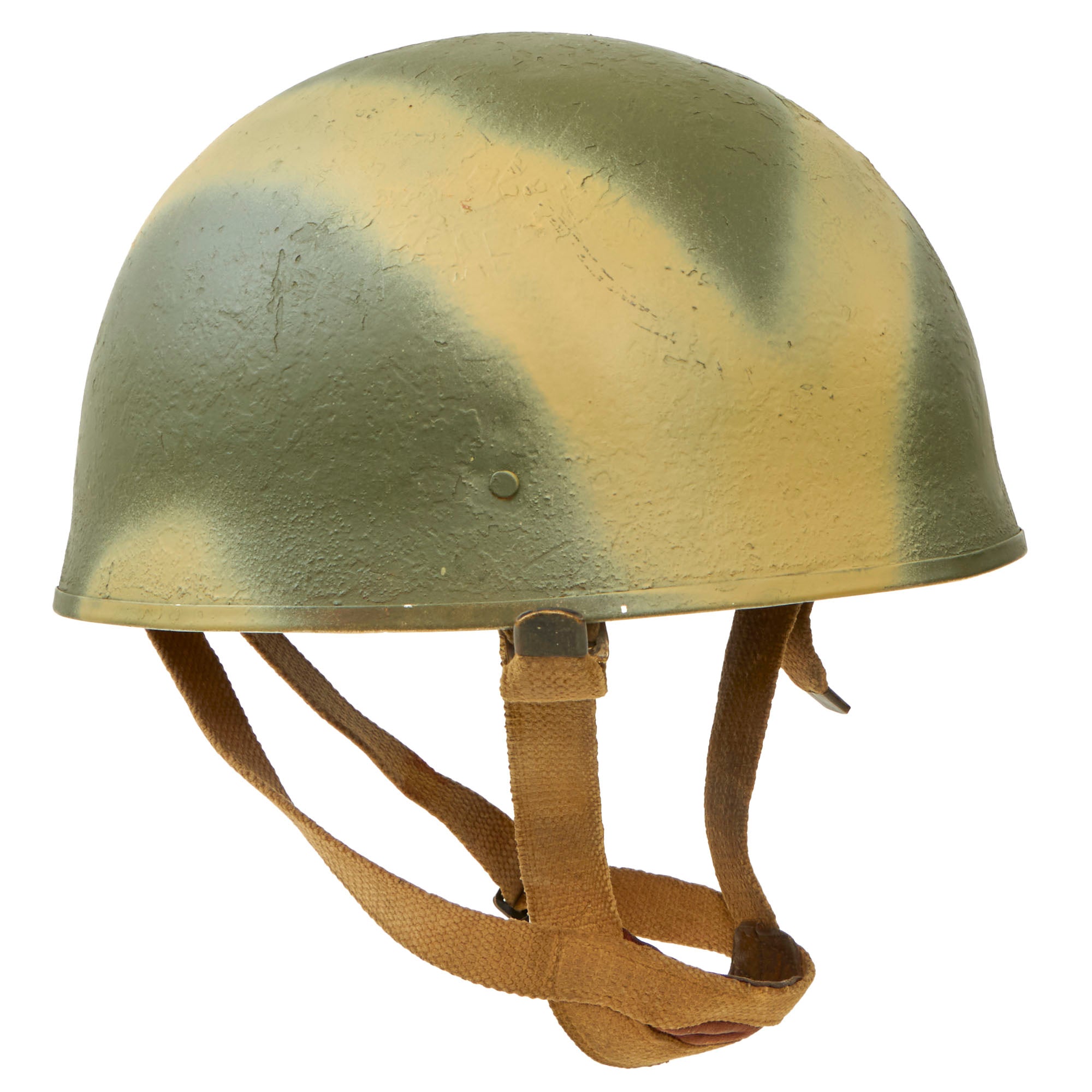 Original Item: Only One Available. This is a fantastic example of a 1950s Belgian made Paratrooper Helmet which was modeled after the British WWII paratrooper helmet. Often you encounter these helmets with the Belgian flag removed on the sides of the helmet, just like this one, to pass off as a British one.