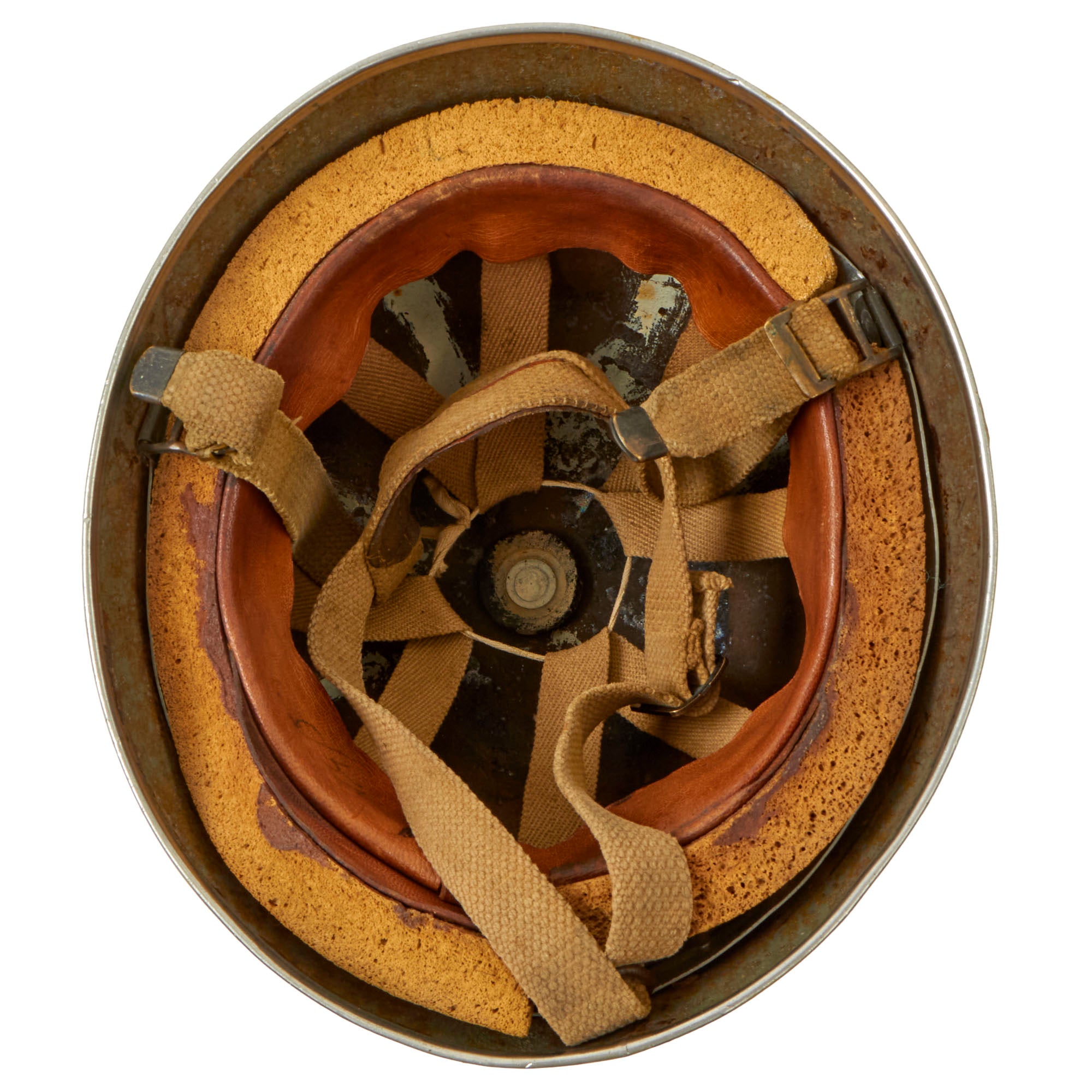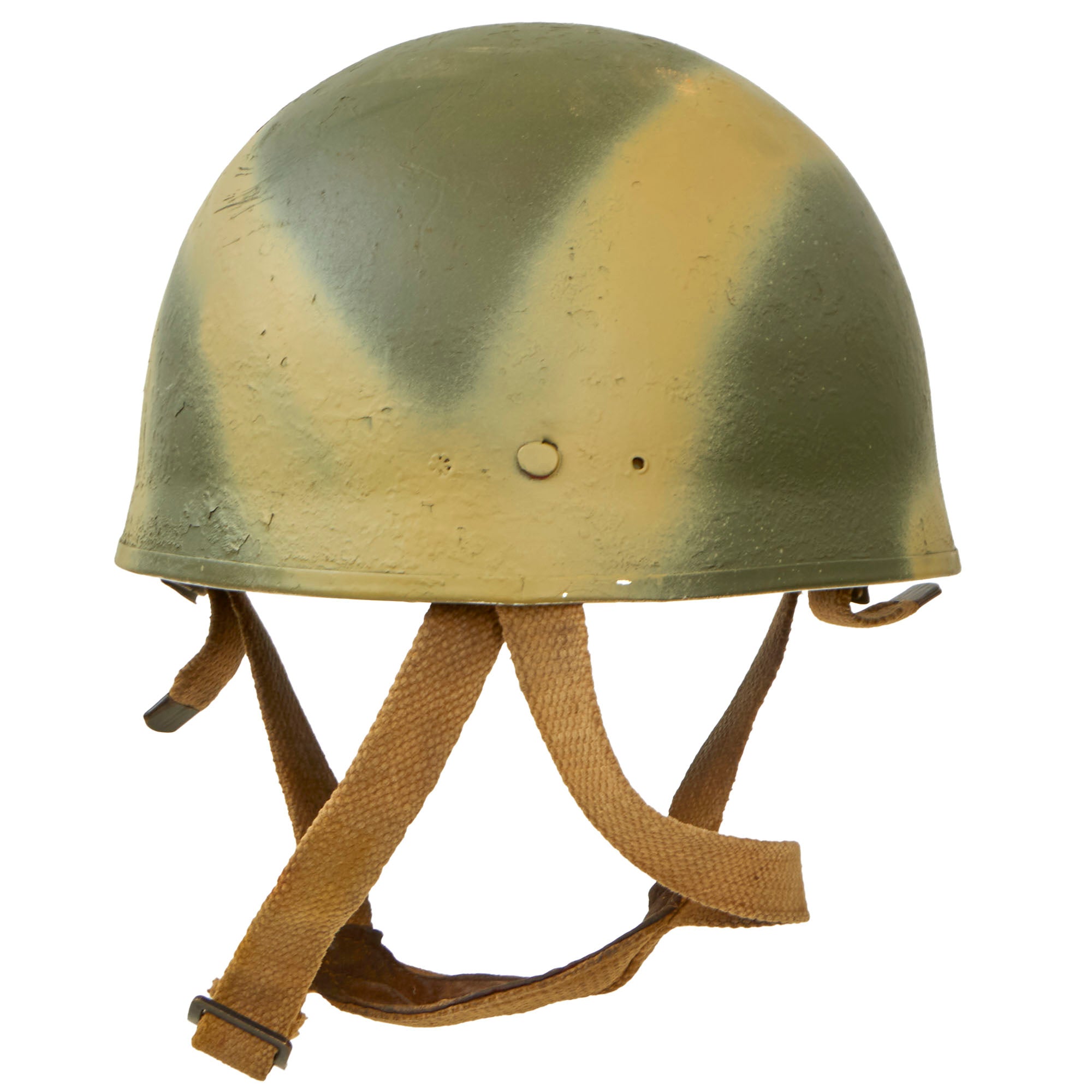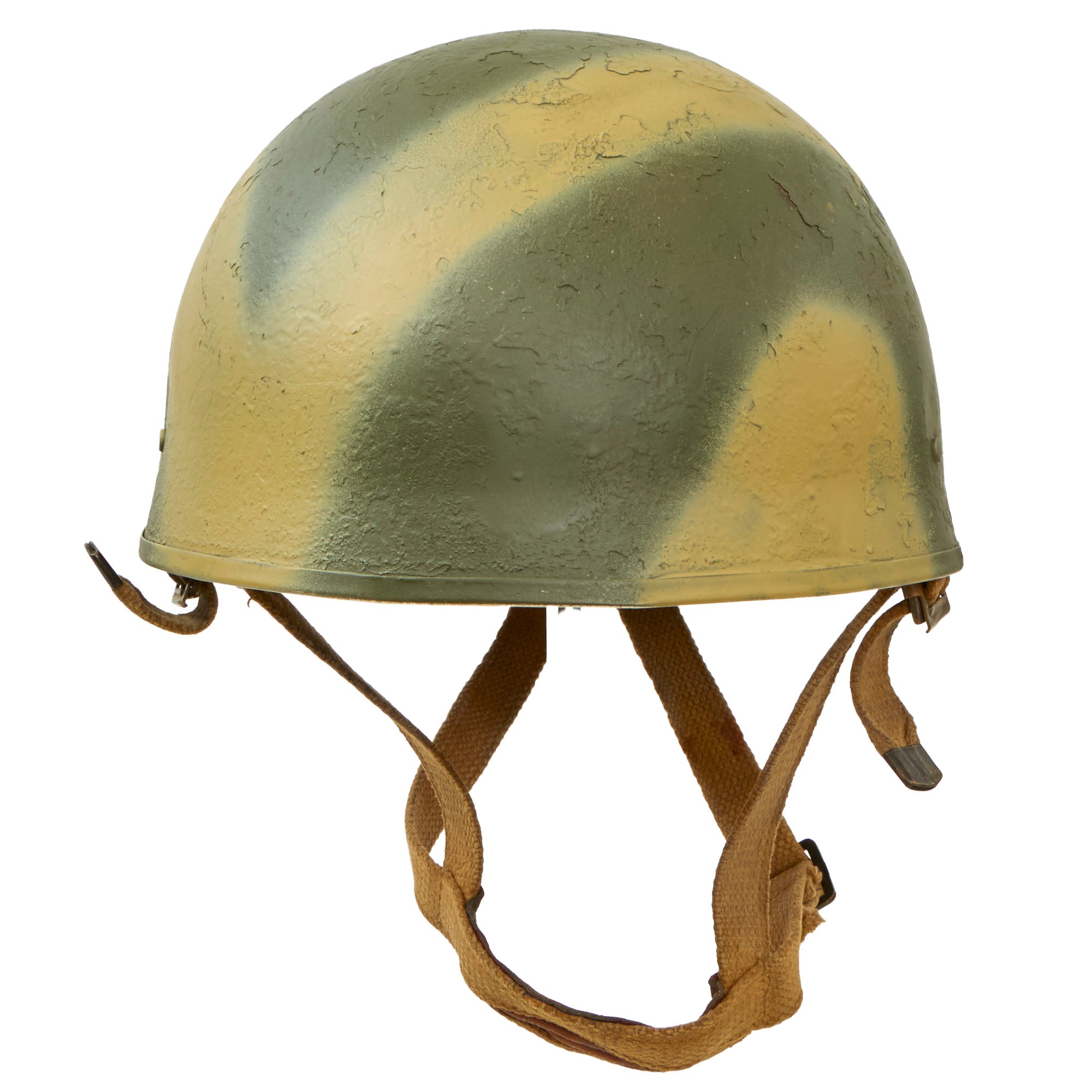 Original Item: Only One Available. This is a fantastic example of a 1950s Belgian made Paratrooper Helmet which was modeled after the British WWII paratrooper helmet. Often you encounter these helmets with the Belgian flag removed on the sides of the helmet, just like this one, to pass off as a British one.
