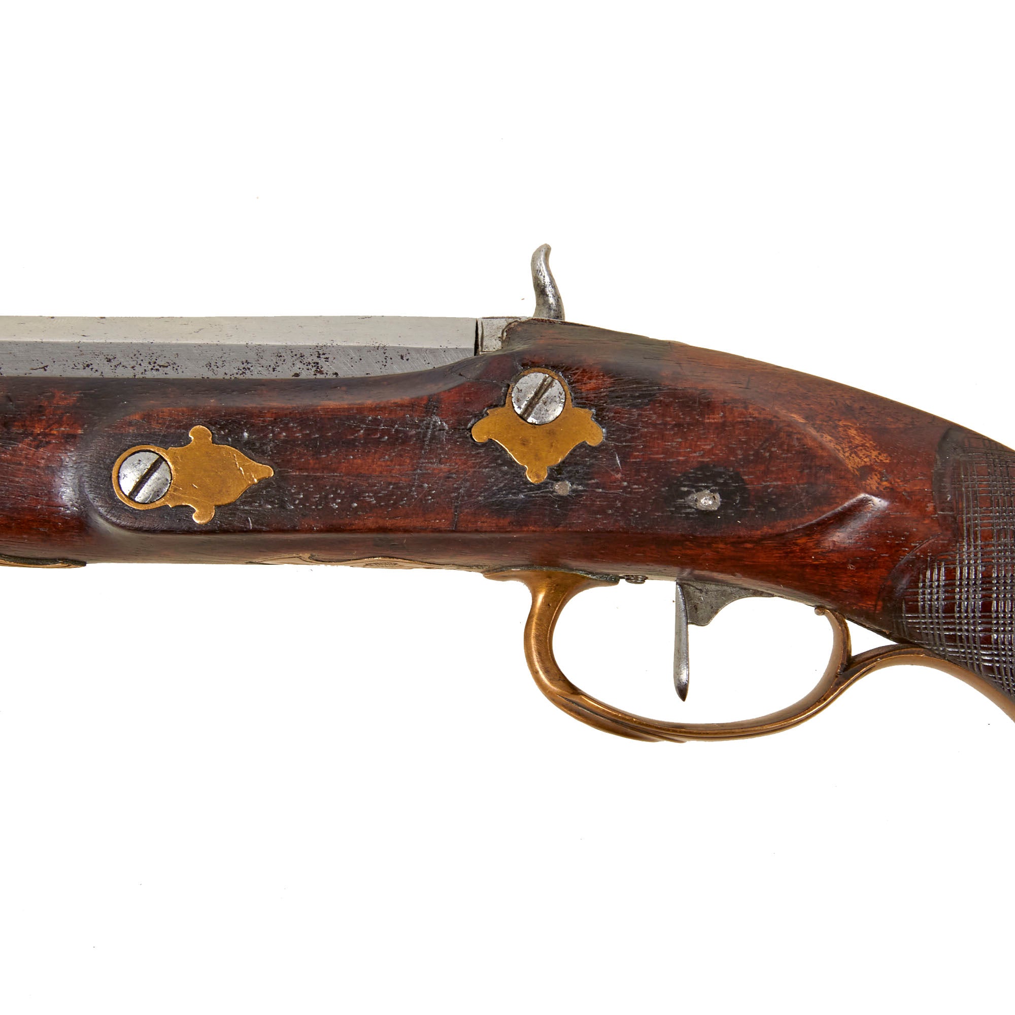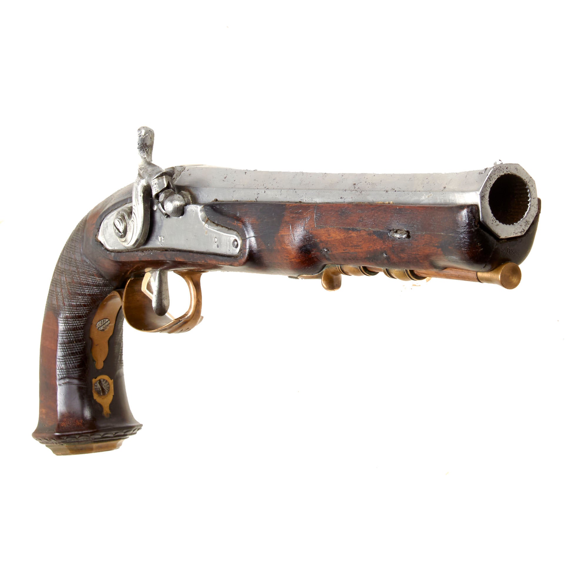 Original Item. Only One Available. This is a lovely Belgian-made Officer's Pistol, made very much in the high end French style of the day, known as the "Versailles" style. Designed by famed gunsmith Nicolas-Noël Boutet, this pattern pistols were very popular and extensively made for French Officers. This example was almost certainly made in Liège, Belgium, a gunmaking center even today, which had been under French and then Dutch control until the early 1830s. It has an octagonal 8 inch barrel with a lovely taper that narrows towards the middle, which has numerous fine rifling grooves inside. This was very typical for the style, and we have seen several examples with this same shape on the barrel, which is very attractive.
