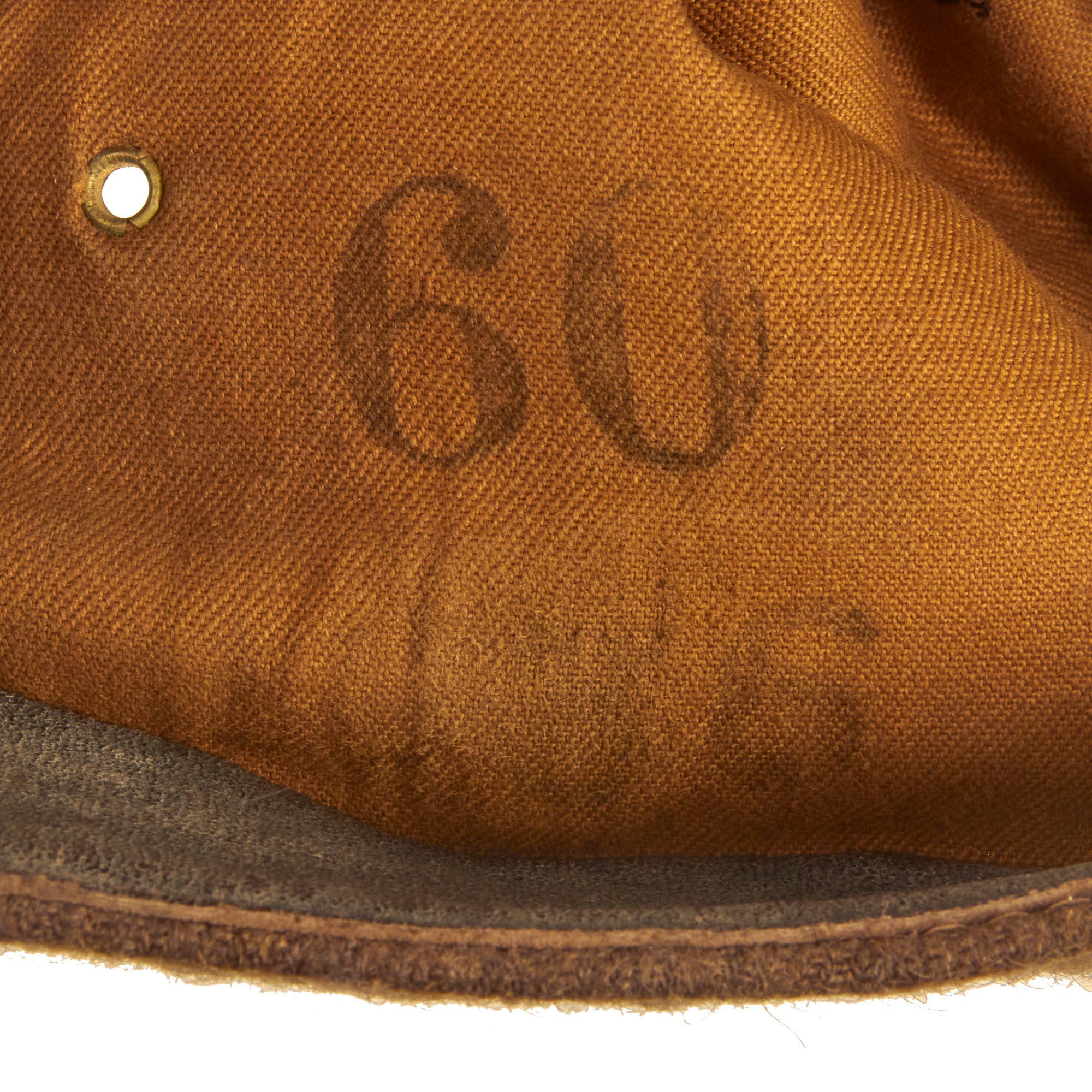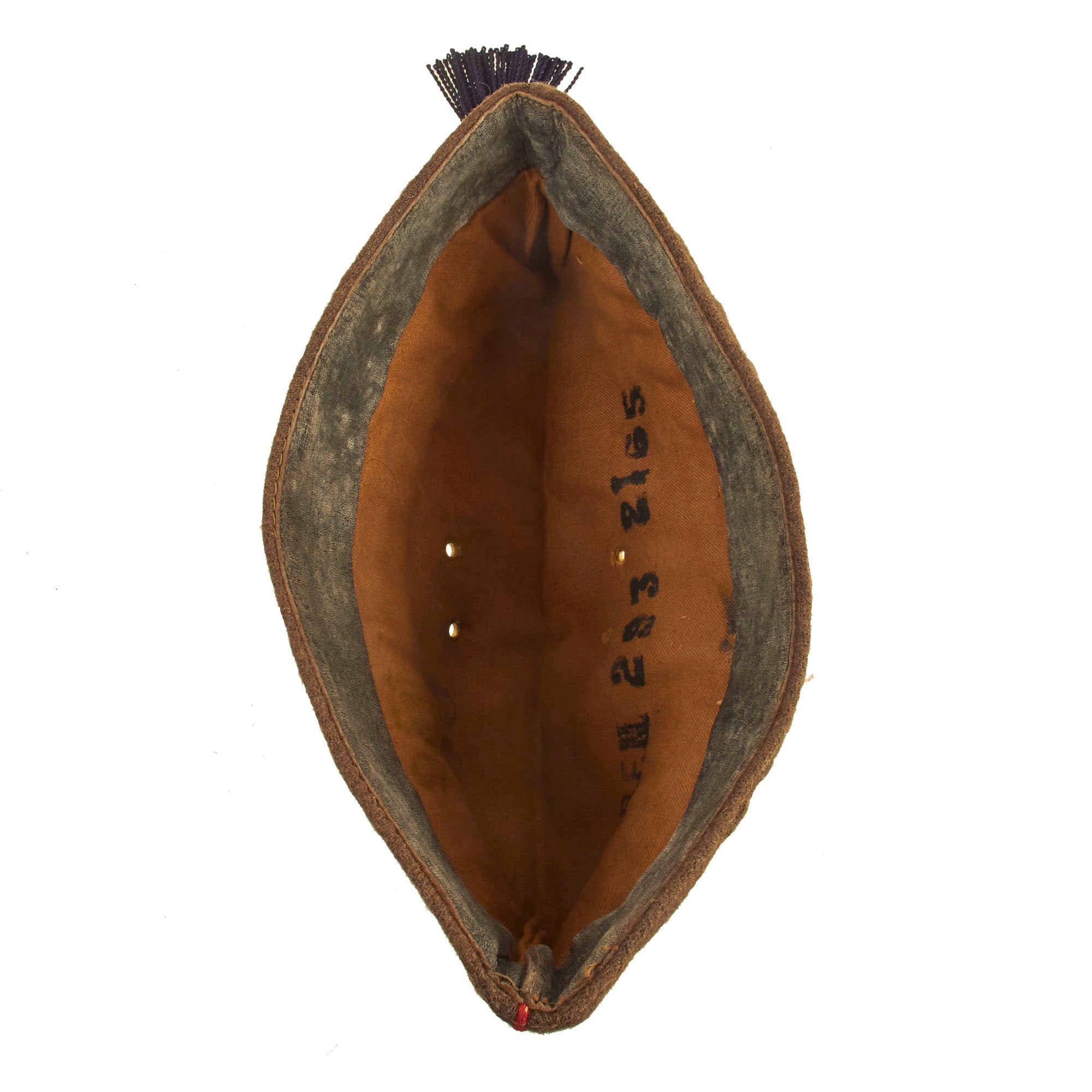 This forage cap is an excellent example of the Belgian M1916 forage cap which still retains the Divisional number on the front left side. The cap itself is in wonderful condition but does have scattered moth nips present in the wool body. The interior still retains the 1” wide leather sweatband which has cracking present in the finish but no extensive damage.
