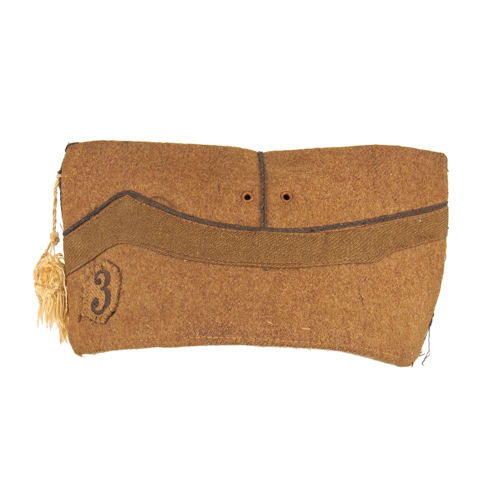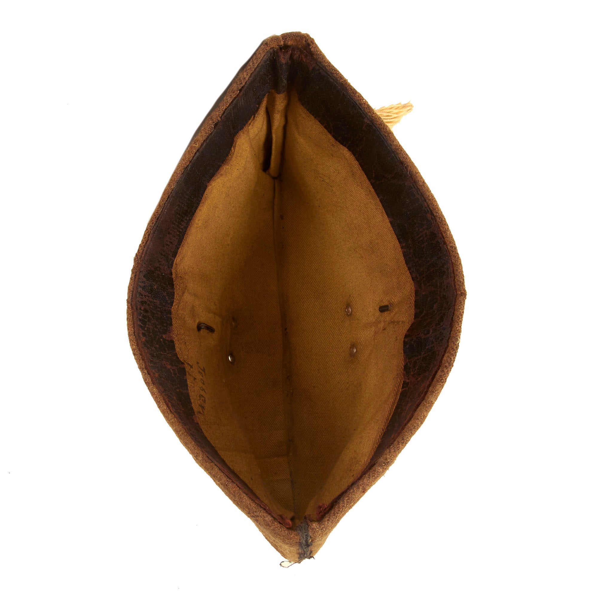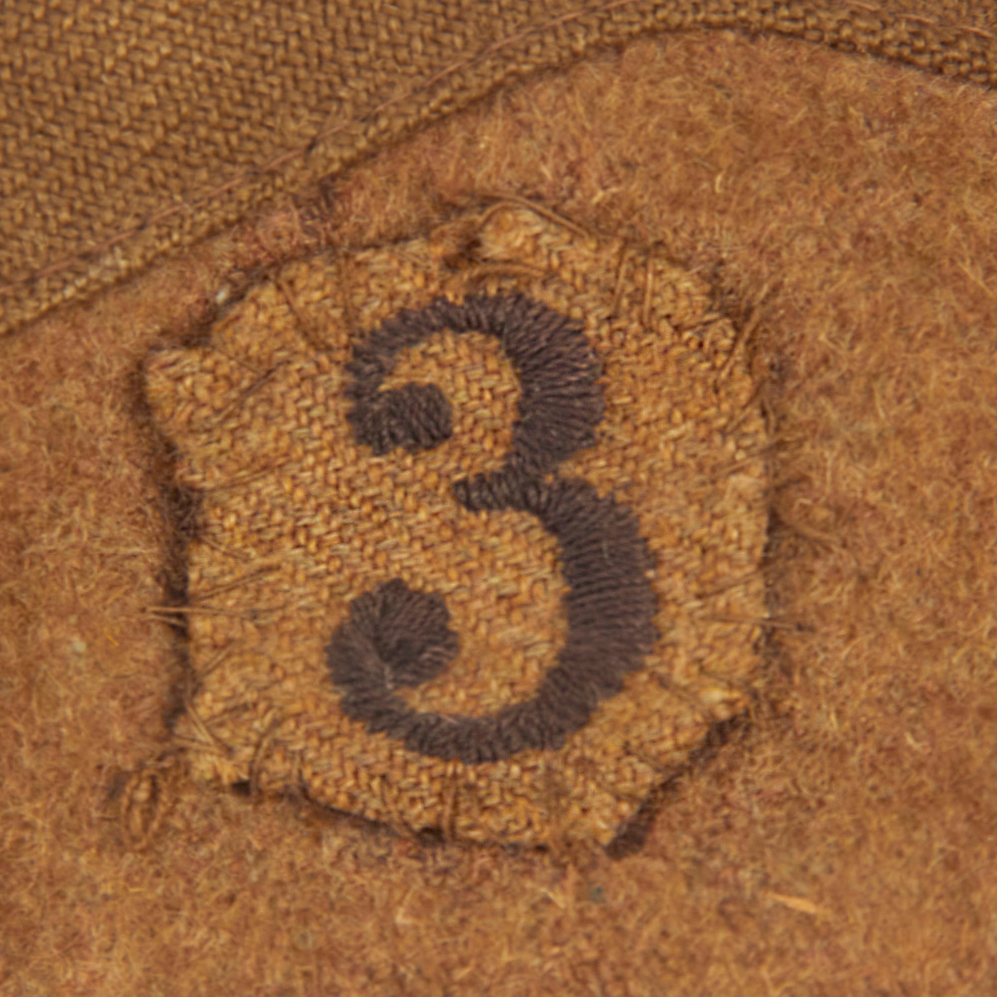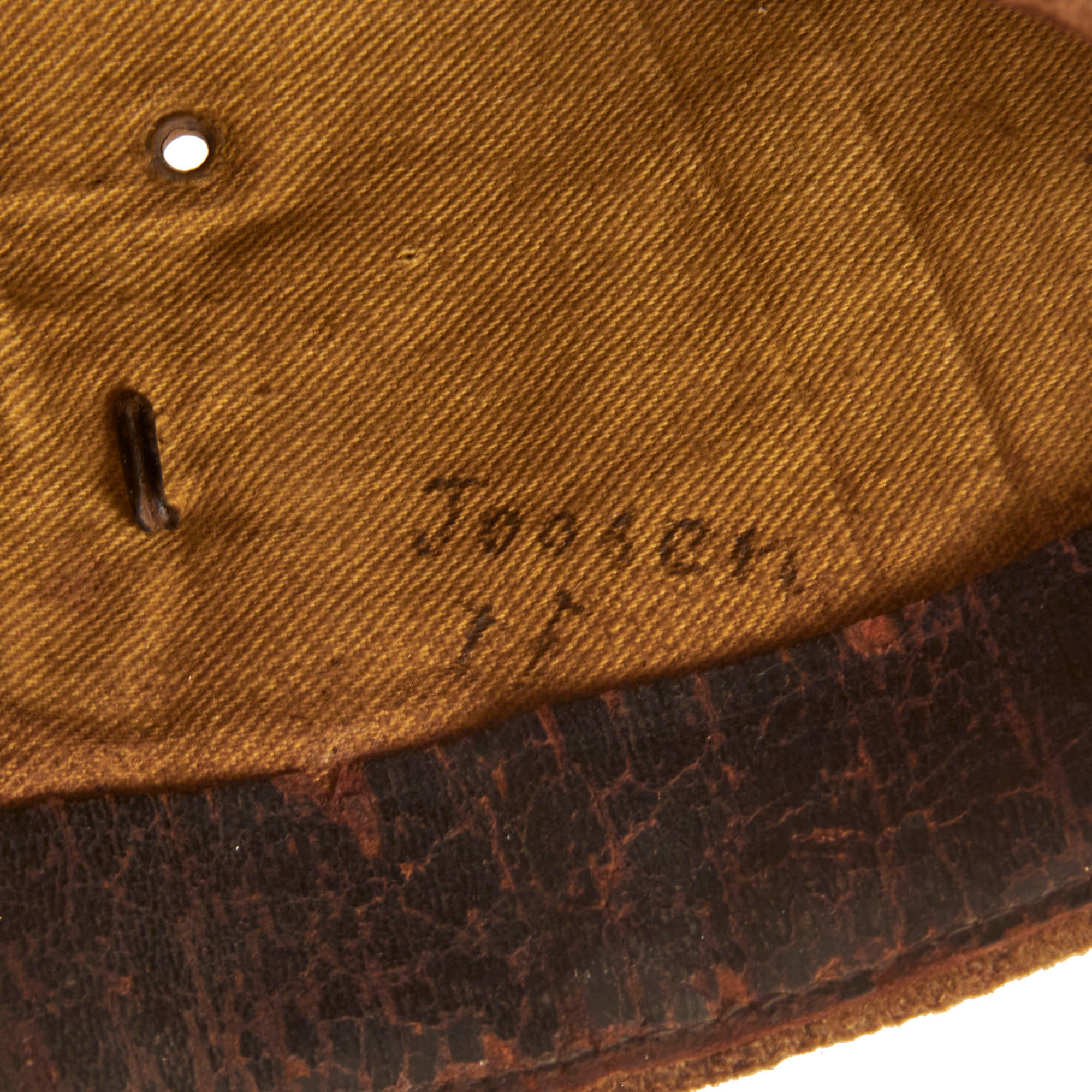 This forage cap is an excellent example of the Belgian M1916 forage cap which still retains the Divisional number on the front left side. The cap itself is in wonderful condition but does have scattered moth nips present in the wool body. The interior still retains the 1” wide leather sweatband which has cracking present in the finish but no extensive damage.