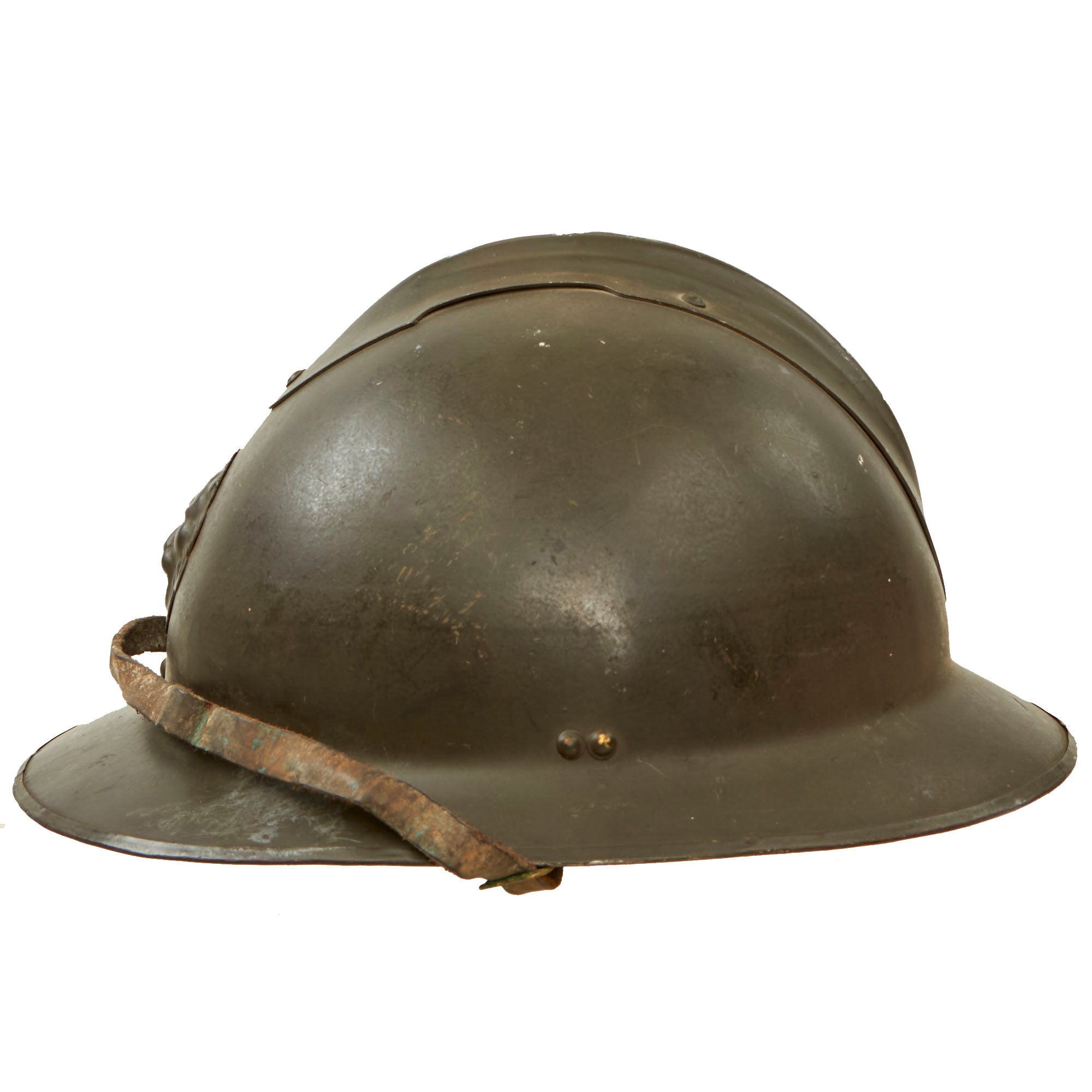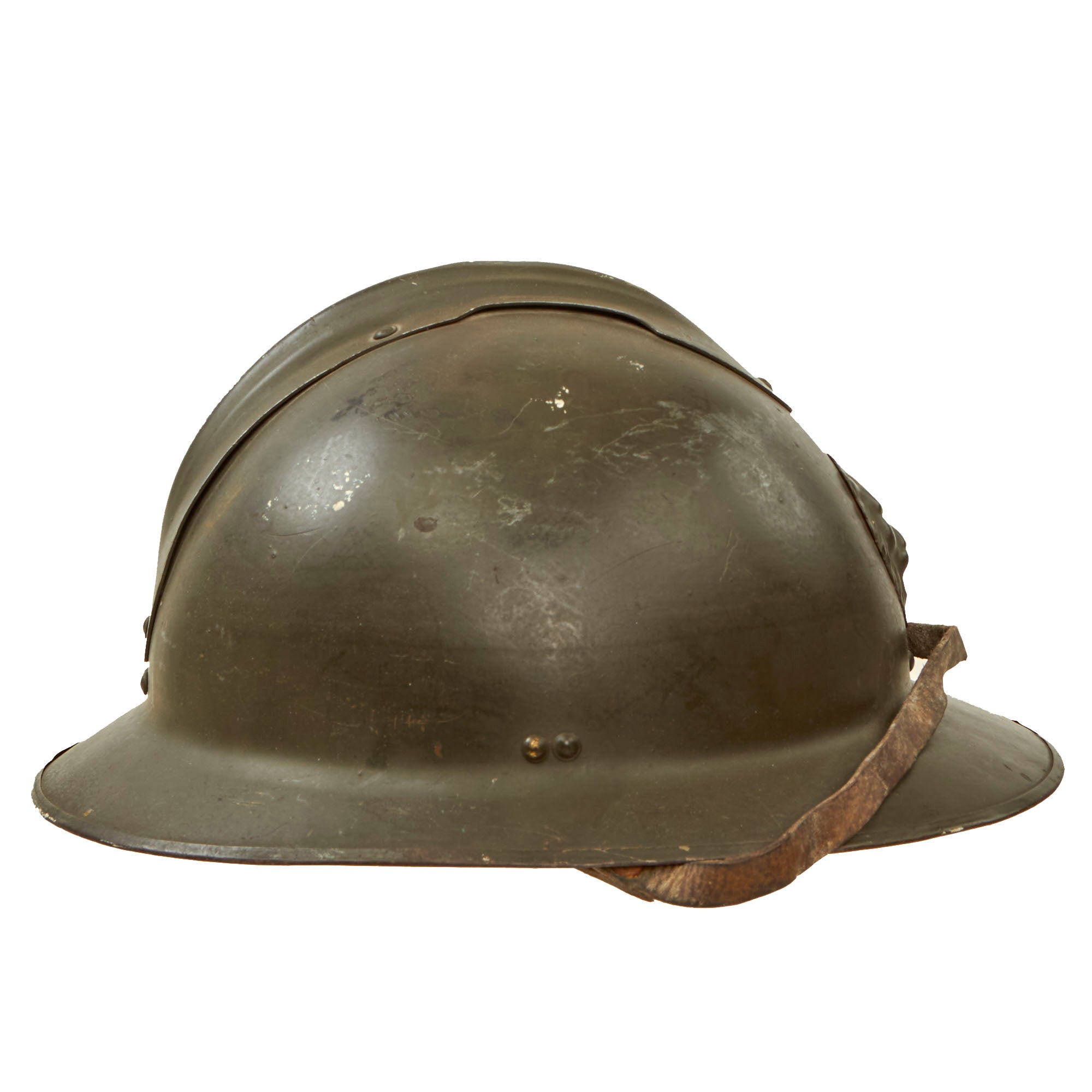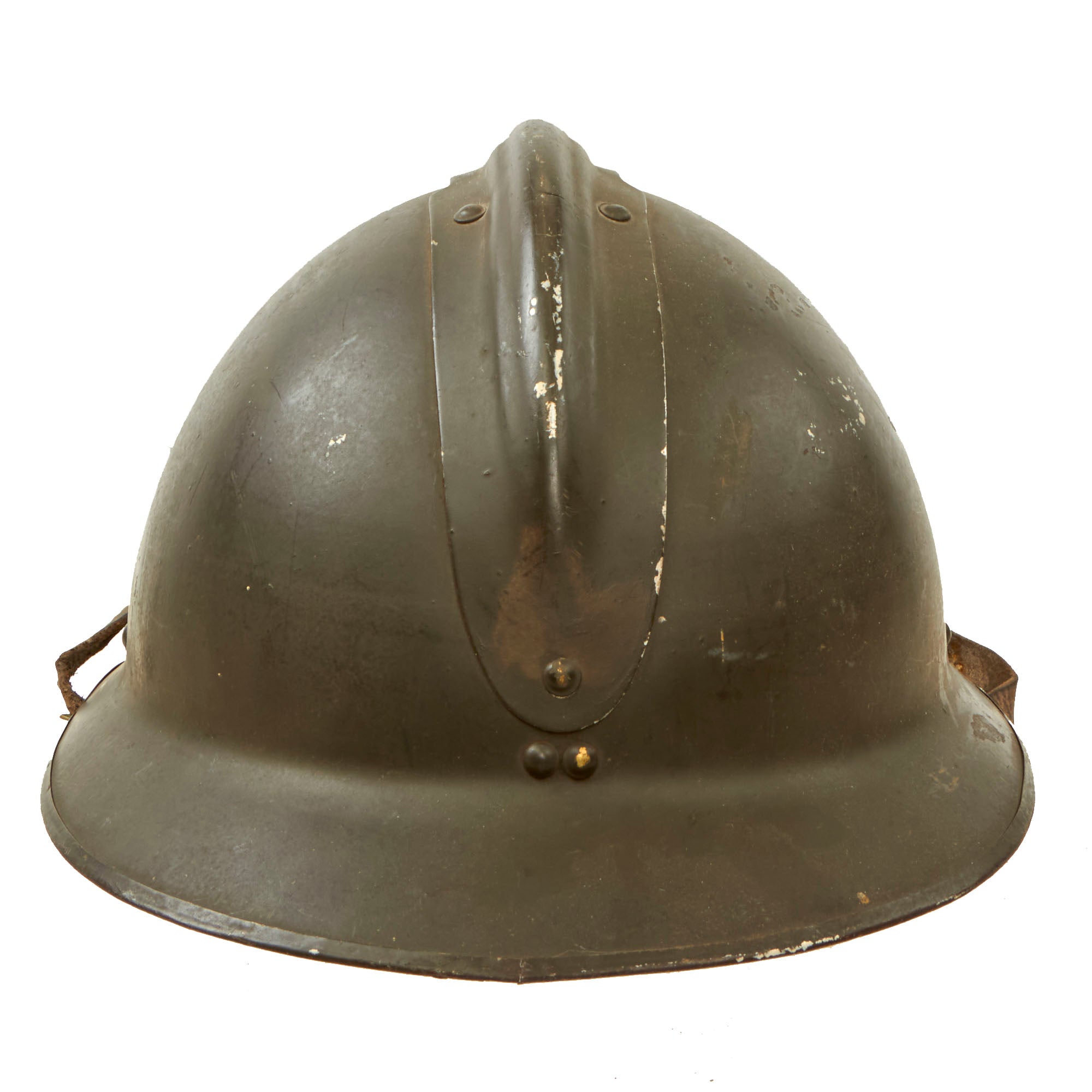 During the interwar period Belgium began to produce their own domestically made M26 Adrians and exported them around the globe. These helmets can be distinguished from their French counterparts, because they have a slightly different comb and a wider rim.