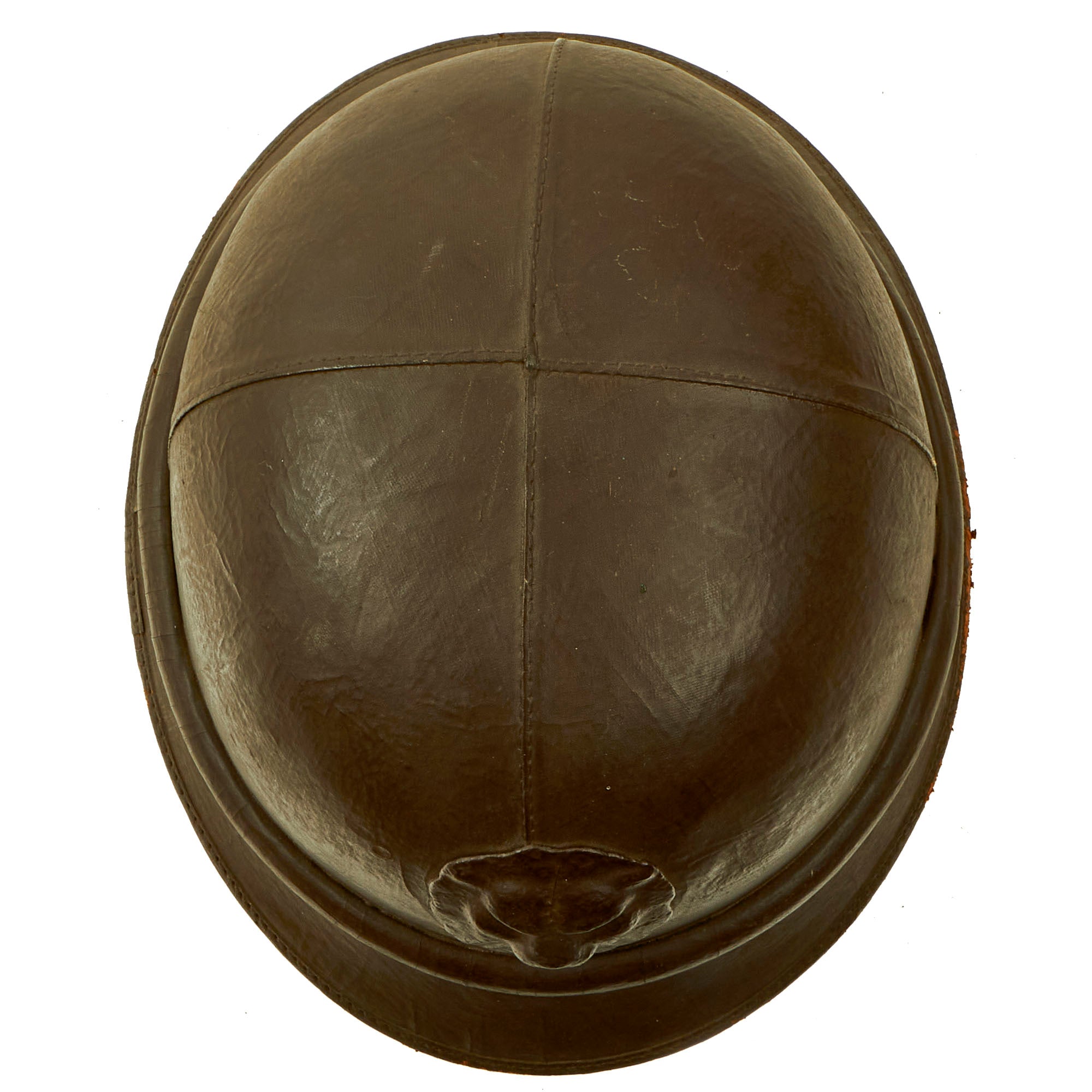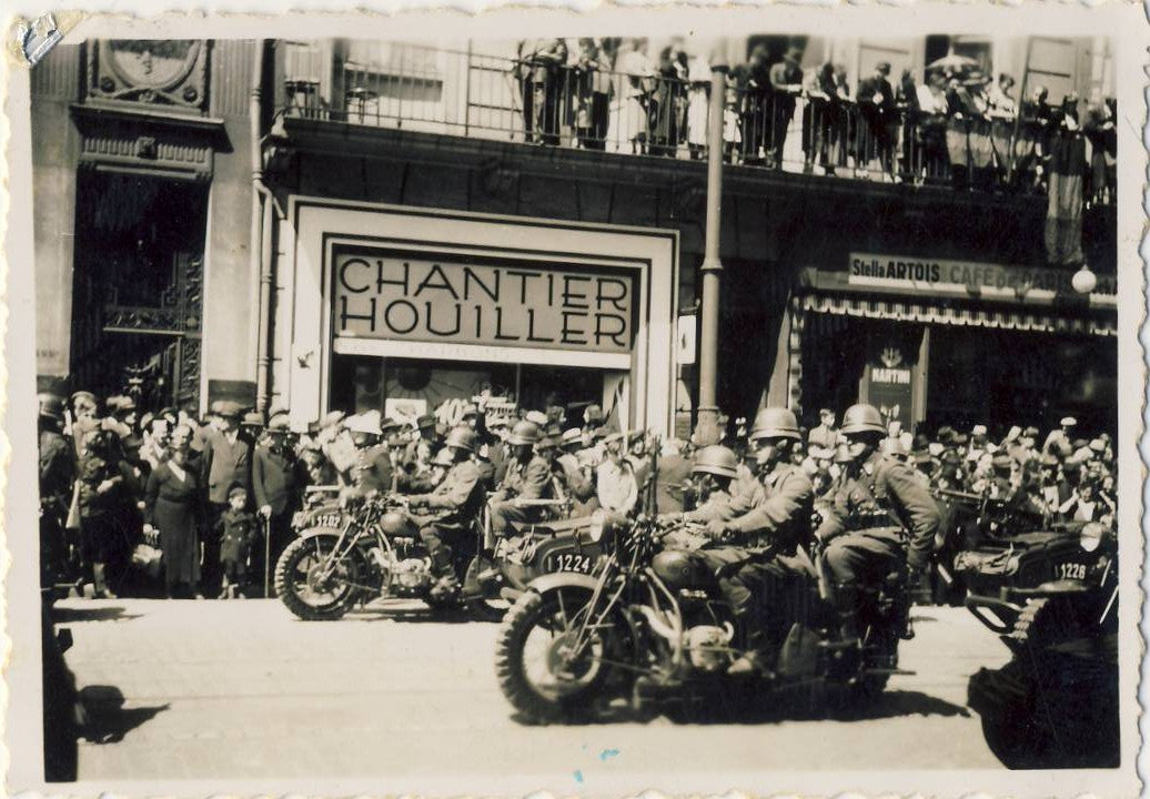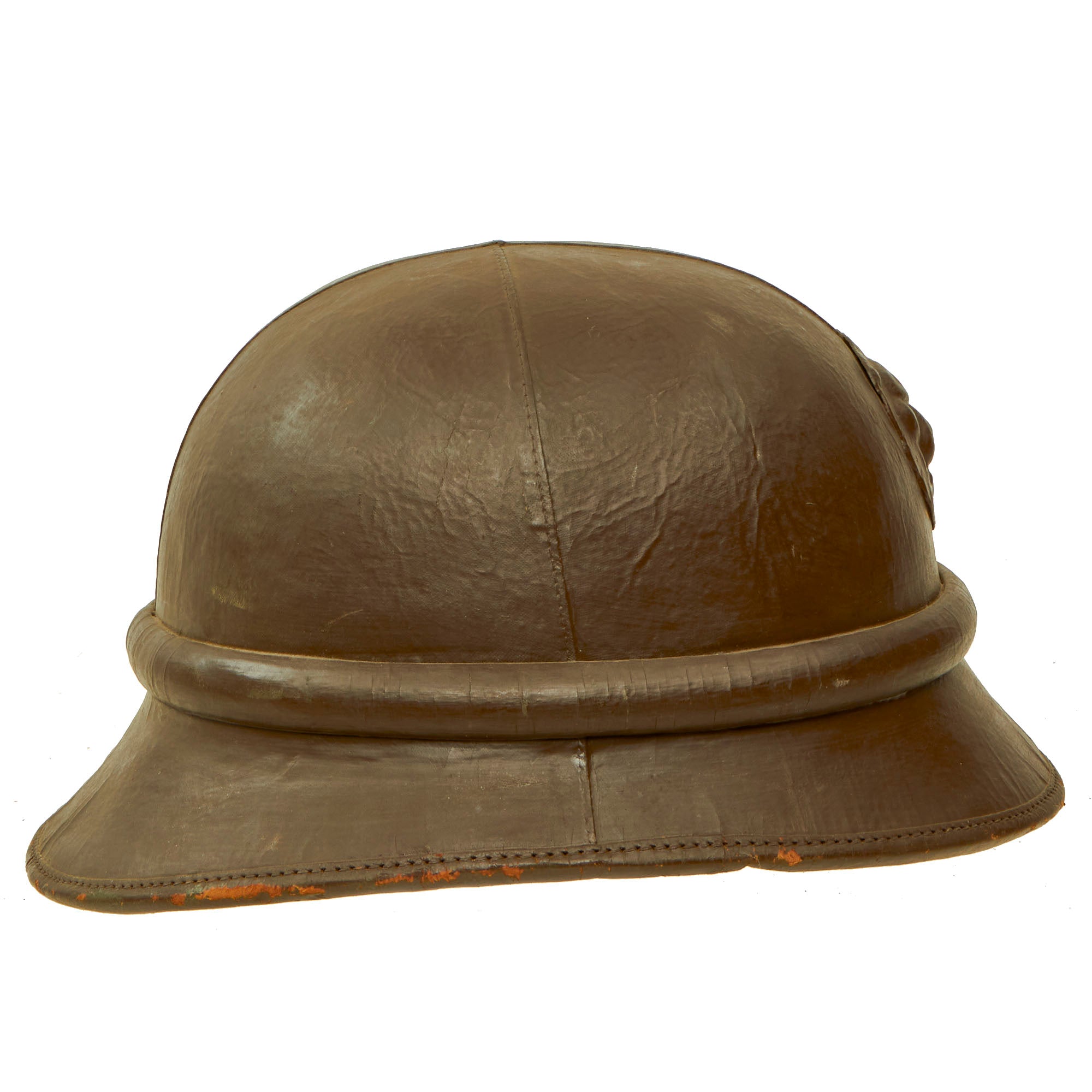 Original Item: Only One Available. Much like other countries during the WWII Period, Belgium developed a relatively lightweight helmet designed for wear by motorcycle dispatch riders, who had to move at a relatively high speed to deliver messages. Due to the lack of wind production that the motorcycle provided, this protection needed to be built into the liner of the helmet, in this case the leather protector for the ears and neck. This was especially important during the colder months. There are also ear cups facing rearward, which provided wind protection while still allowing the rider to hear. We have found period photographs online of these helmets in use, apparently during a parade, which are shown for historical purposes, and are not included.