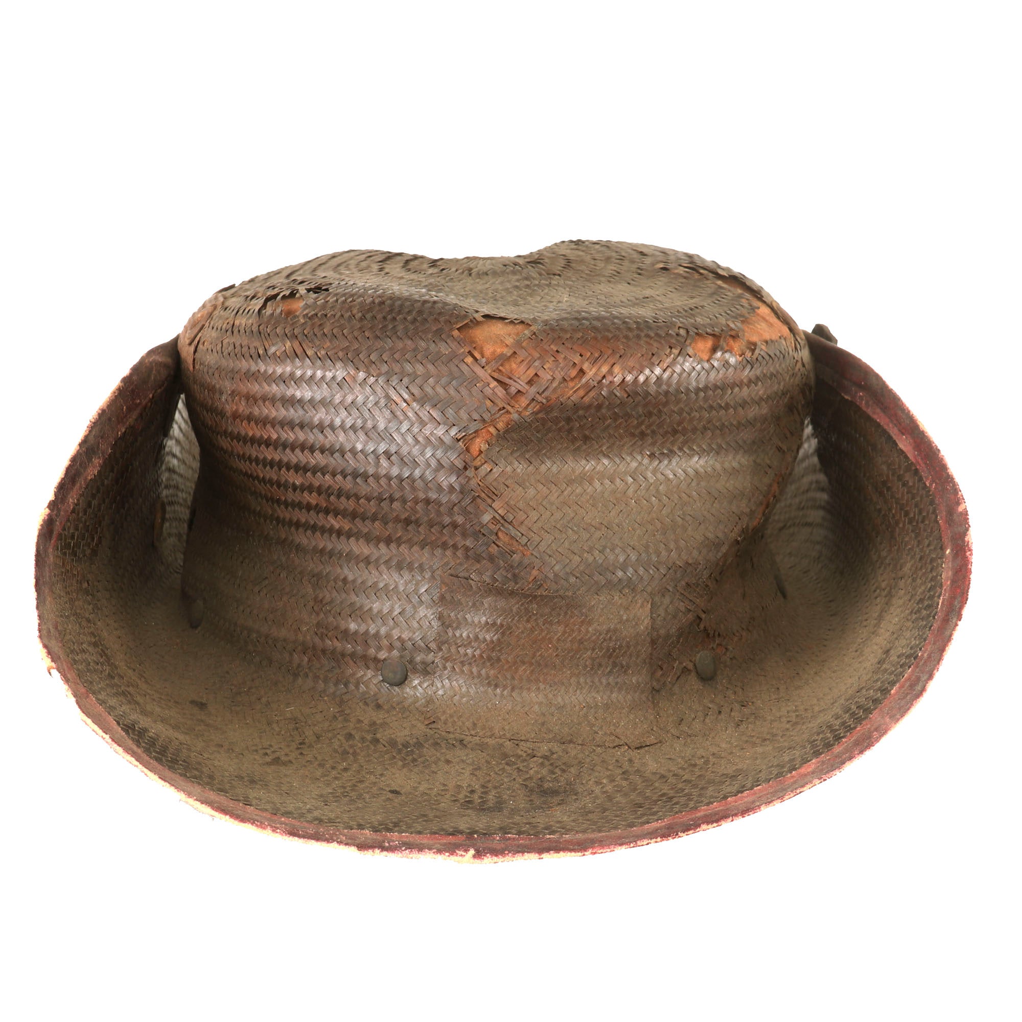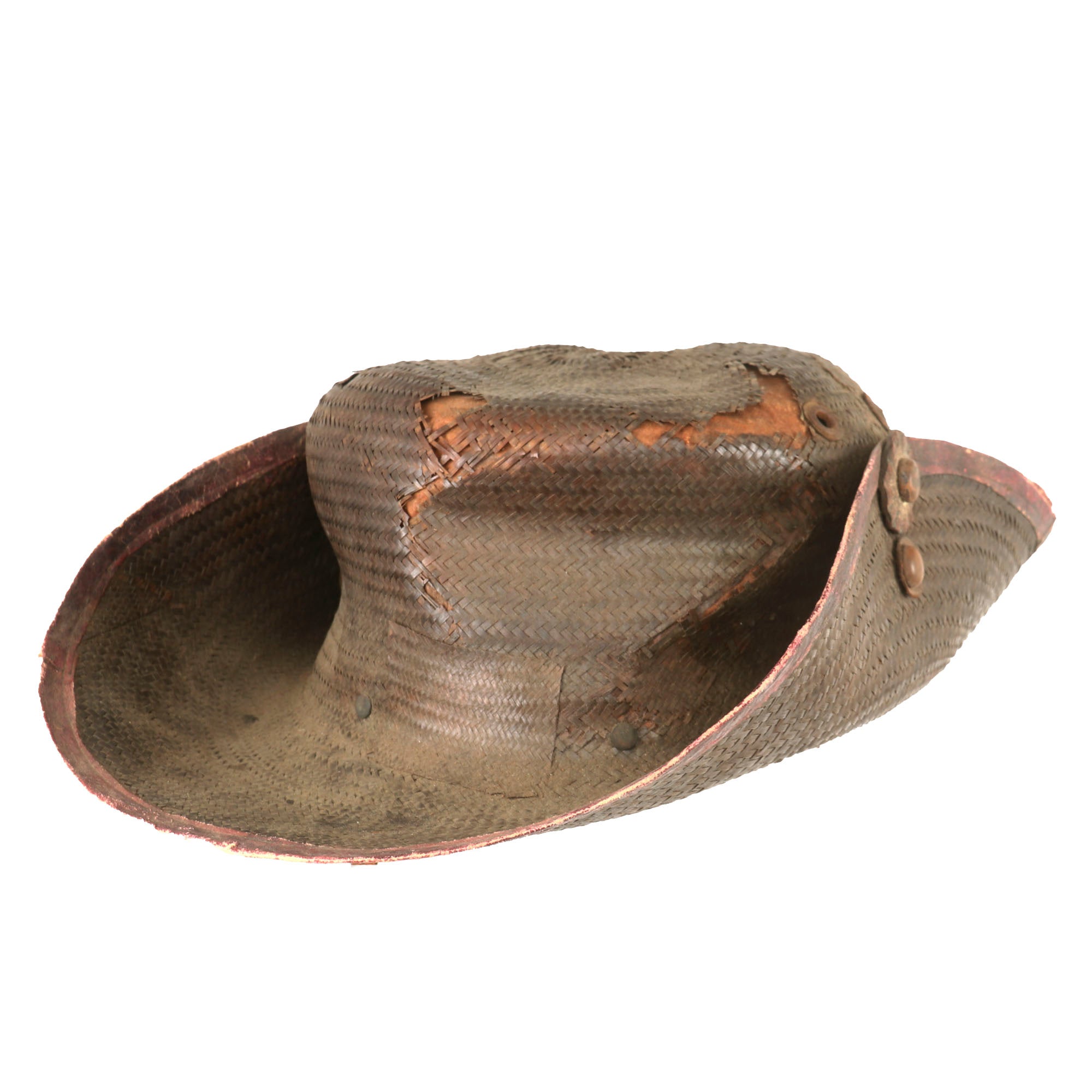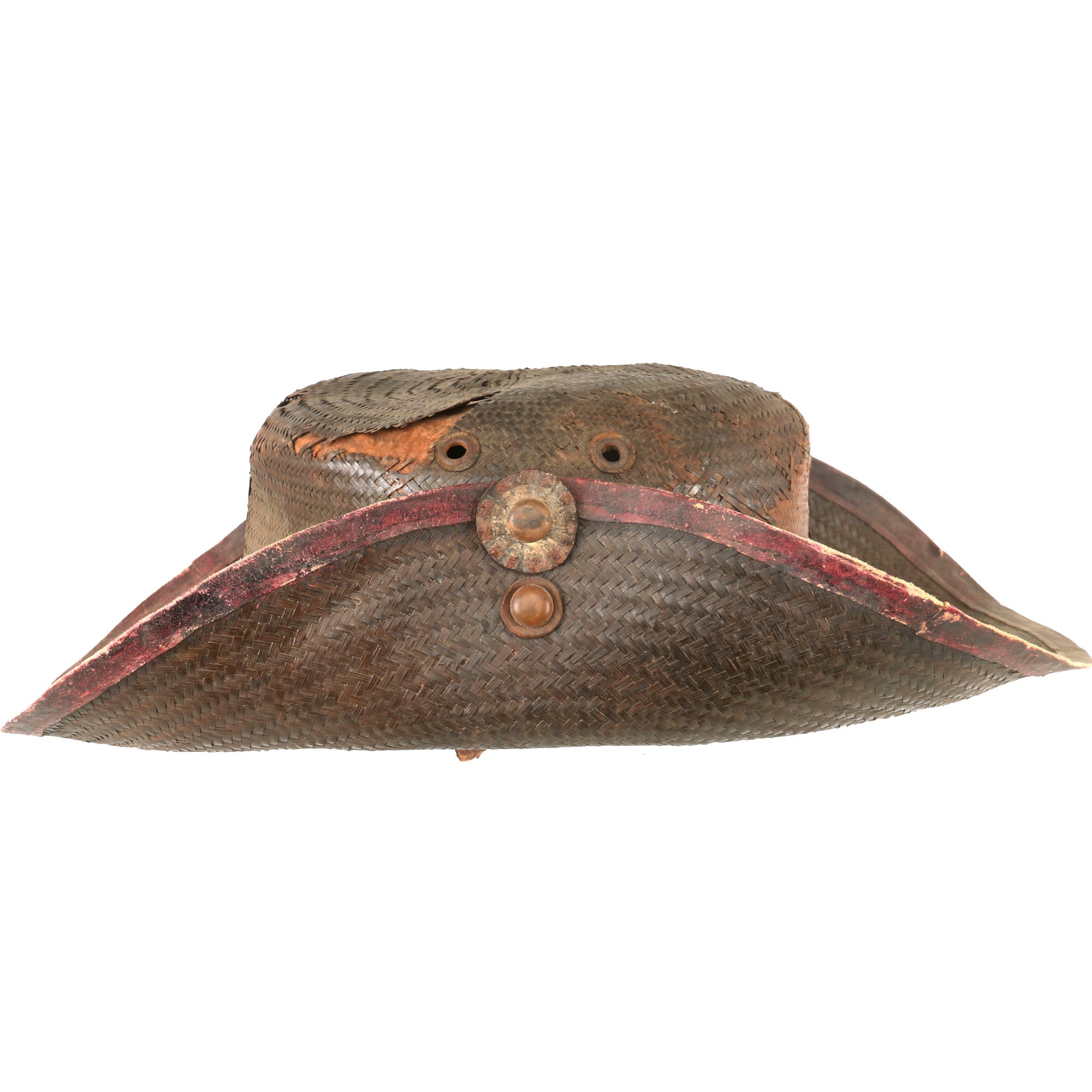 Original Item. Only One Available. This is an incredibly rare piece of headgear, the first of its kind we have ever seen, and likely the last, an Afrikaans Boer hat as worn by Boer Kommandos during the Boer Wars. The hat, constructed of straw, is in rough service-worn condition, with both original cockades still intact on the sides. There are areas of heavy material loss, with a period patch to the front. There is no trace of these hats online, with only photographs & paintings of Boers wearing them.