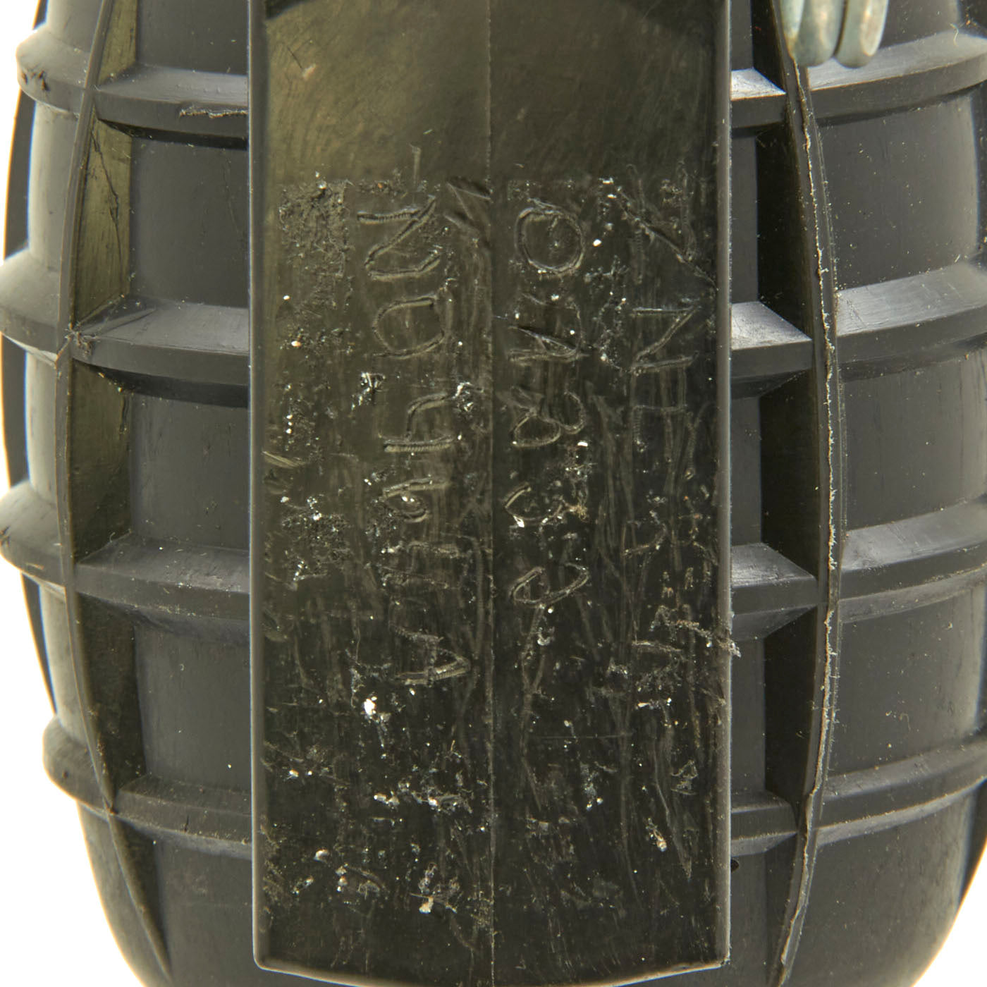 Original Item: Only One Available. Totally inert and demilitarized according to BATF guidelines with hollow body and inert fuse. This grenade cannot be converted to an explosive devise and is not available for export.