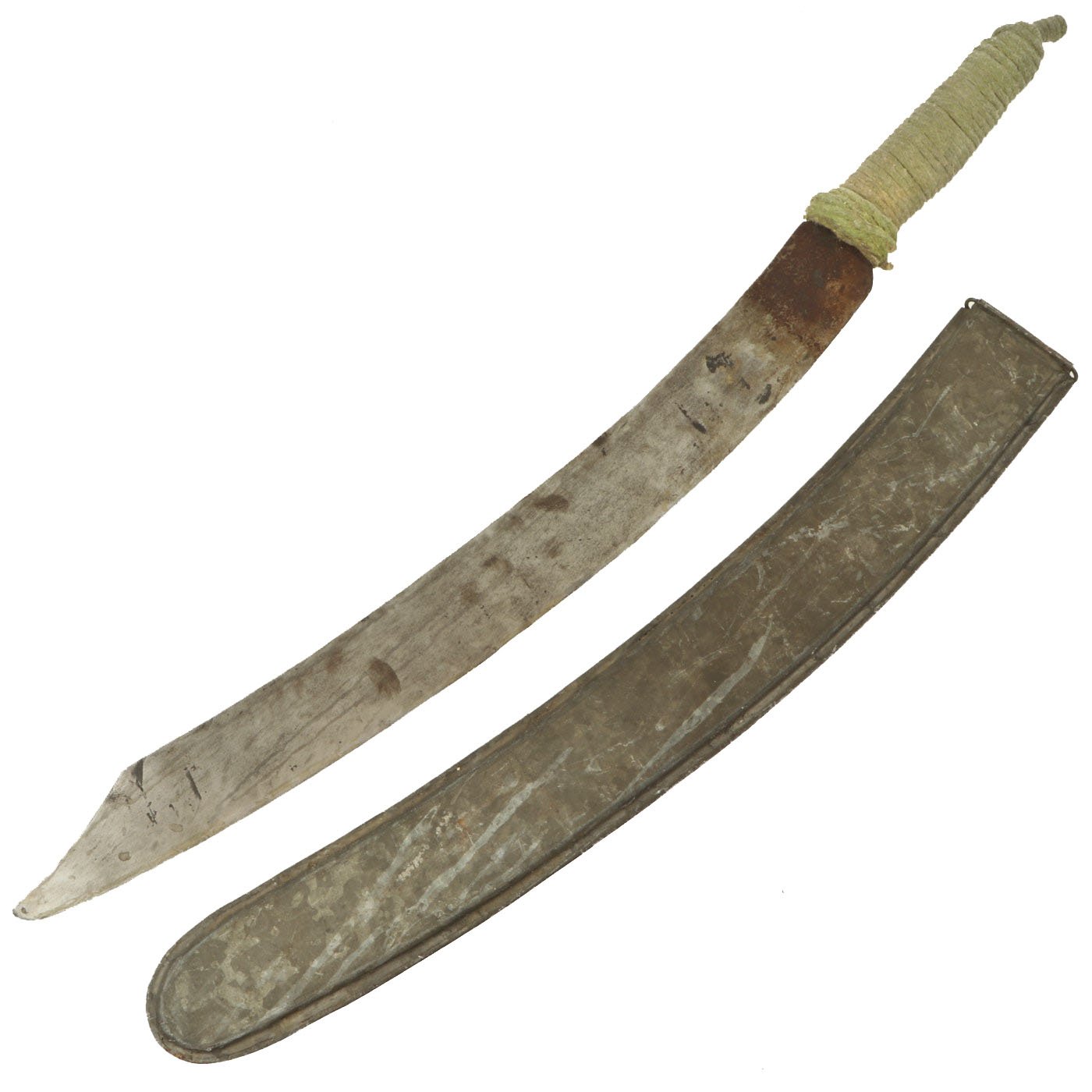 The galvanized steel scabbard has the following on an old paper tag attached to it: