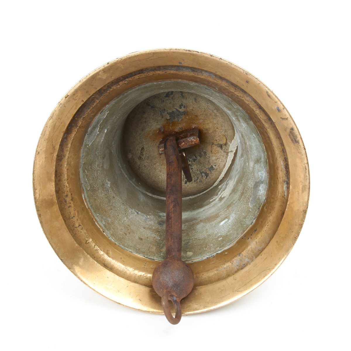 Original Item: Only One Available. Not our typical line of country, however, included in an English Maritime Collection that we purchased was this really fascinating brass ship's bell. Measuring 10 inches across at the mouth it stands 11 inches tall including the hanging mount. It is very heavy, just manageable with one hand, if you're quick!