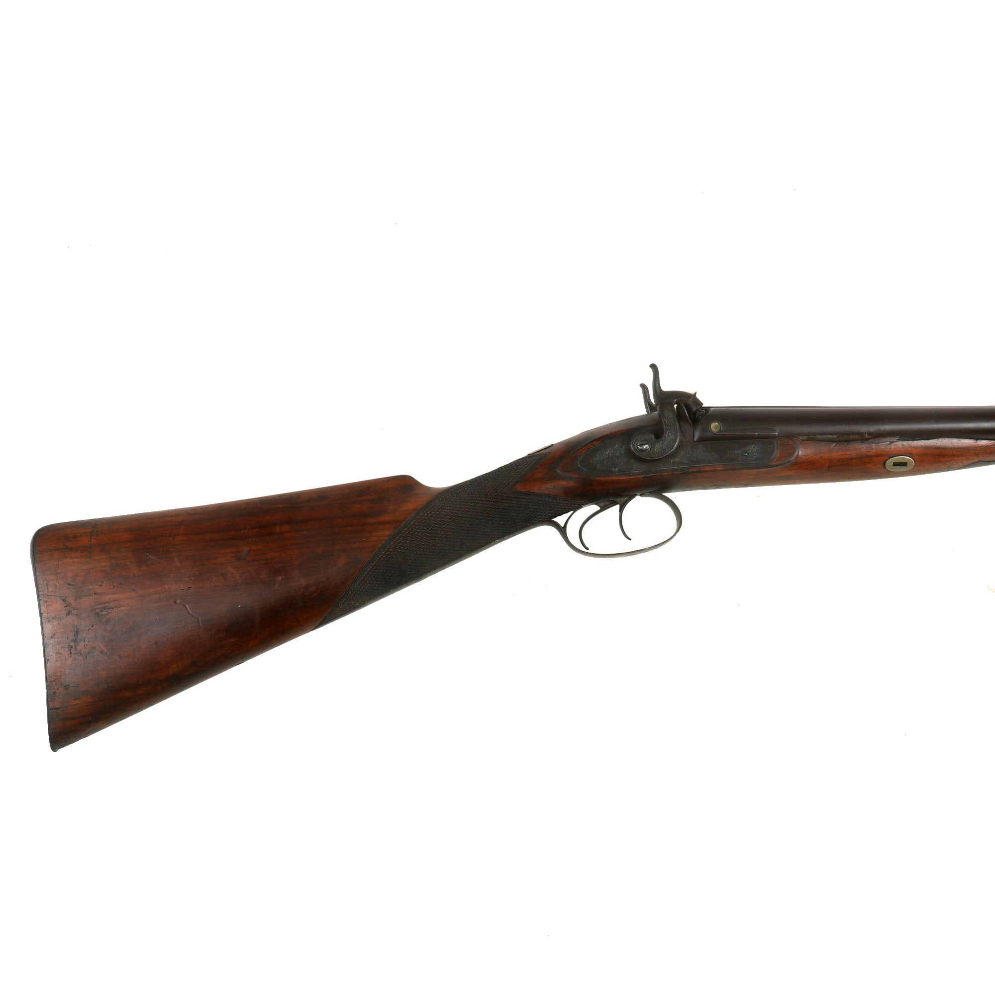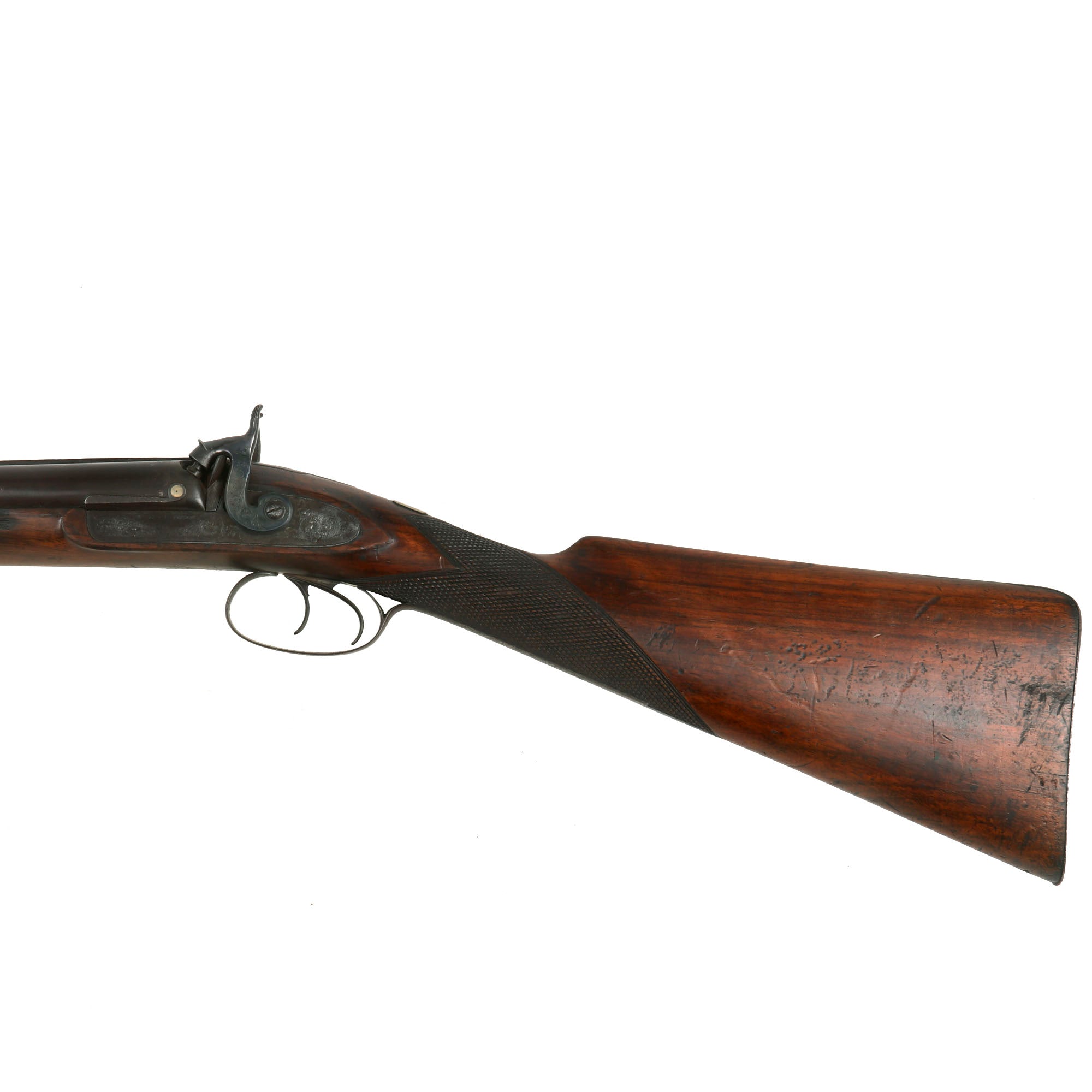 Original Item: Only One Available. Here we have a typical British-made Double Barreled Percussion shotgun, possibly intended for the large U.S. import market. It is marked on both lock plates with W RICHARDS, for Westley Richards of Birmingham England, who took out his patents for the percussion system in 1821. His full name was William Westley Richards, and he ran a BIRMINGHAM factory that became a national Institution before the end of the Victorian Era. The company Westley Richards still exists to this day as a high end outfitter of bespoke high end hunting gear, including shotguns and rifles.