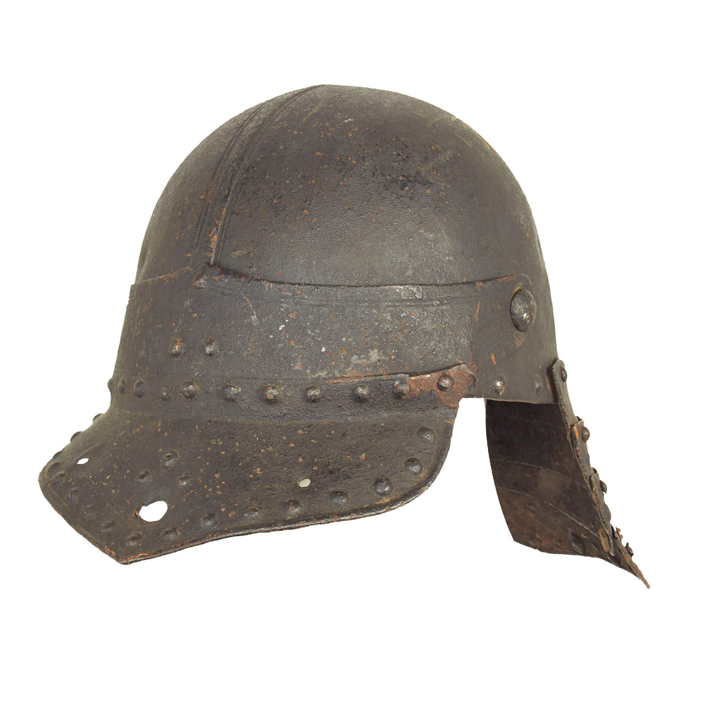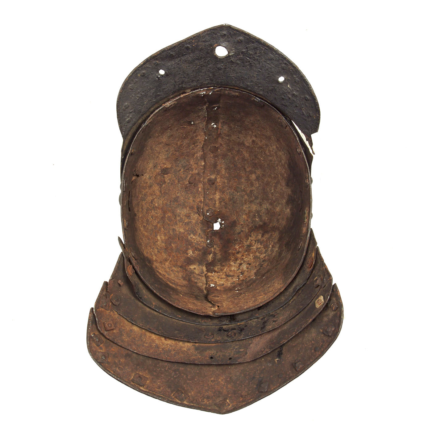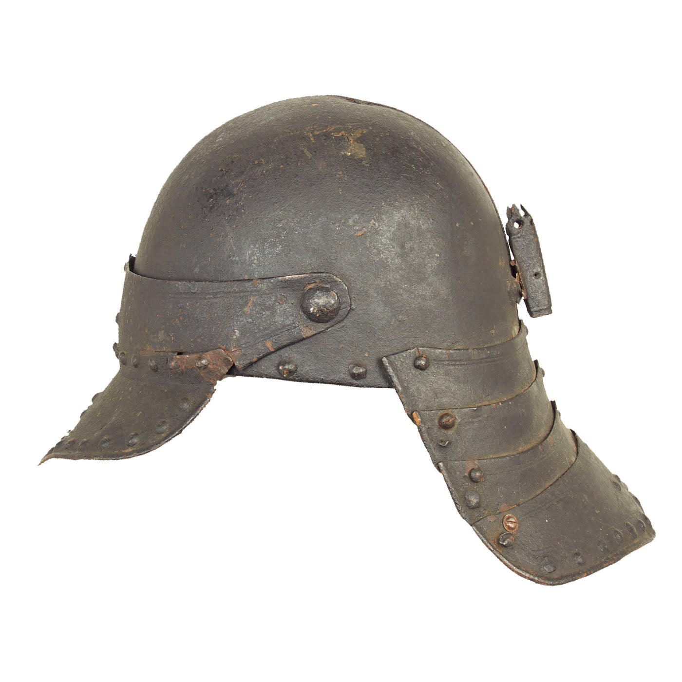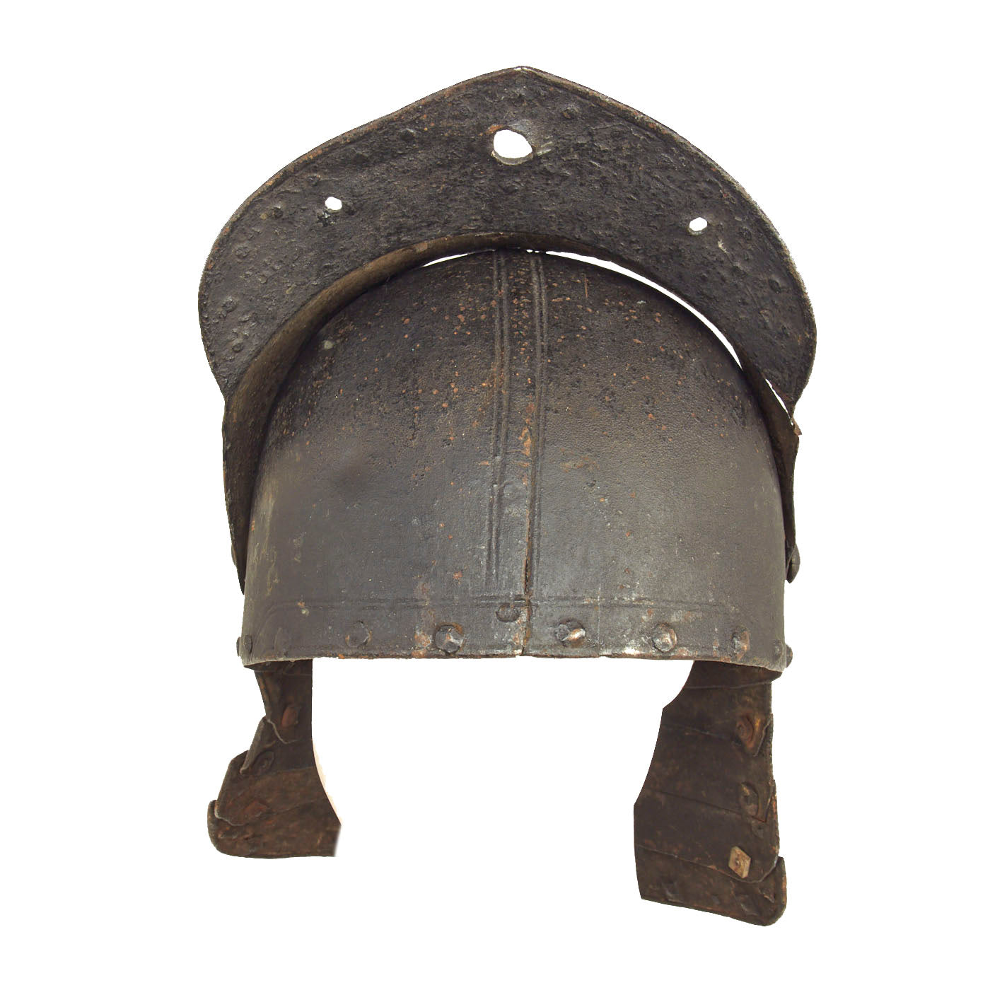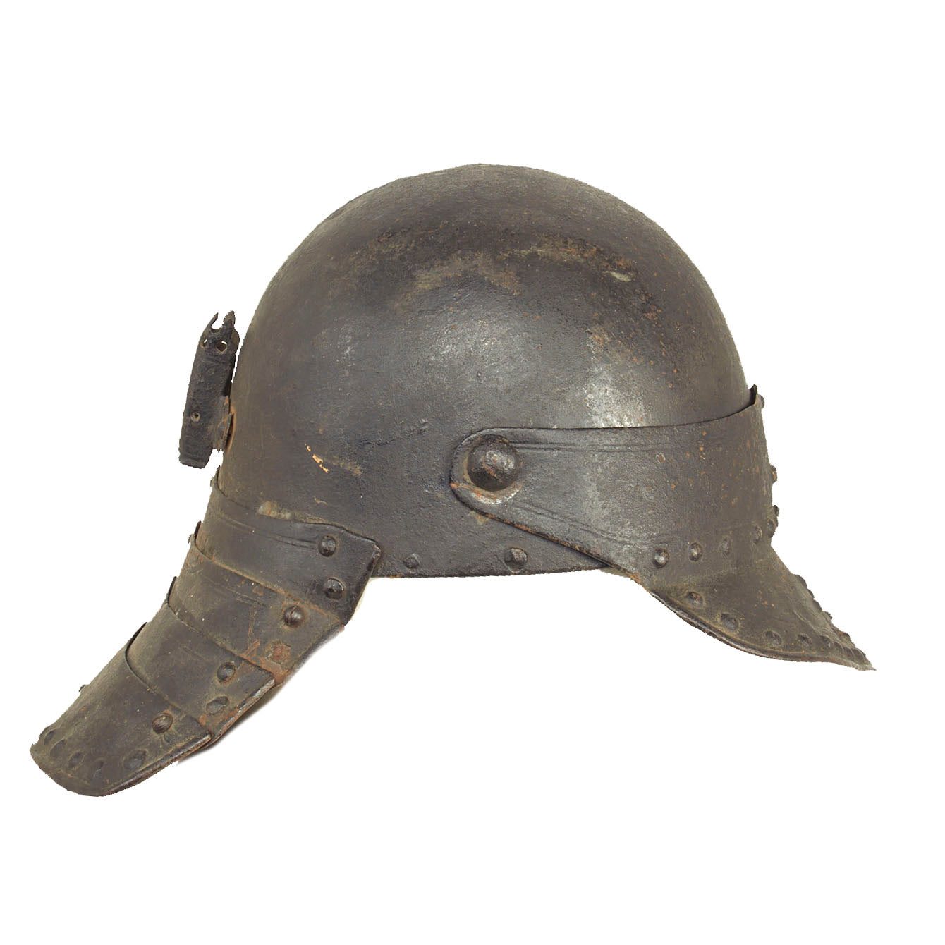 Original Items: Only One Available. Now this is a fantastic helmet! This “Lobster-Tailed” Pot dates back to the 17th century during the The English Civil War (1642–1651). The war was a series of civil wars and political machinations between Parliamentarians ("Roundheads") and Royalists ("Cavaliers"), mainly over the manner of England's governance and issues of religious freedom.