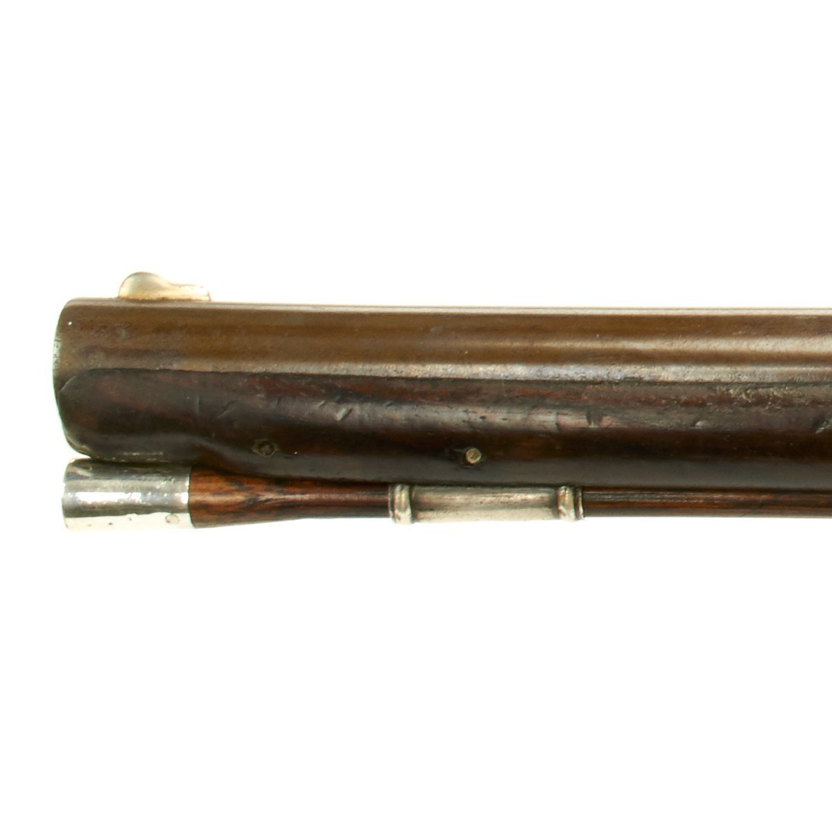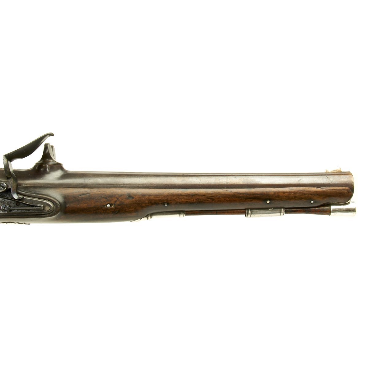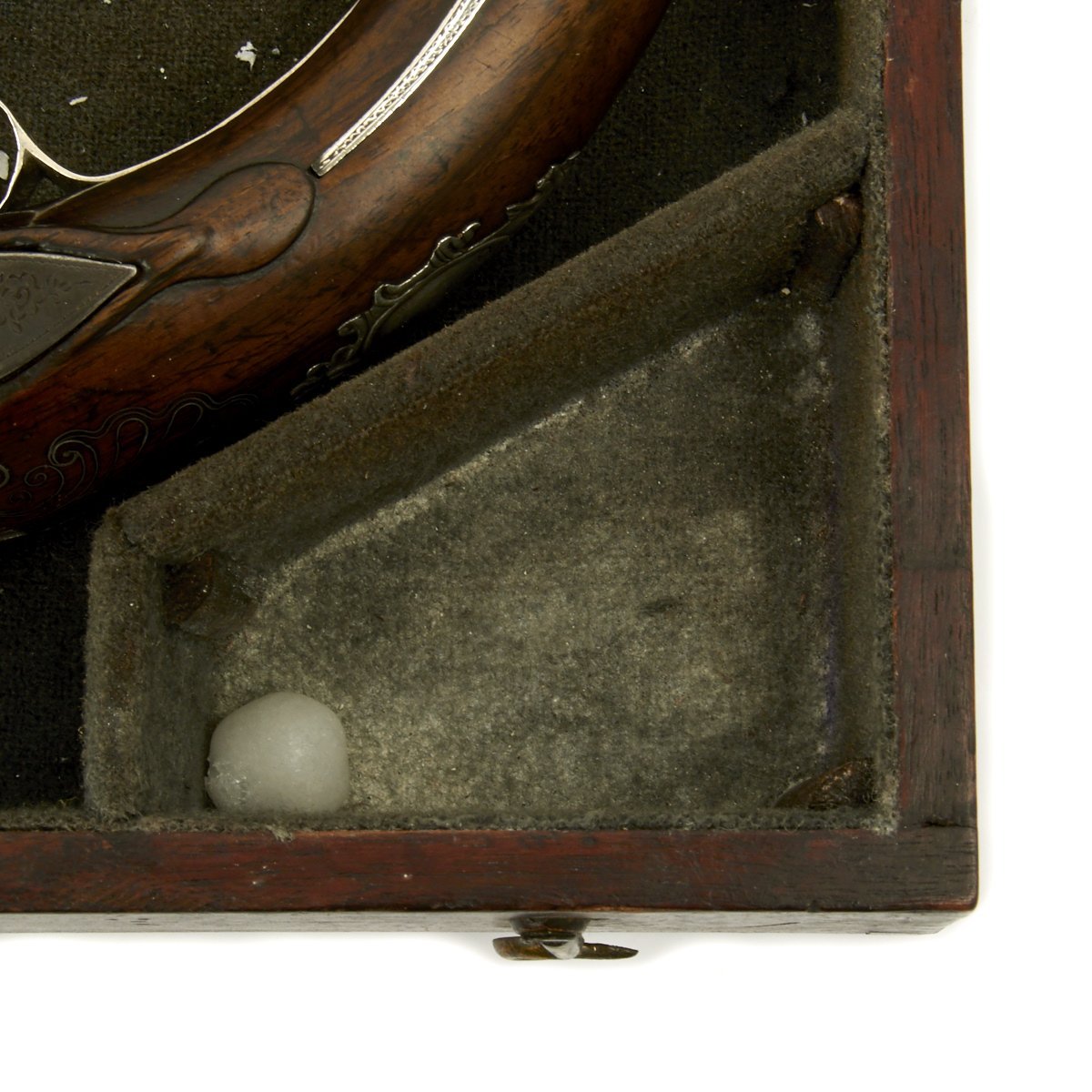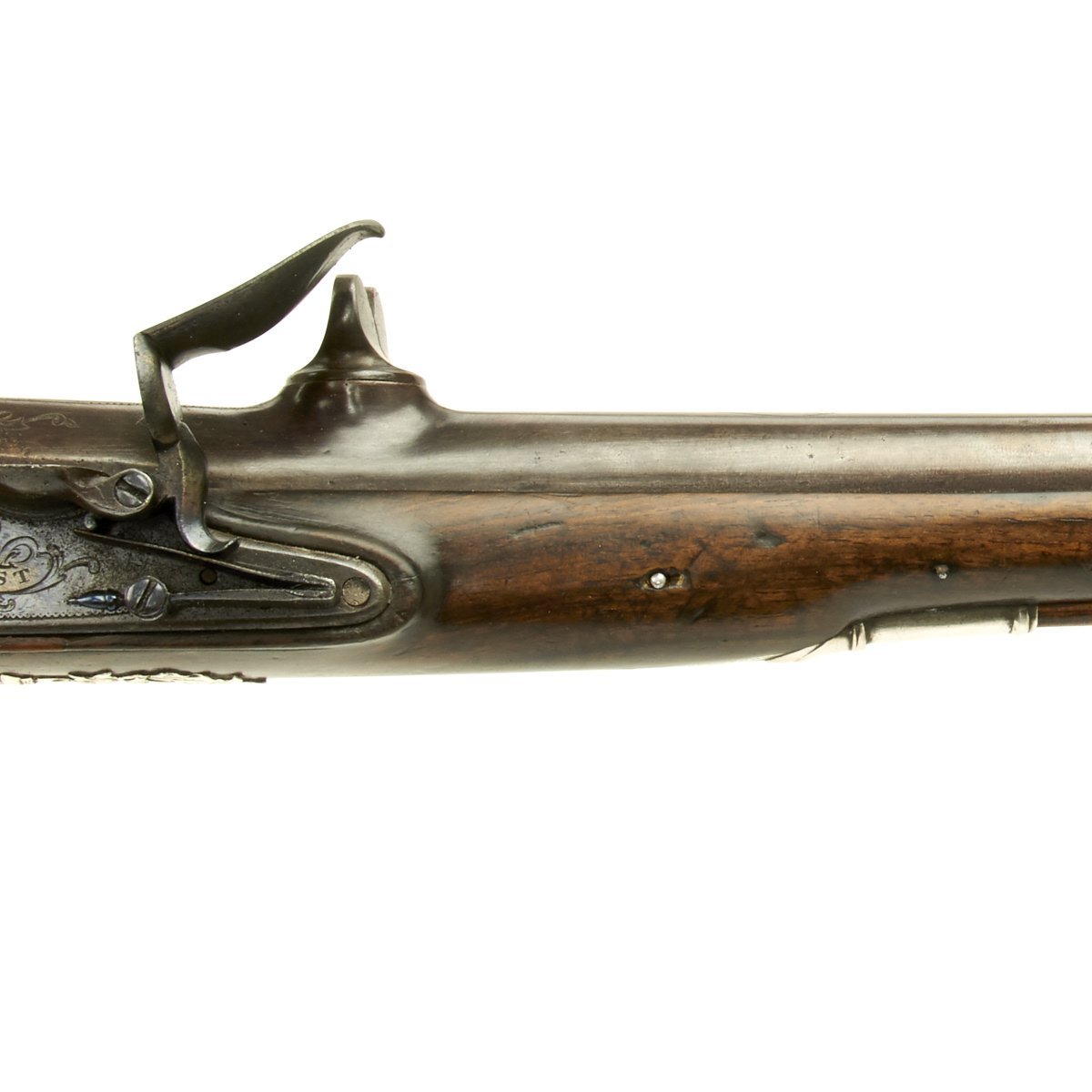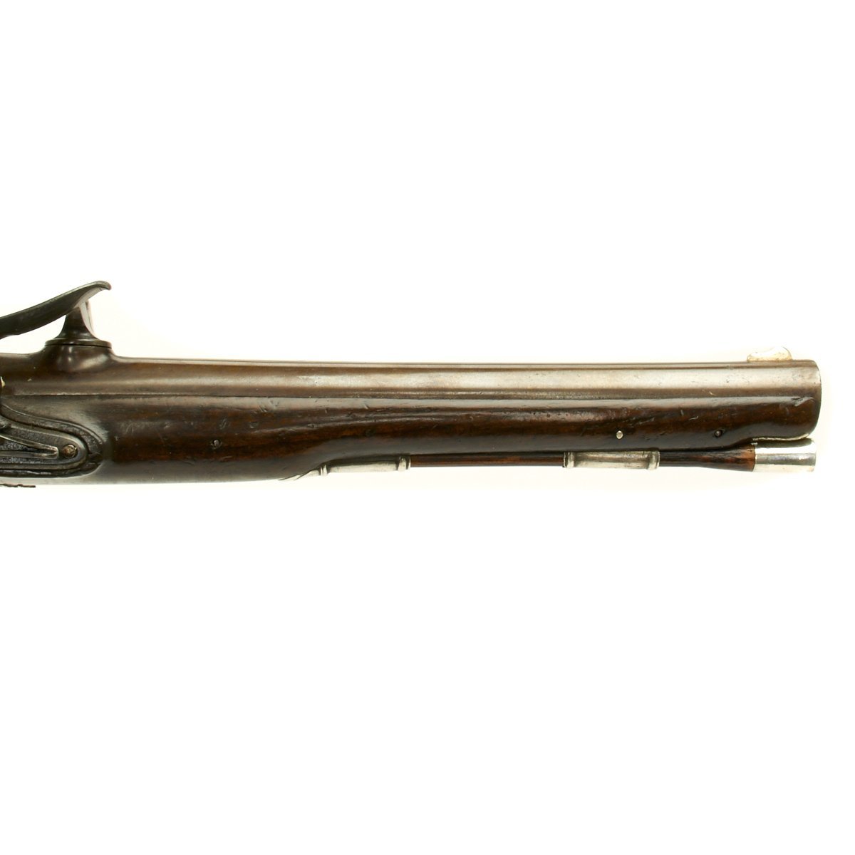 Original Items: One-of-a-kind set. As seen on the History Channel! These exquisite incredibly rare pistols were manufactured in the later portion of the 18th century by the gun maker Jonathan Hirst. Hirst was located at Tower Hill, London and worked from 1760 until 1805. These are incredibly rare due to the fact that each barrel has an elaborately eared back sight. These back sights are also plugs that unscrew allowing access to the barrel which allow these pistols to be loaded from the breech! The advantages of a breech loading weapon include speed of loading and the ability to load an oversize ball inside a rifled barrel. The shooter could load a ball that would otherwise not fit through the muzzle, at least not easily. A tighter ball inside a rifled barrel meant far improved accuracy as the soft lead ball would "grip" the internal rifling grooves causing the ball to spin faster and fly straighter. Breech loading weapons of the late 18th century were intended for marksmen.