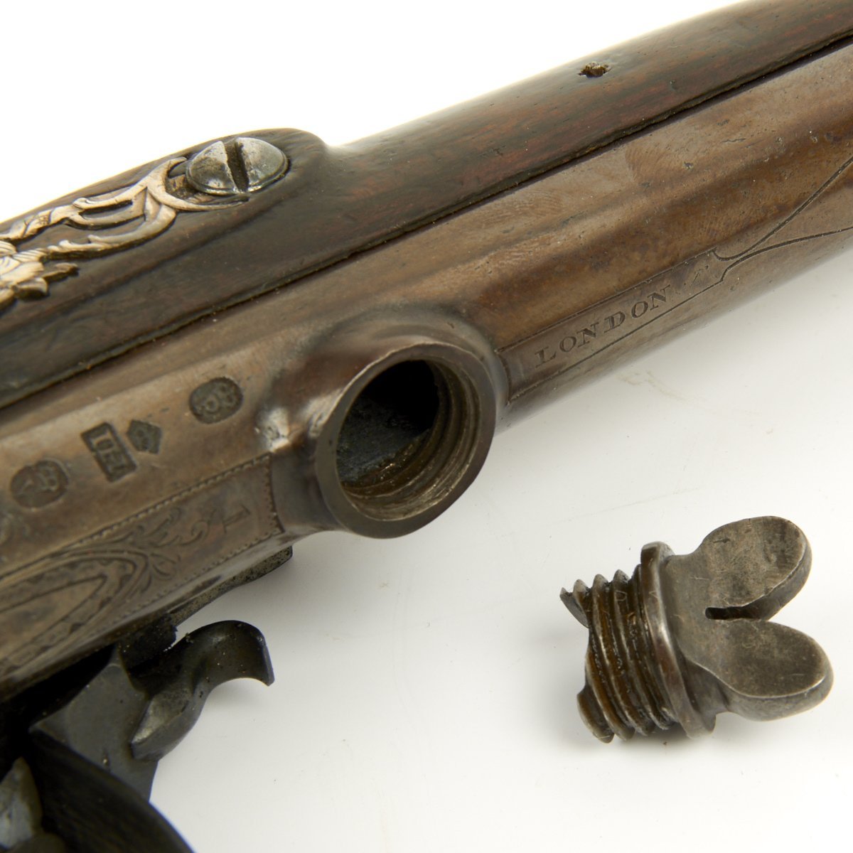 Overall an extremely rare beautifully constructed pair of breech loading pistols dating from the later 18th century having been featured on the History Channel in 2018.