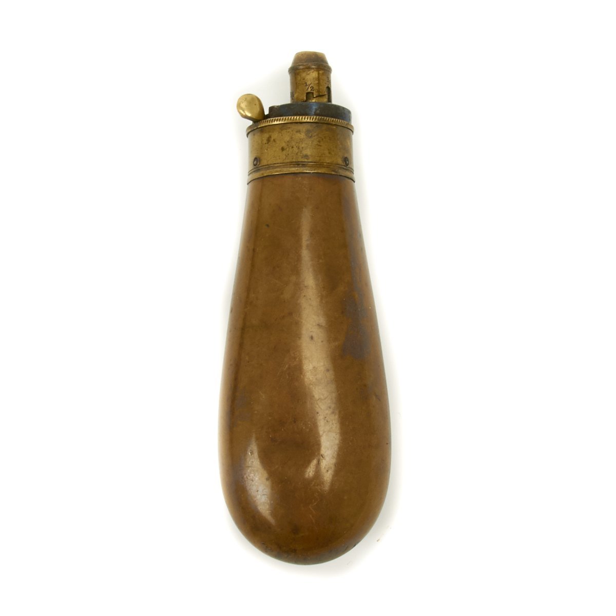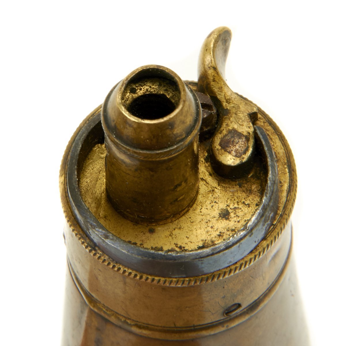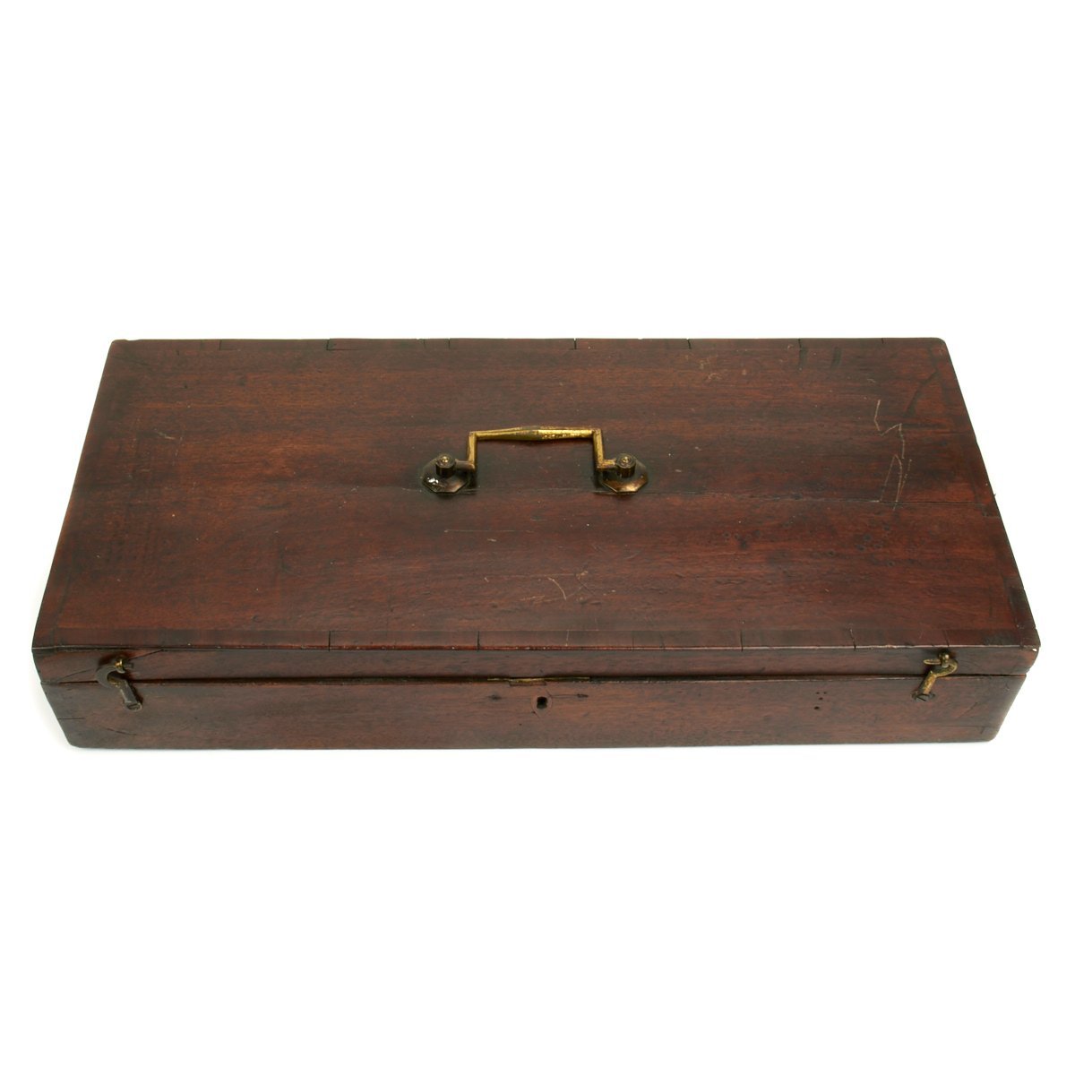 Also included is the original custom wood case which bears John Hirst paper maker label. The box also contains a 19th century powder flask and a period bullet mold.