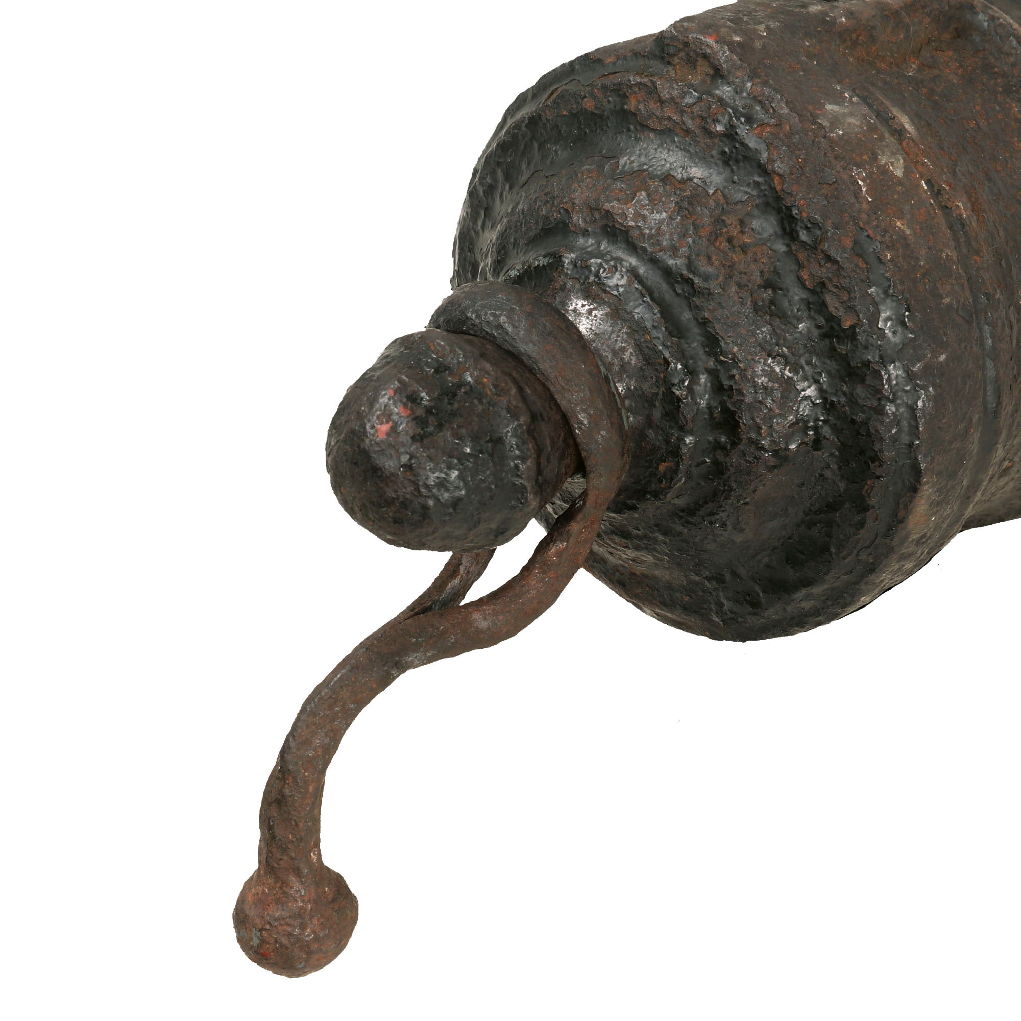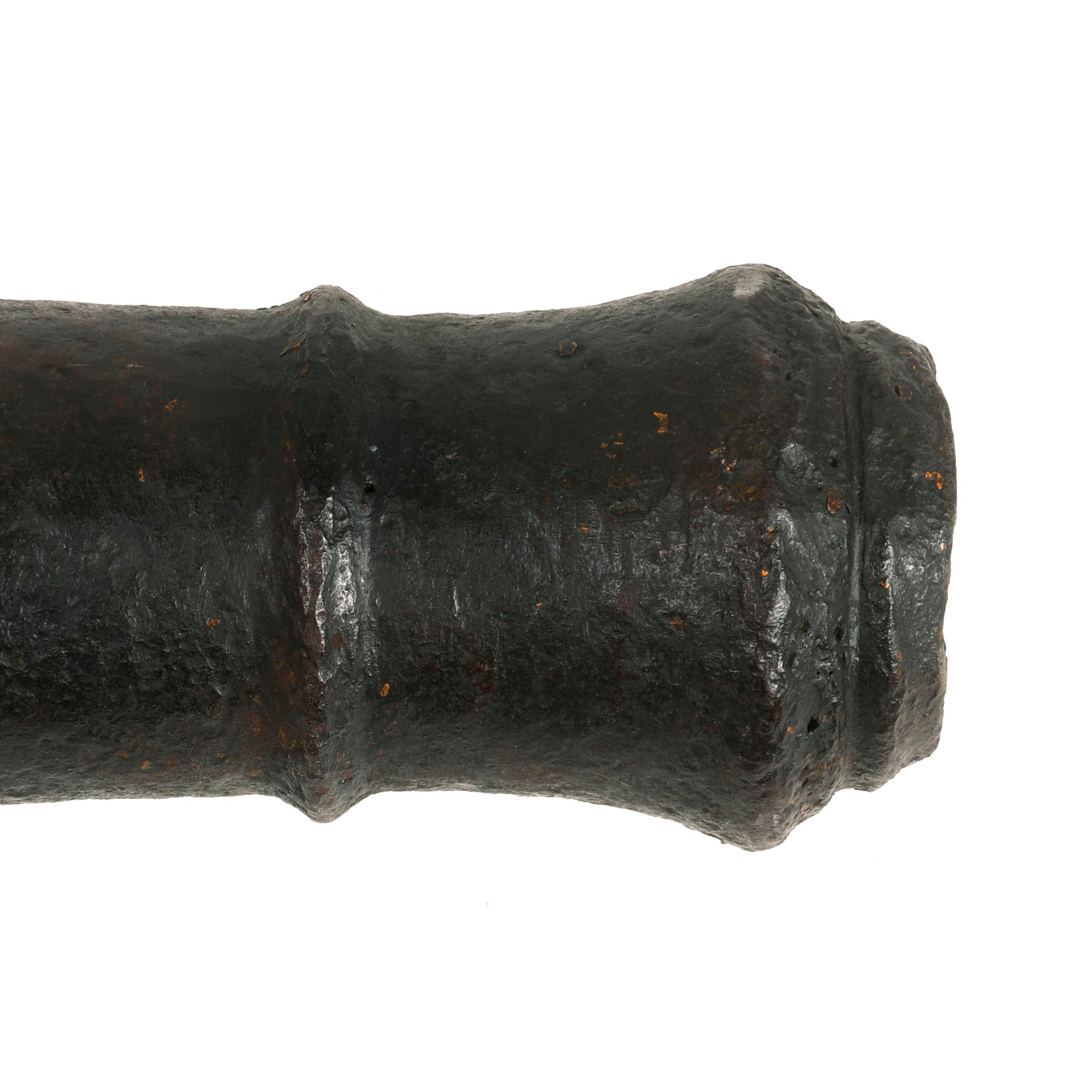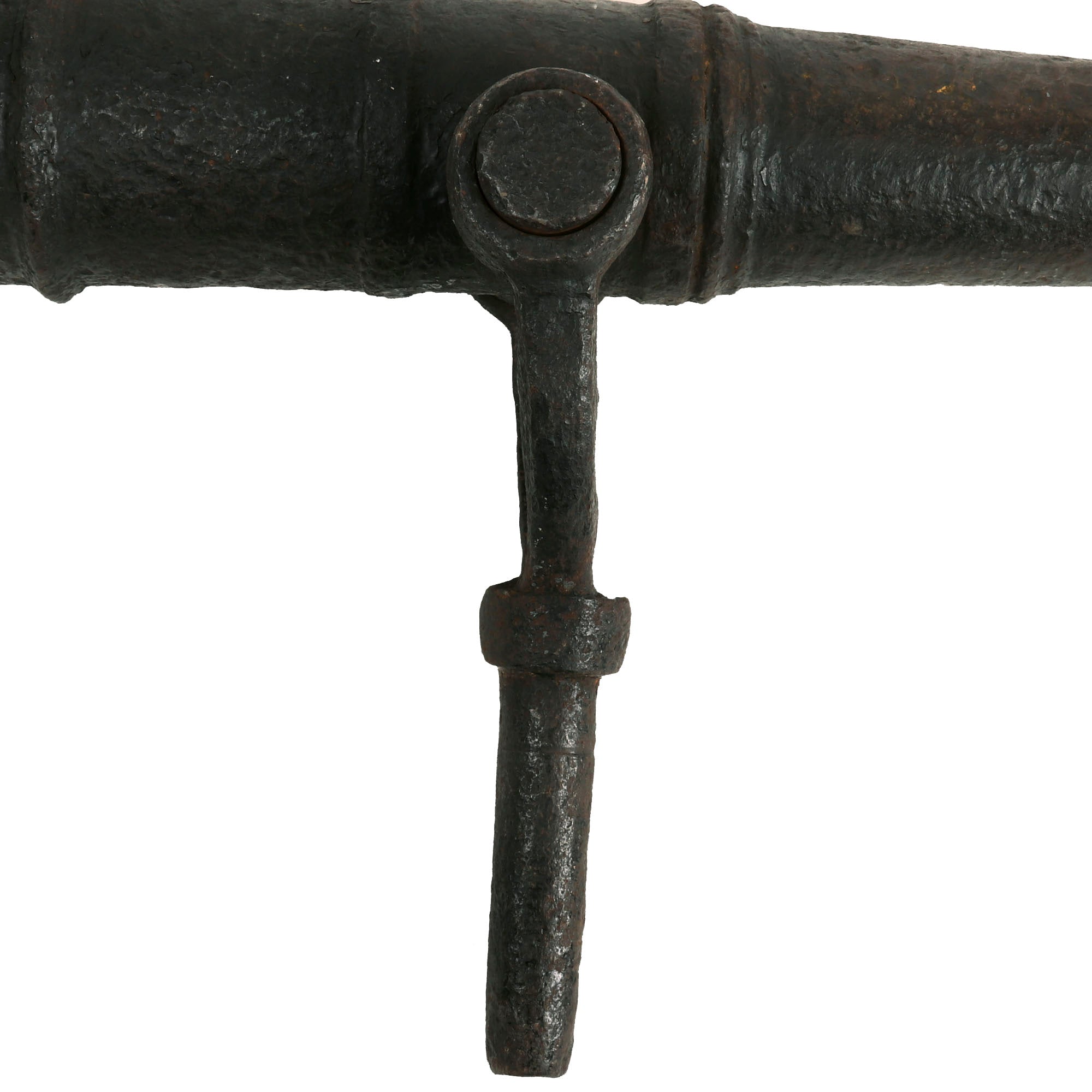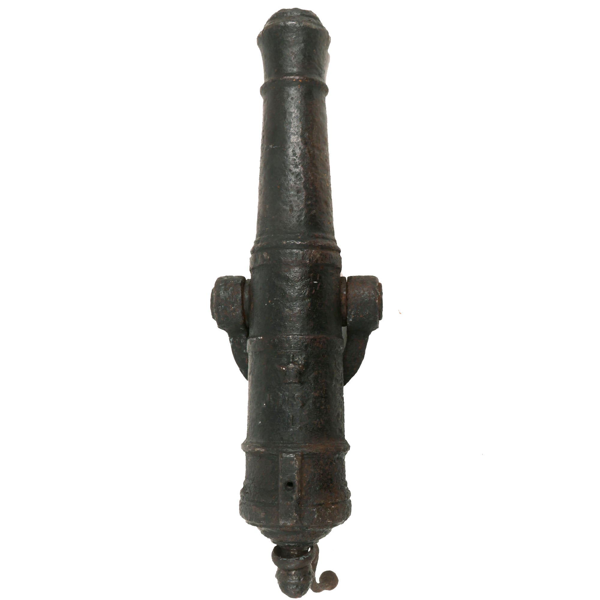Original Item: Only One Available. This is a high quality 18th century circa 1760-1780 iron swivel gun with crown relief on top of first reinforce. Beneath the crown in relief are the remnants of letter that appear to be JUST but the name is incomplete. Cannon likely was recovered from he sea, but is in fine shape and was sound enough to be fired for History Channel.