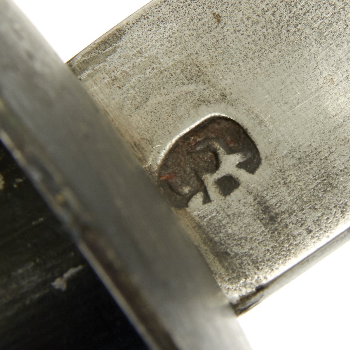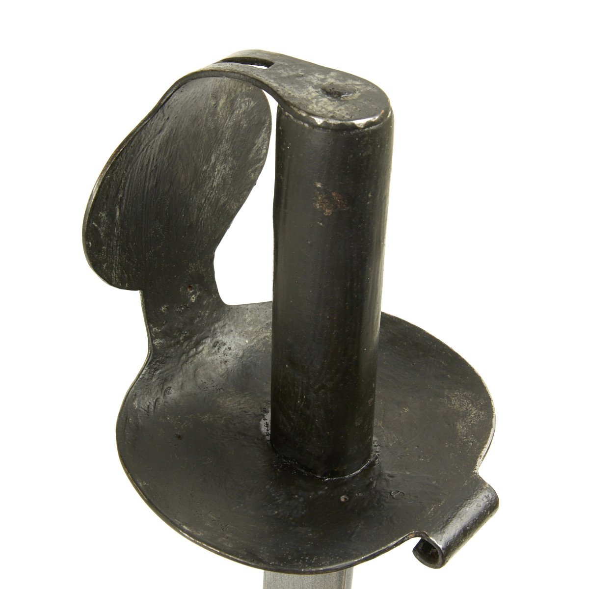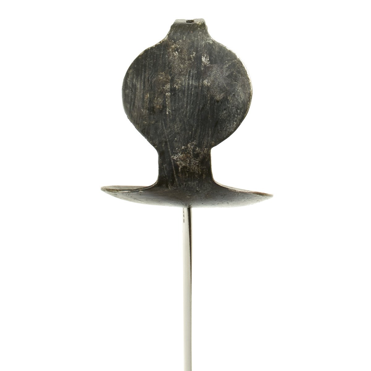 Our slightly curved bladed example here has a 29" unfullered blade and bears a deep armouer's mark stamping on the left hand side directly in front of the hand guard making this a nice tight example of an early British Naval "figure of eight" Cutlass from the 1700s ready to display.
