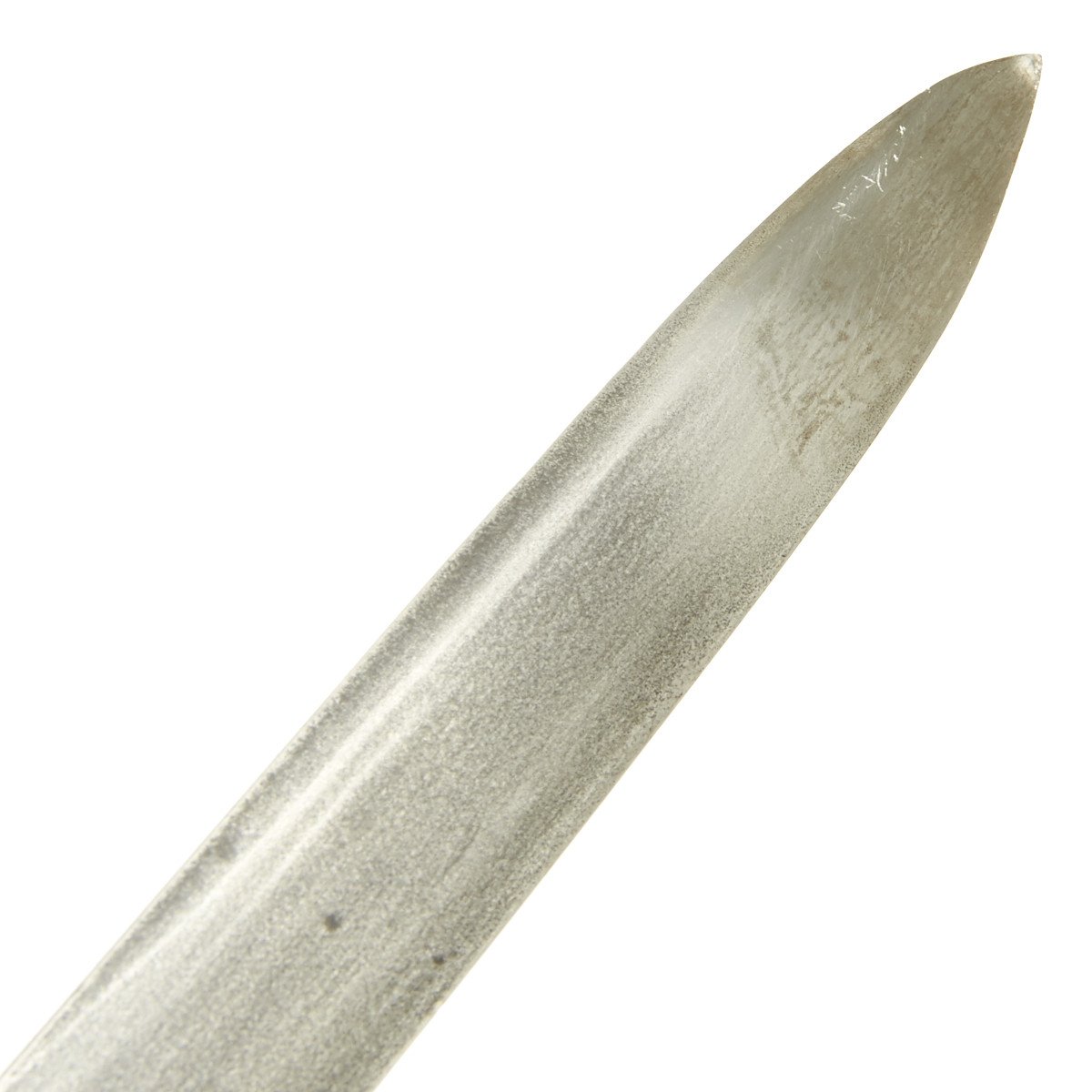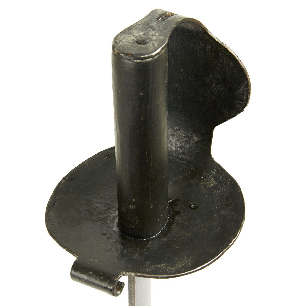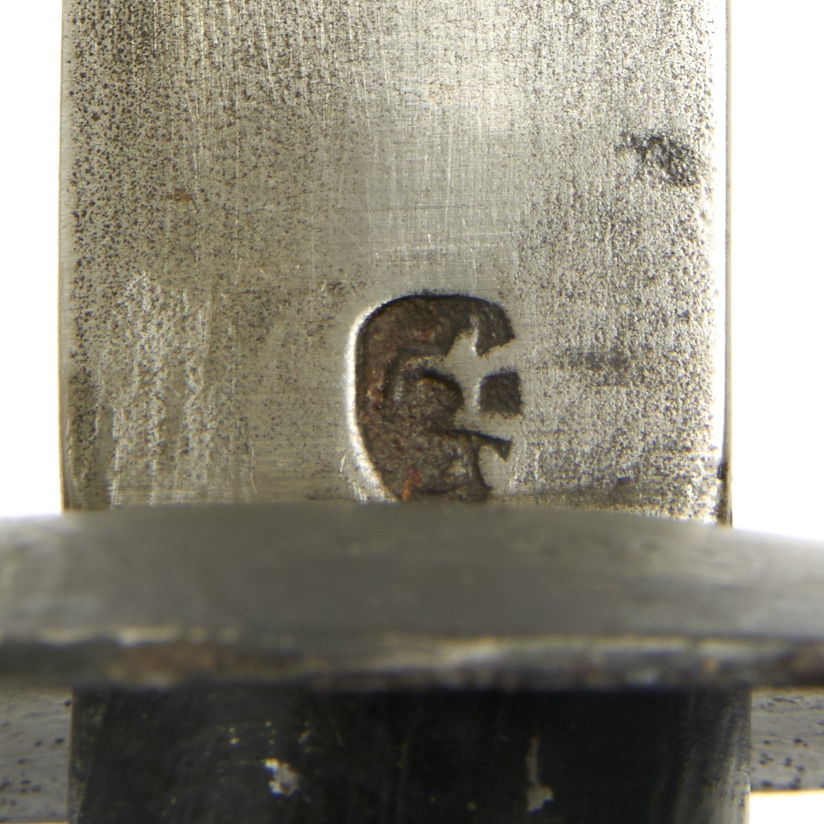 Our slightly curved bladed example here has a 29" unfullered blade and bears a deep armouer's mark stamping on the left hand side directly in front of the hand guard making this a nice tight example of an early British Naval "figure of eight" Cutlass from the 1700s ready to display.