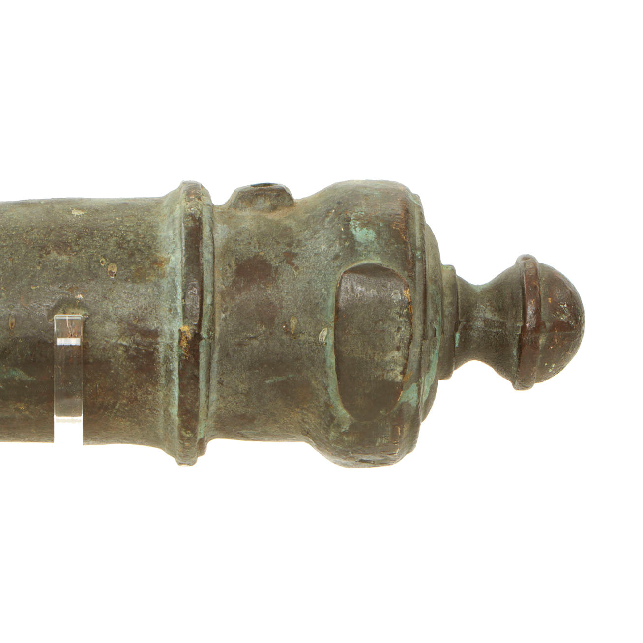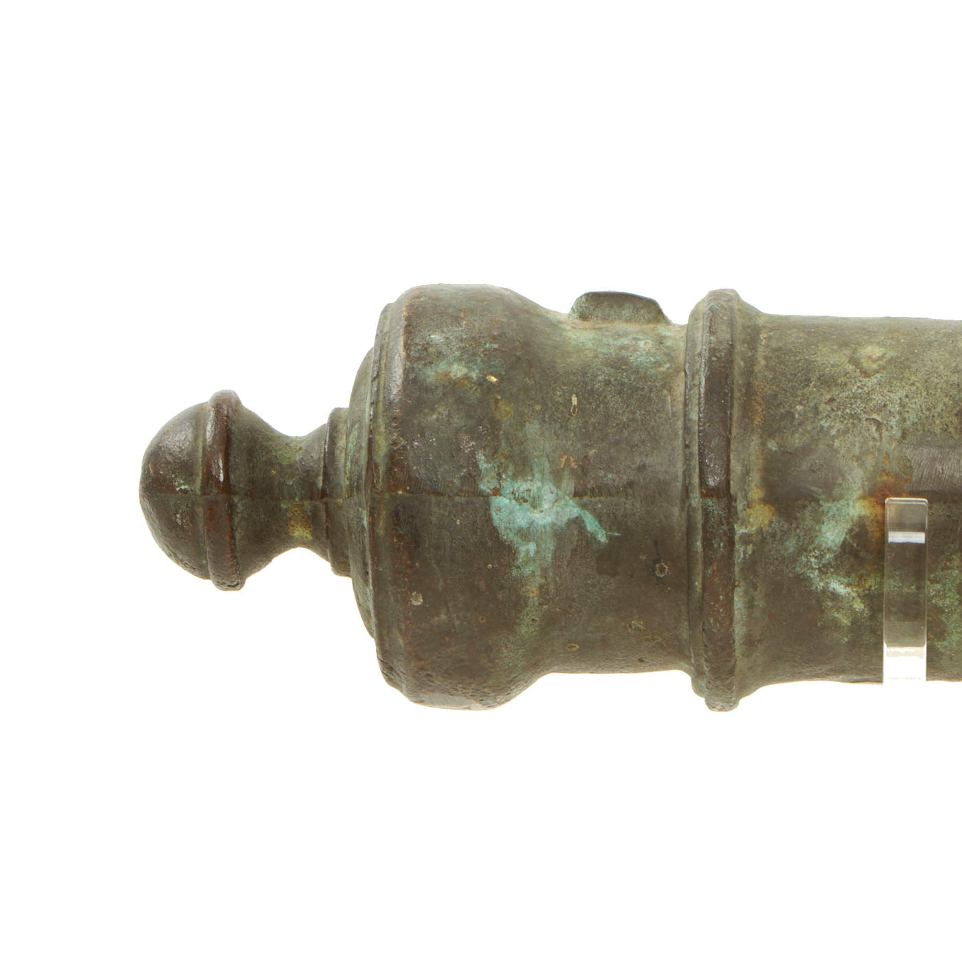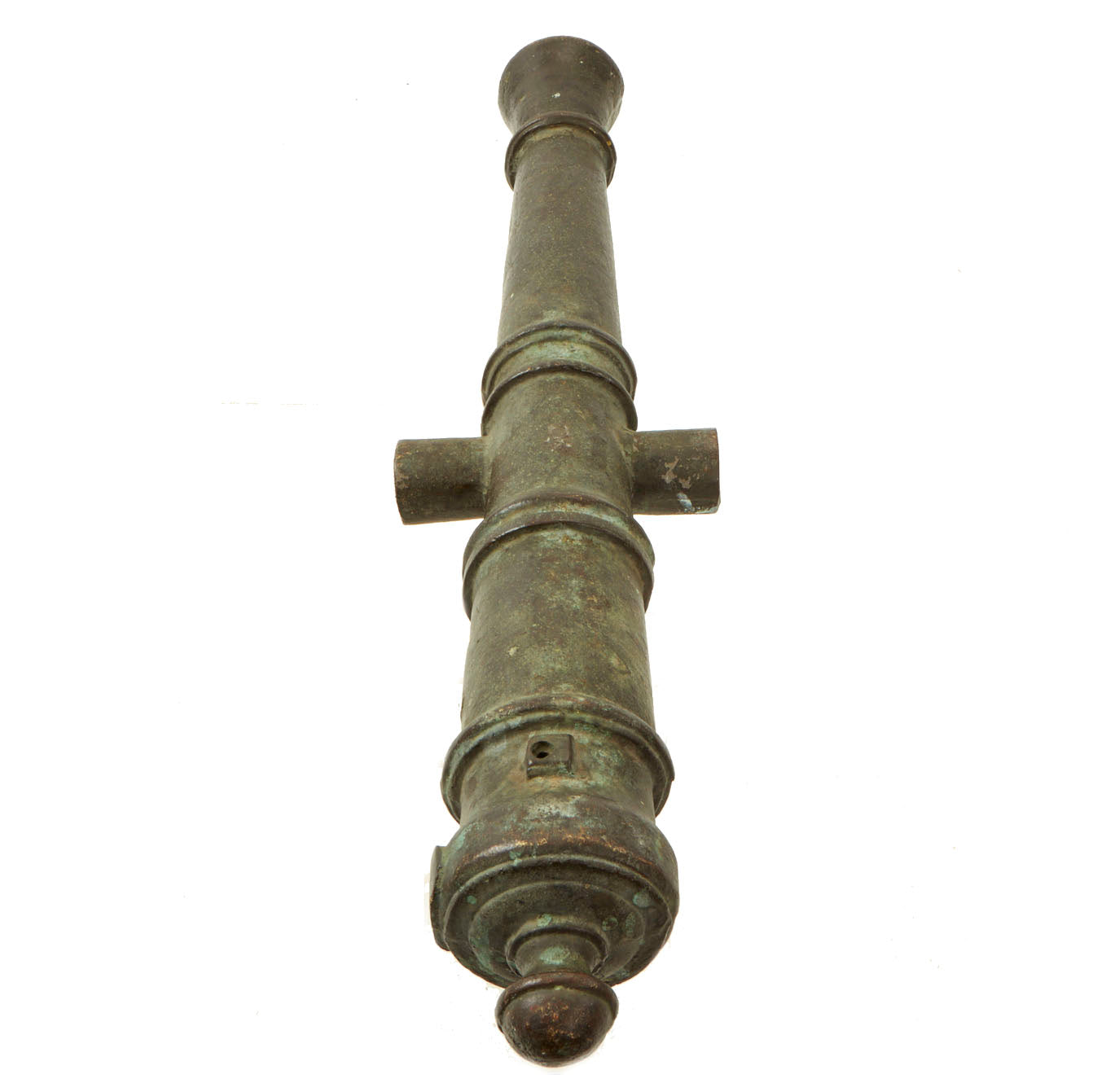 Original Item: One of a Kind. This is a very nice British Royal Navy bronze swivel cannon barrel, made circa 1780. The 23 1/2 inch long barrel features a 1 3/8" smooth bore and measures 5 1/2" across trunnions. There are multiple collars cast into the design along the length to keep it from splitting. These cannons were usually used on iron swivel mounts, often mounted to a ship's rail. Really nice and clearly very old and surprisingly heavy.