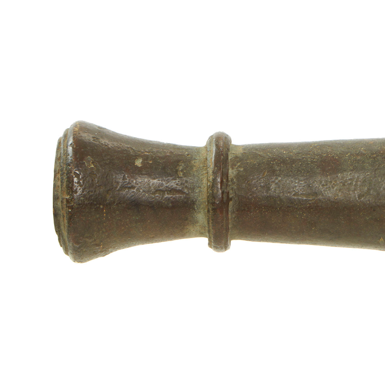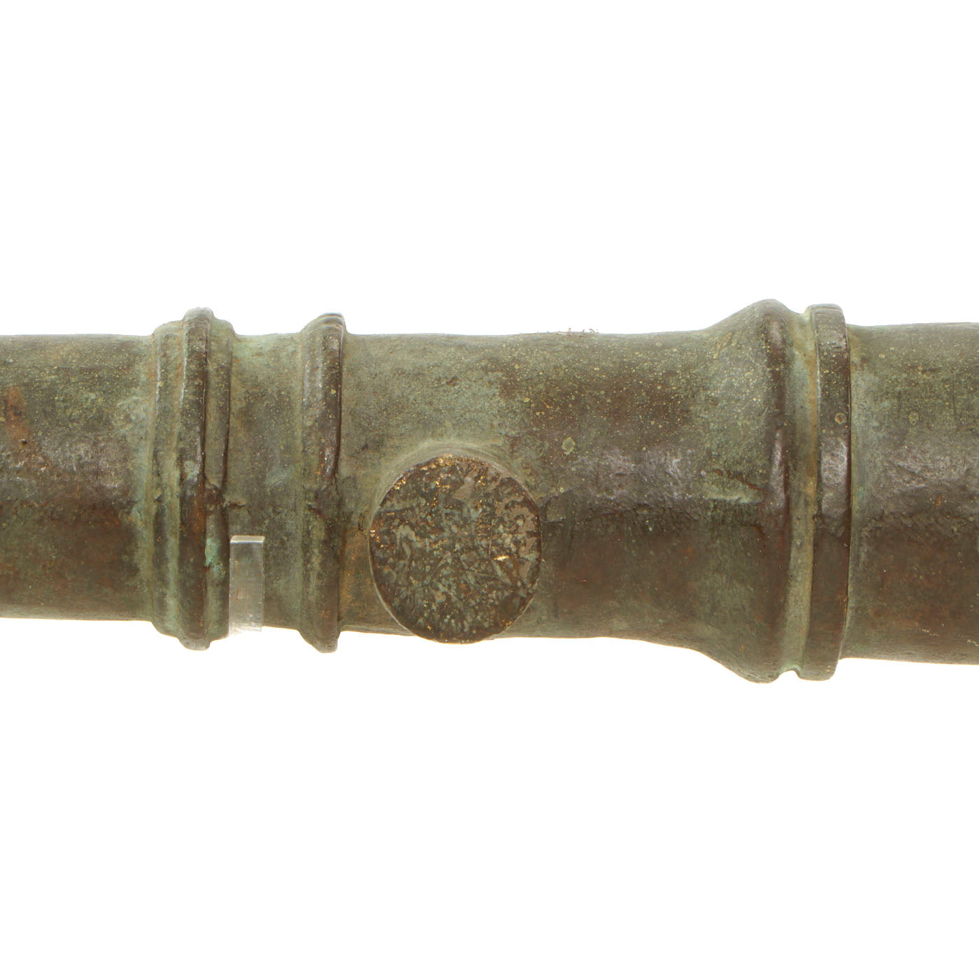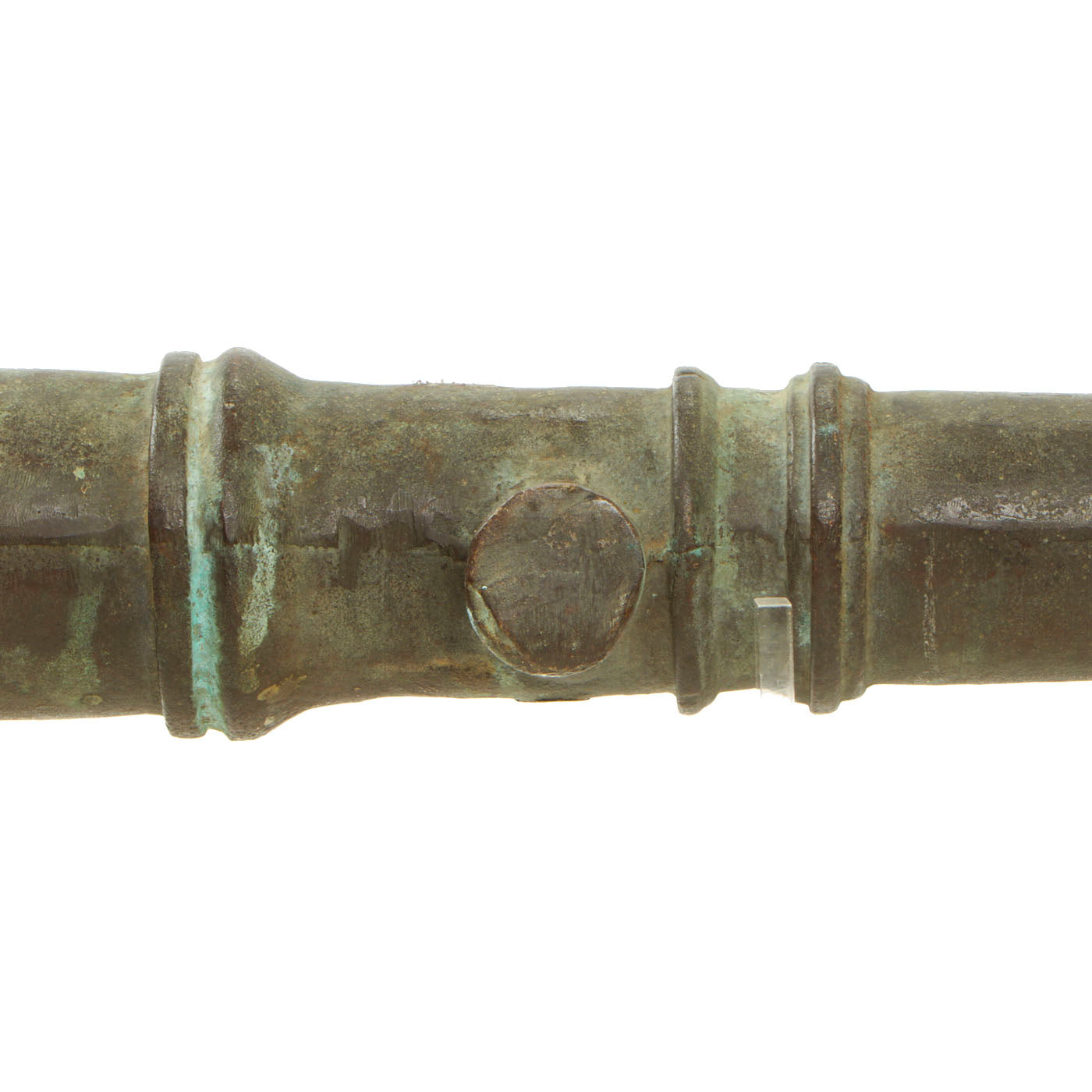 Original Item: One of a Kind. This is a very nice British Royal Navy bronze swivel cannon barrel, made circa 1780. The 23 1/2 inch long barrel features a 1 3/8" smooth bore and measures 5 1/2" across trunnions. There are multiple collars cast into the design along the length to keep it from splitting. These cannons were usually used on iron swivel mounts, often mounted to a ship's rail. Really nice and clearly very old and surprisingly heavy.
