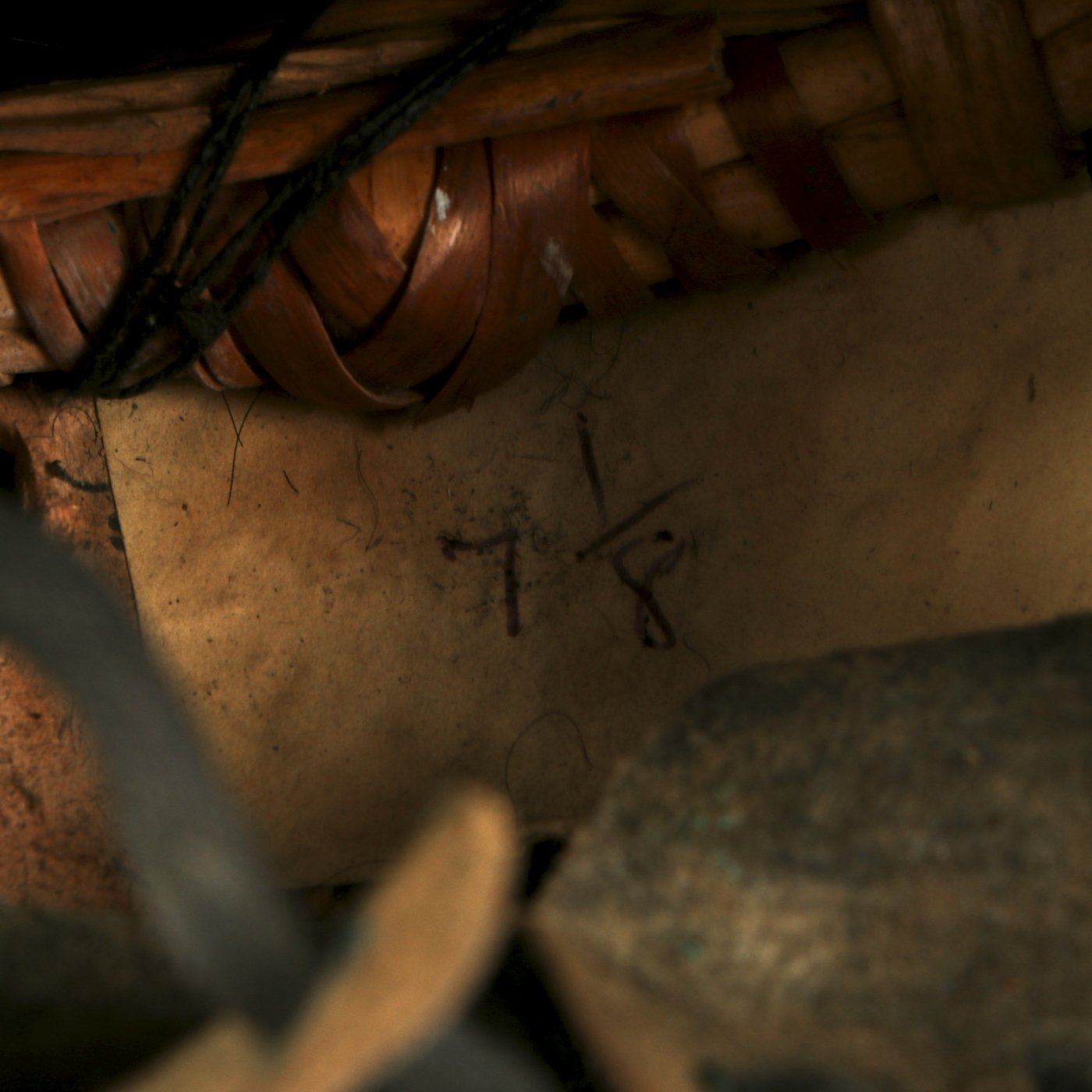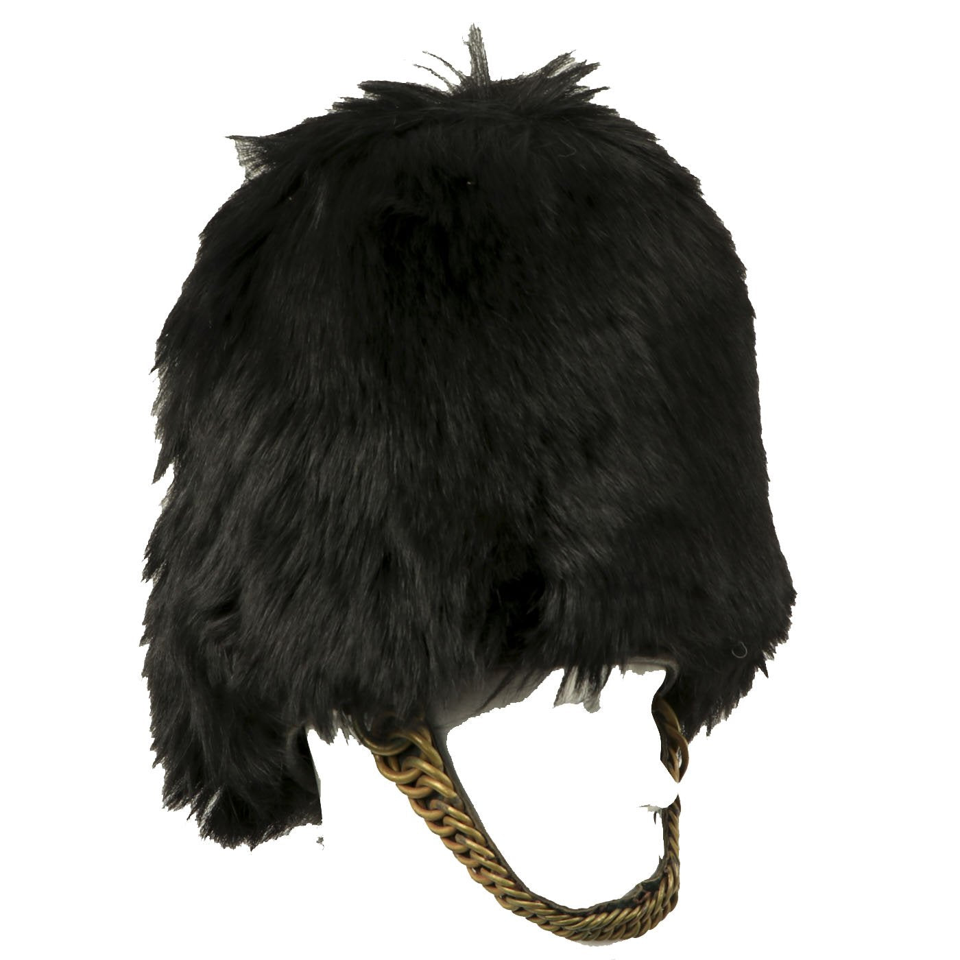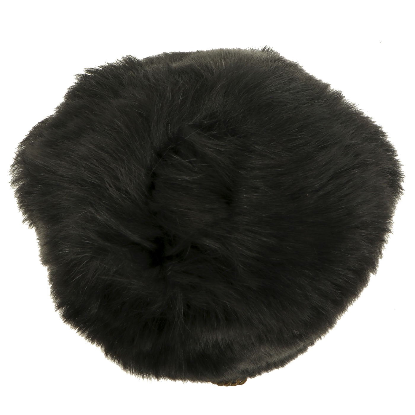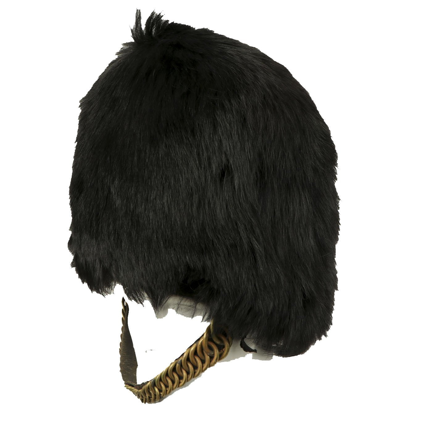 It most likely dates from the 1960s-1970s, and has the standard wicker basket inside supporting the bear skin. The helmet still retains it's original heavy brass chin scales, with both attachment hooks inside the helmet intact. The original helmet manufacture label degraded at some point, but it does have a handwritten label with size 7 1/8 written on it. Overall condition is very nice, with little wear or degradation.