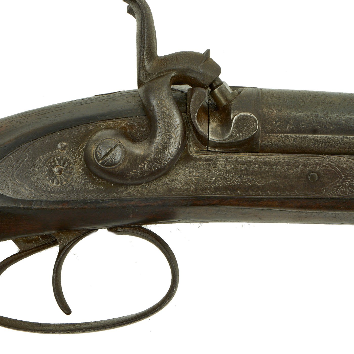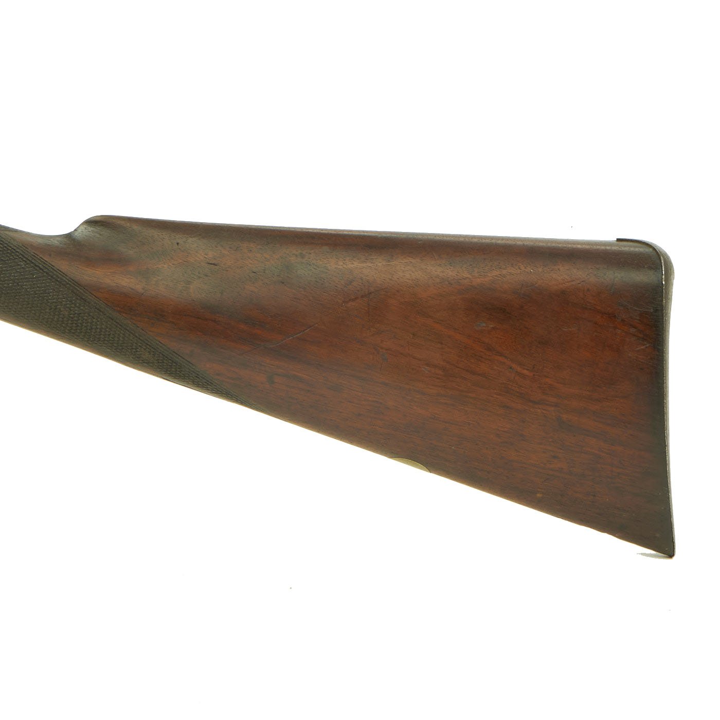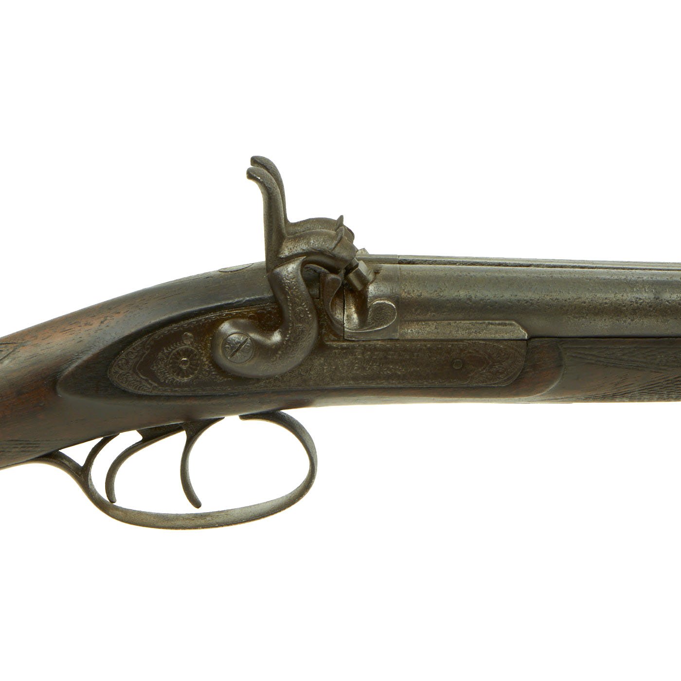Original Item: Only One Available. Here we have a very nice British Double Barrel percussion shotgun, in 34 bore, a quite small size used for hunting small game. It is fitted with a 32" double barrels and measures 48" in overall length. There is light engraving on both locks which are both marked W. ROBERTS & Co., and there is light engraving on most of the metalwork as well. The barrel rib is very faintly marked WILLIAM ROBERTS & Co. LONDON as well.