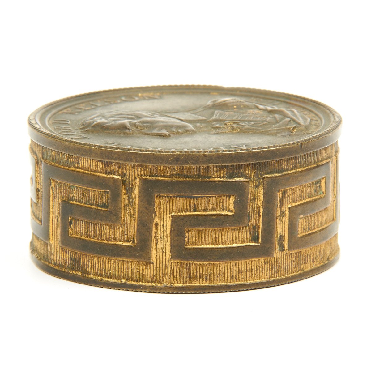 Just over 2" in diameter and 1" high with some gilding still present mostly on the back and sides. Produced probably within a year of his death to help a grieving Nation. Items from this era with patriotic themes are hard to find on today’s market.