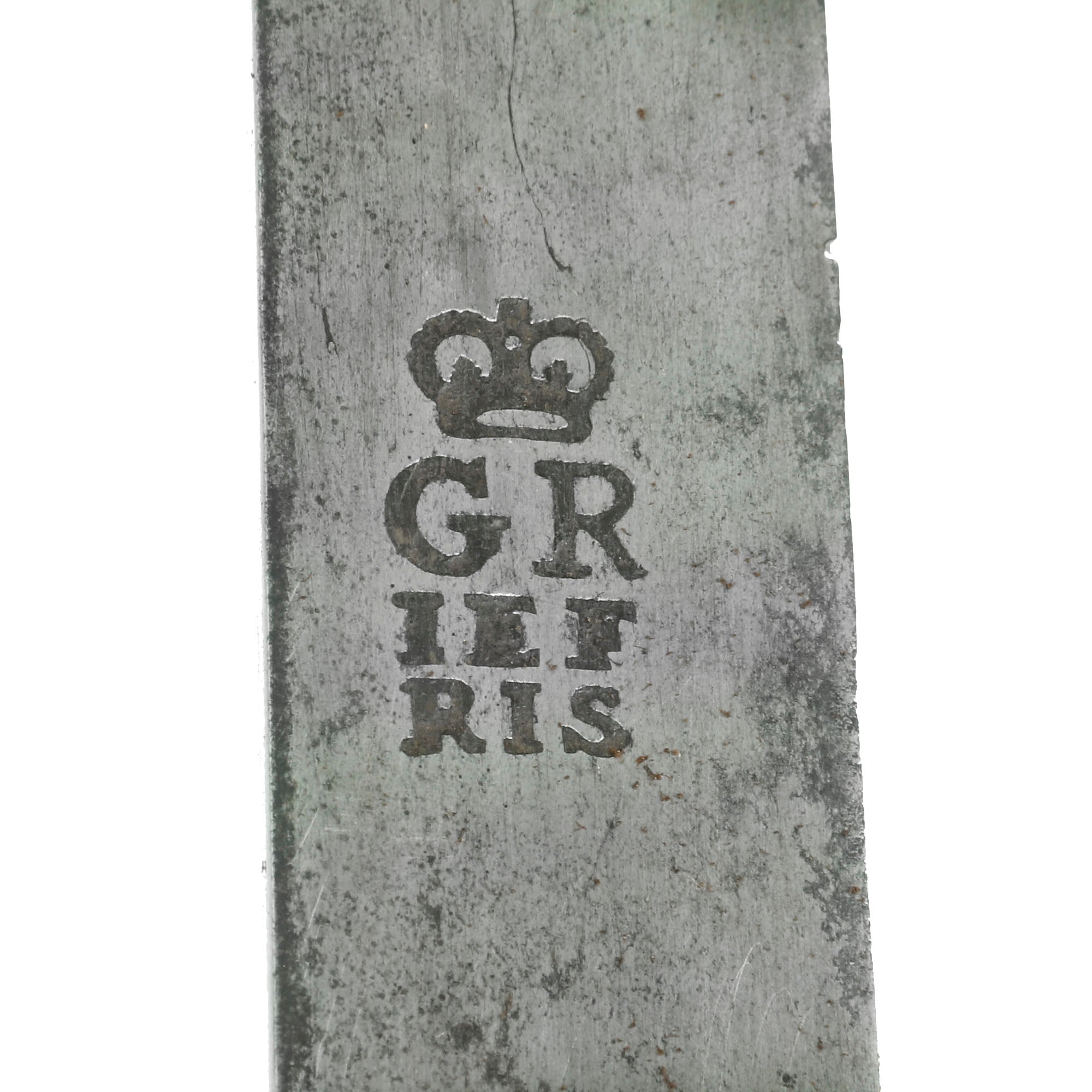 During this period, the letter “J” was written as “I”, so it is written as IEFRIS (Jeffries). There is some debate as to whether it is spelled Jeffries or Jefferys, but based on historical analysis, we are going to go with Jeffries. In an article titled "An Unusual Sword in the Royal Armouries" by Philip Lankester, it is noted that Jeffries, who worked in the Strand at corner of Villiers Street from 1739-until succeeded by Drury in 1772, in 1759 produced a number of basket hilt swords for the cavalry, several thousand actually, but these were used by the 'heavy cavalry, dragoon regts). During 1759, Jeffries produced 3500 basket hilts for the standard dragoon units, along with many of these Pattern 1759 Light Dragoon Sabers.