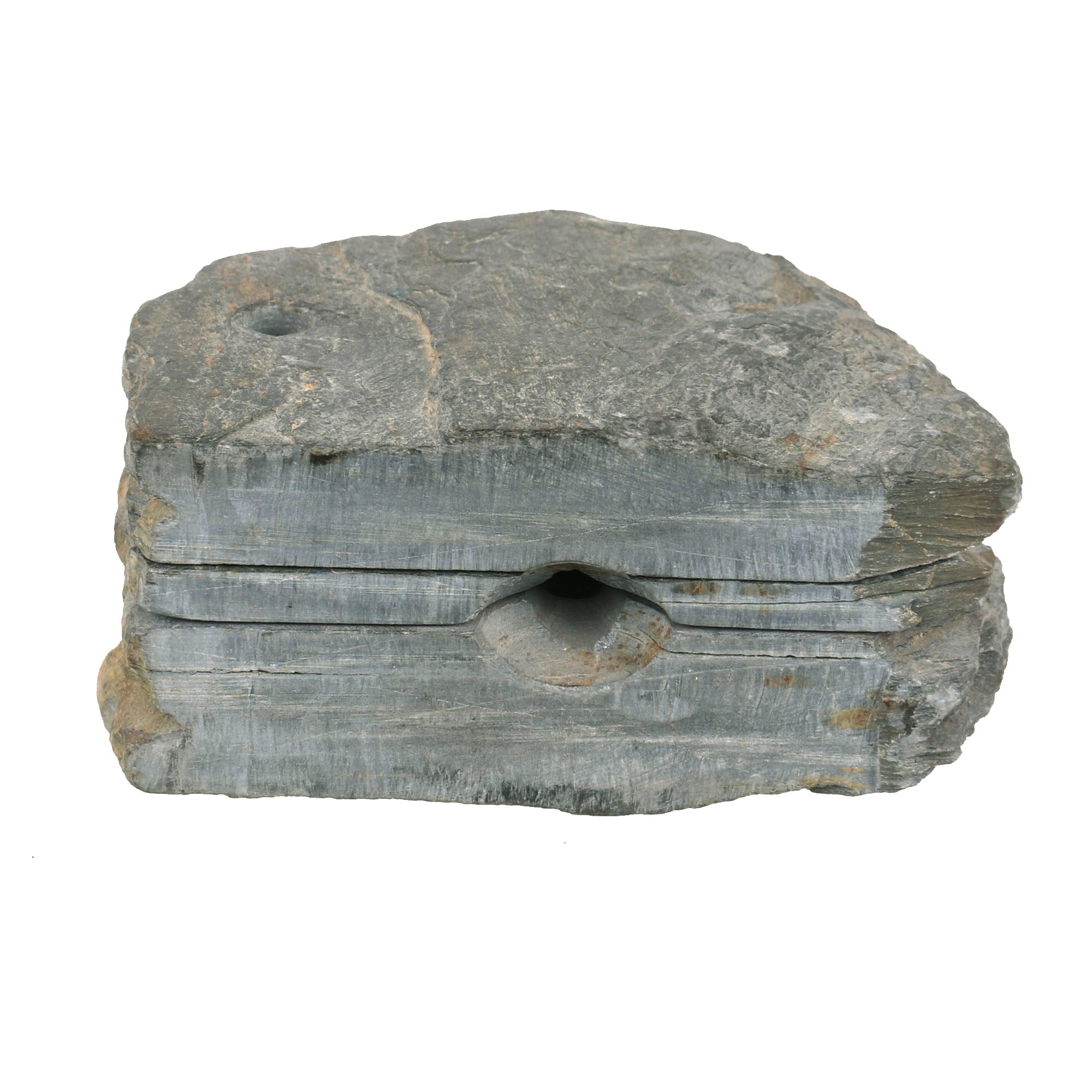 Original Item. One-of-a-Kind. This is a lovely piece of Revolutionary War era firearm technology, a 3-part ball or bullet made from shale, as opposed to soapstone as more commonly found on Revolutionary War sites of the Continental Army. With a cavity of one-inch diameter, this mold was almost certainly made for balls used in a wall gun, rampart musket or "amusette", as they were sometimes referred to during the period. These were flintlock arms in the form of an oversized musket in terms of barrel diameter and length, intended to fire an extremely large lead ball longer distances. The British wall guns of the 18th century were much larger and heavier than their French rampart muskets.