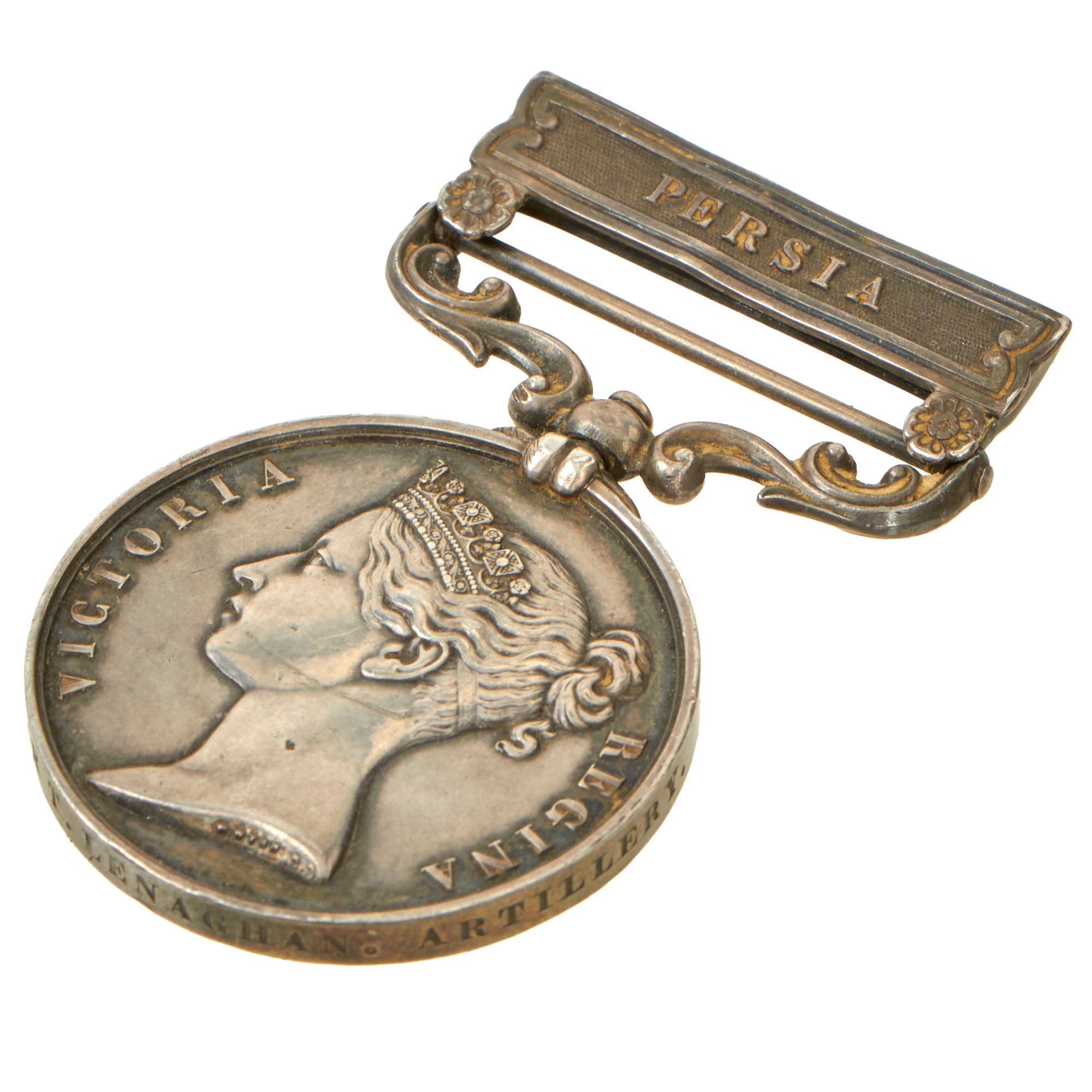 Original Item. One-of-a-Kind. This is a nice example of the scarce 1854 India General Service Medal with a Persia bar, awarded to Gunner T. Lenaghan, Artillery, for service in the Anglo-Persian War from December 5th, 1856 to February 8th, 1857.