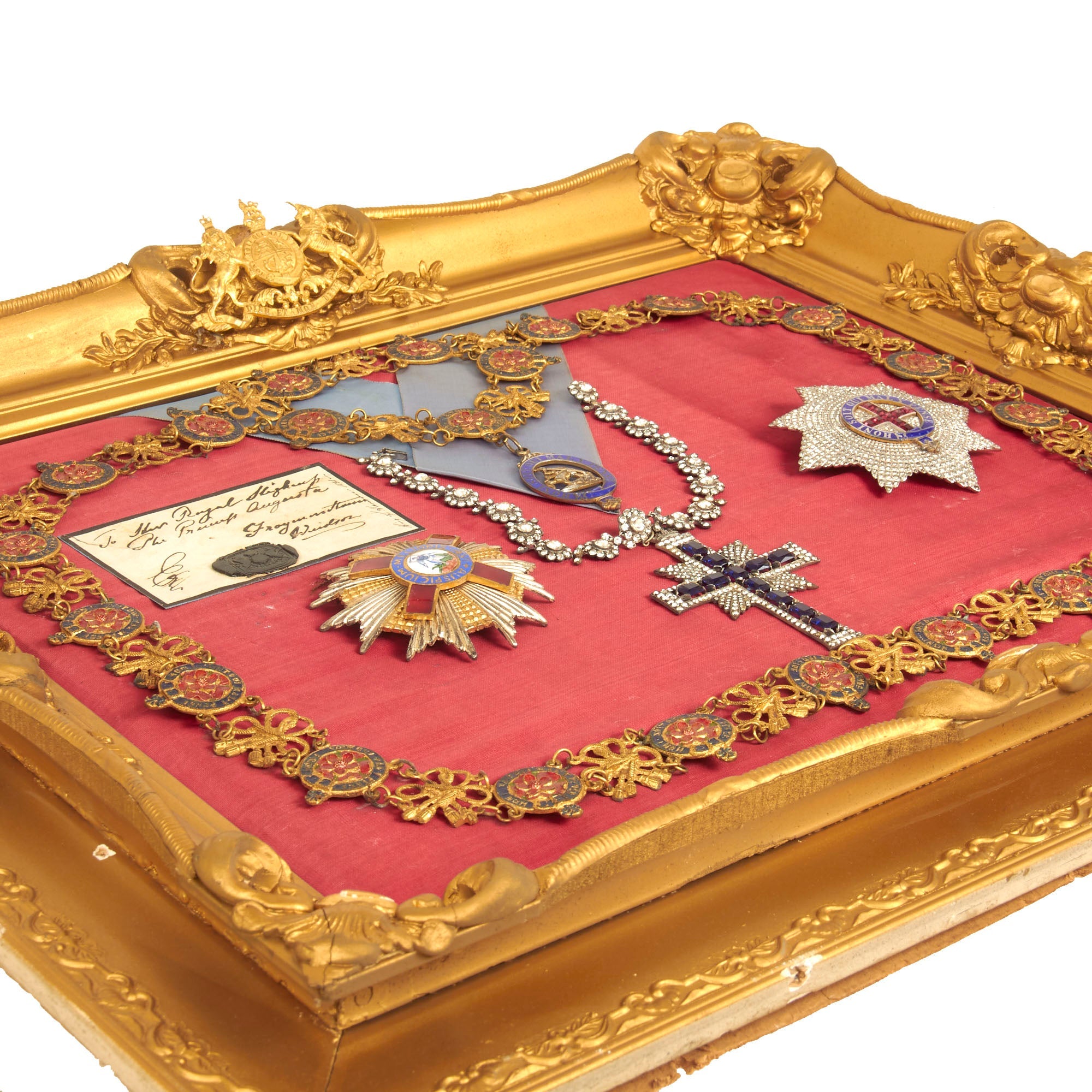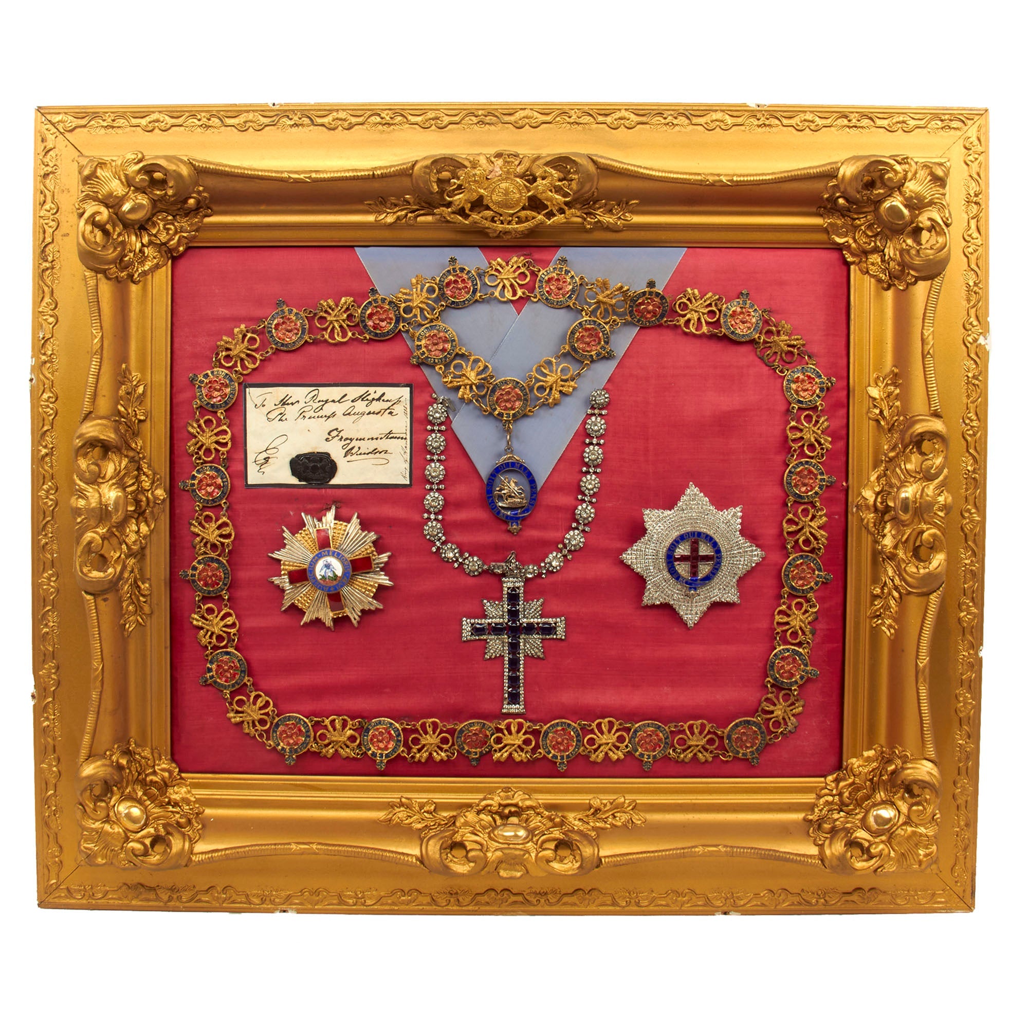 Original Item: Only One Available. Now this is an stunning display of awards! This display features original, period awards that were bestowed to the the FAMILY of Ernest Augustus, Crown Prince of Hanover, but were never actually his personal awards and some of these awards were not awarded to him at all. These are whats known as "Wearer’s Copies” which were popular amongst royal families and their acolytes and were commonly found in the Royal Households.